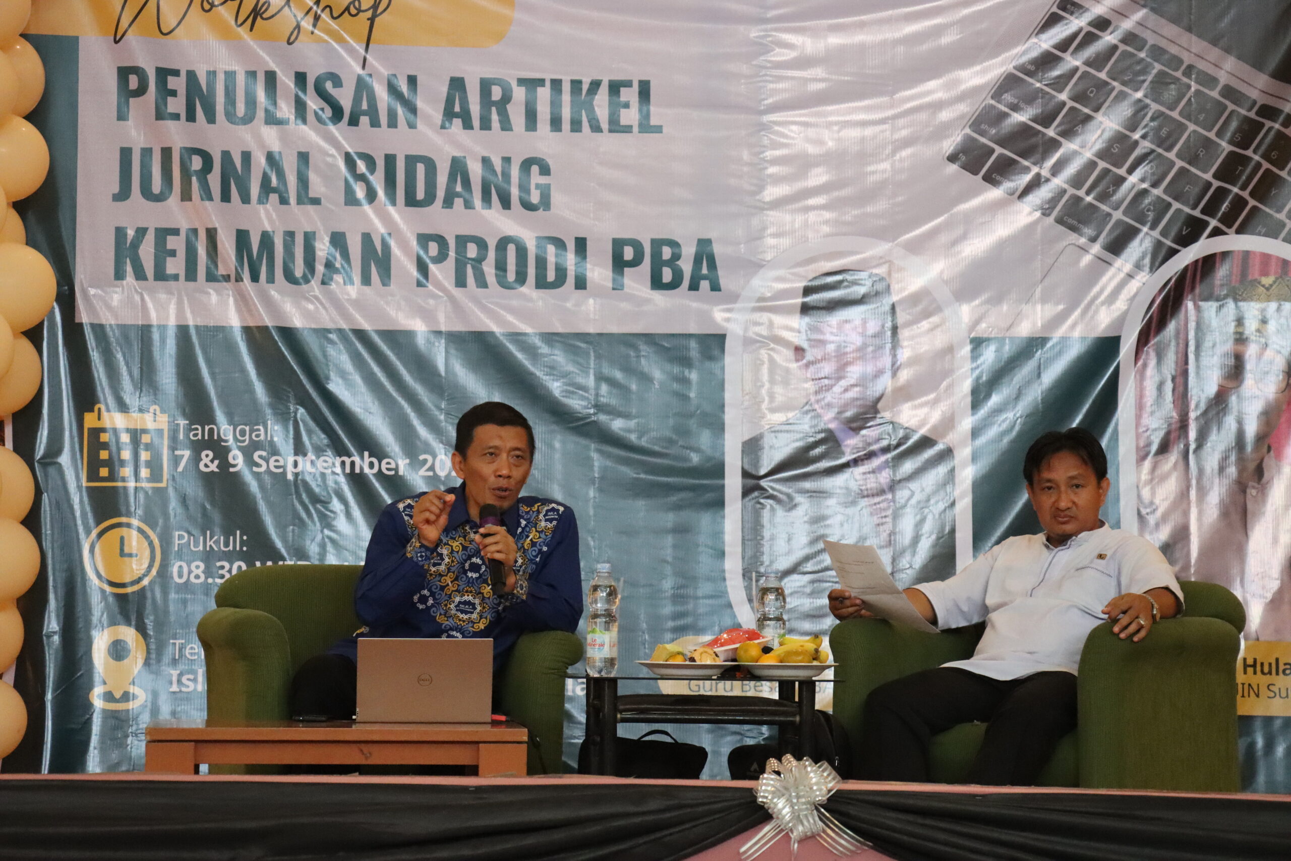 uin-suska.ac.id Program Studi Pendidikan Bahasa Arab (PBA) UIN Sultan Syarif Kasim Riau menggelar Workshop Penulisan Artikel Jurnal Bidang Keilmuan pada Senin, 9 September 2024, di Gedung Islamic Center UIN Suska Riau. Acara ini menghadirkan Prof. Dr. H. Uril Bahrudin, Lc., MA Guru Besar Bidang Bahasa Arab UIN Maulana Malik Ibrahim Malang sekalgus Ketua Umum IMLA Indonesia, Dosen-dosen PBA dan para guru Bahasa Arab dari Tujuh Kabupaten/Kota di Provinsi Riau.