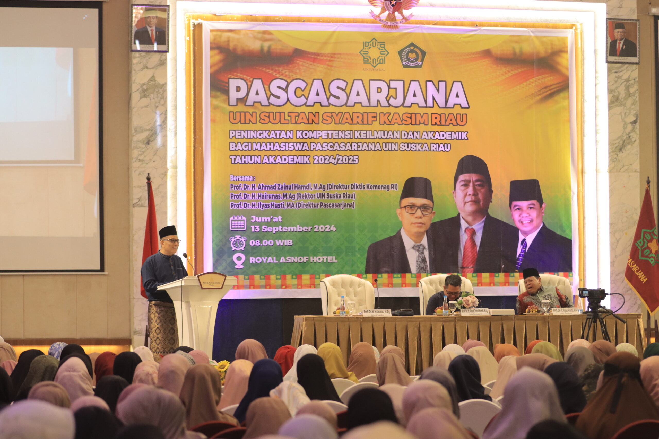 uin-suska.ac.id Kegiatan Peningkatan Kompetensi Keilmuan dan Akademik bagi Mahasiswa Pascasarjana Universitas Islam Negeri Sultan Syarif Kasim Riau (UIN Suska Riau) yang diselenggarakan di Royal Asnof Hotel Pekanbaru pada tanggal 13 September 2024 sebagai petanda dimulainya perkuliahan Semester Ganjil Tahun Akademik 2024/2025 berlangsung dengan penuh antusiasme. Acara ini dihadiri oleh Rektor UIN Suska Riau, Prof. Dr. Hairunnas, M.Ag., didampingi oleh Wakil Rektor I, II, dan III. Selain itu, turut hadir Direktur Pascasarjana, Prof. Dr. H. Ilyas Husti, M.A., para dosen, dan tenaga kependidikan di lingkungan Pascasarjana UIN Suska Riau.