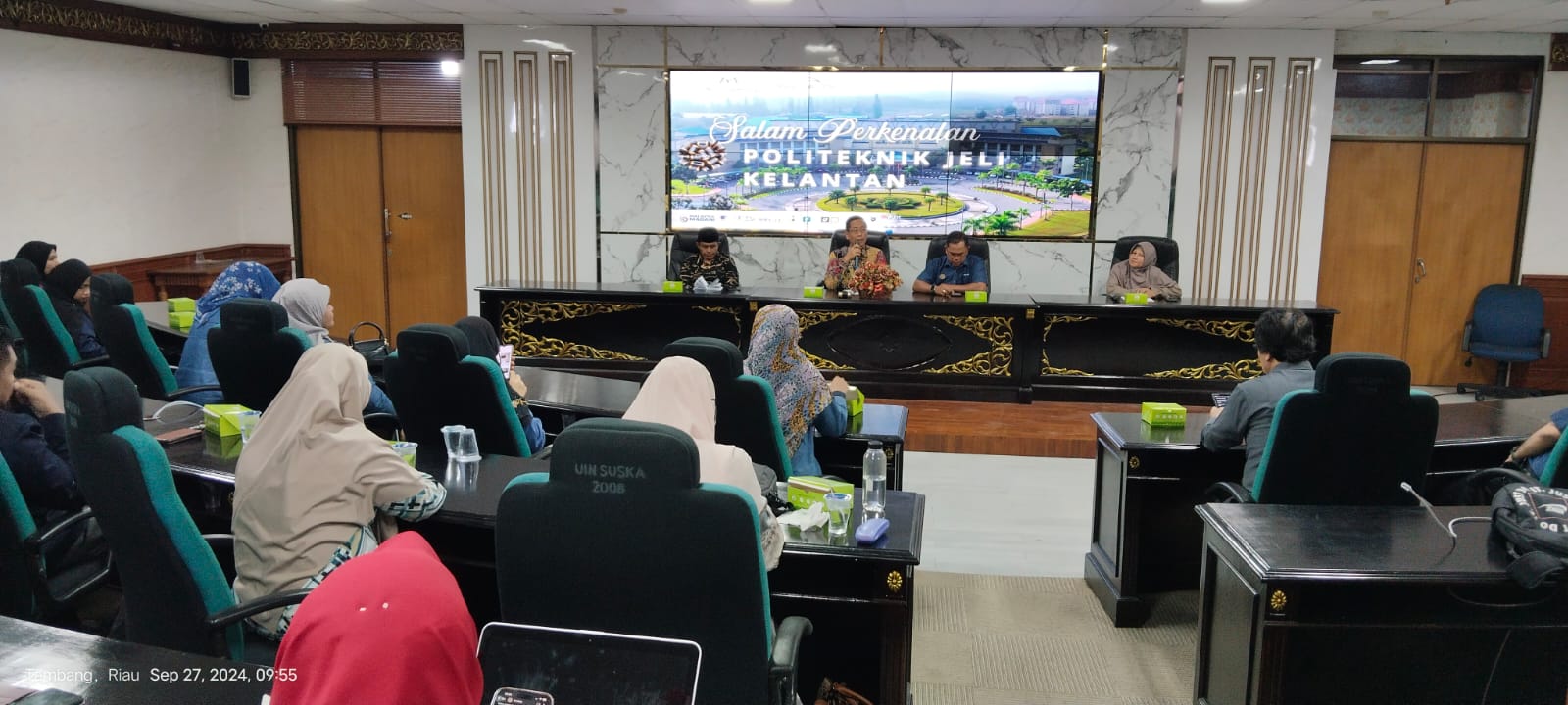 uin-suska.ac.id Universitas Islam Negeri Sultan Syarif Kasim Riau menerima kunjungan delegasi Politeknik Jeli Kelantan, Malaysia, dalam rangka mempererat jaringan kolaborasi di Bidang Pendidikan dan Riset. Acara ini berlangsung di Kampus UIN Suska Riau dan dihadiri oleh sejumlah pimpinan universitas serta tamu dari Politeknik Jeli Kelantan, Jumat 27/09/2024.
