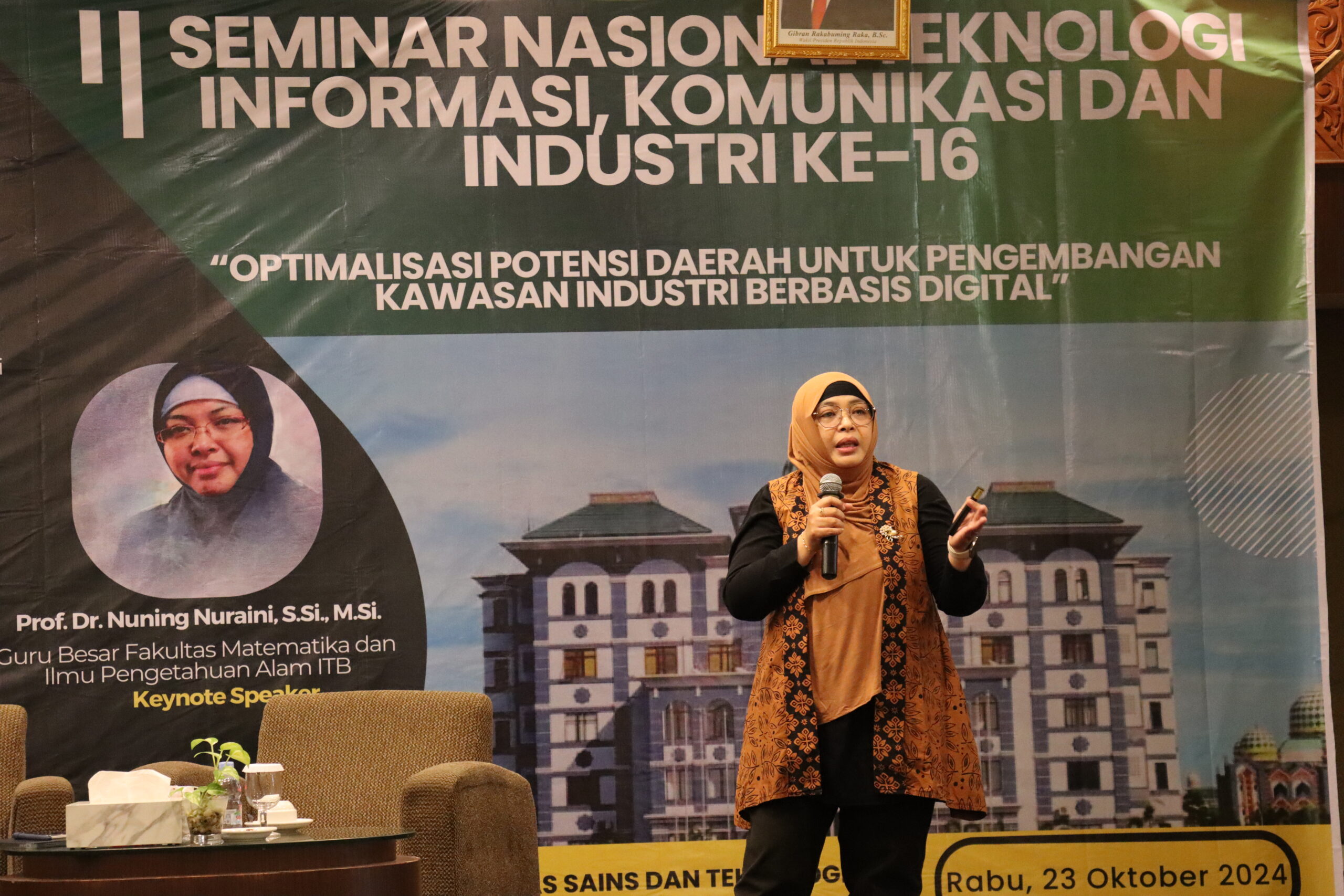 Sesi seminar ini juga mencakup paparan dari para keynote speaker yang membahas topik-topik strategis terkait digitalisasi industri. Prof. Nurnadiah membahas inovasi-inovasi teknologi informasi di kawasan ASEAN, sementara Prof. Nuning Nuraini memberikan perspektif mengenai pengembangan kawasan industri berbasis matematika terapan dan data digital.