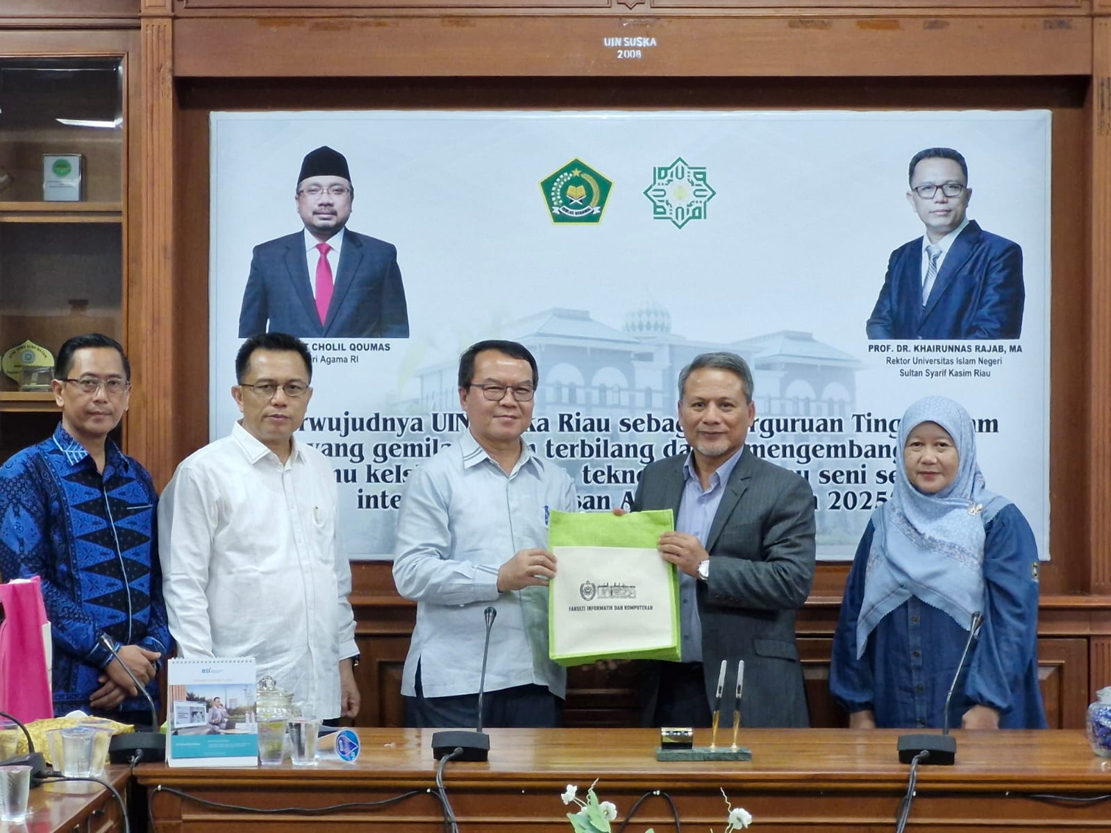 Rektor UIN Suska Riau Prof. Dr. Hairunnas, M.Ag menyambut hangat delegasi dari UNISZA yang dipimpin oleh Dekan Fakultas Informatika dan Komputer, Prof. Madya Tansri Dr. Mohammad Khalid bin Wan Awang. Dalam sambutannya, Rektor UIN Suska Riau menyampaikan apresiasi yang mendalam atas terjalinnya kerja sama ini. Beliau menekankan bahwa kolaborasi ini tidak hanya membuka peluang akademik tetapi juga memperluas ruang inovasi yang dapat memberikan manfaat besar bagi mahasiswa, dosen, dan institusi secara keseluruhan. “Dengan adanya kerja sama ini, semua ruang terbuka, dan kemudahan-kemudahan bisa kita dapatkan untuk mendukung kemajuan bersama”, ujar Rektor.