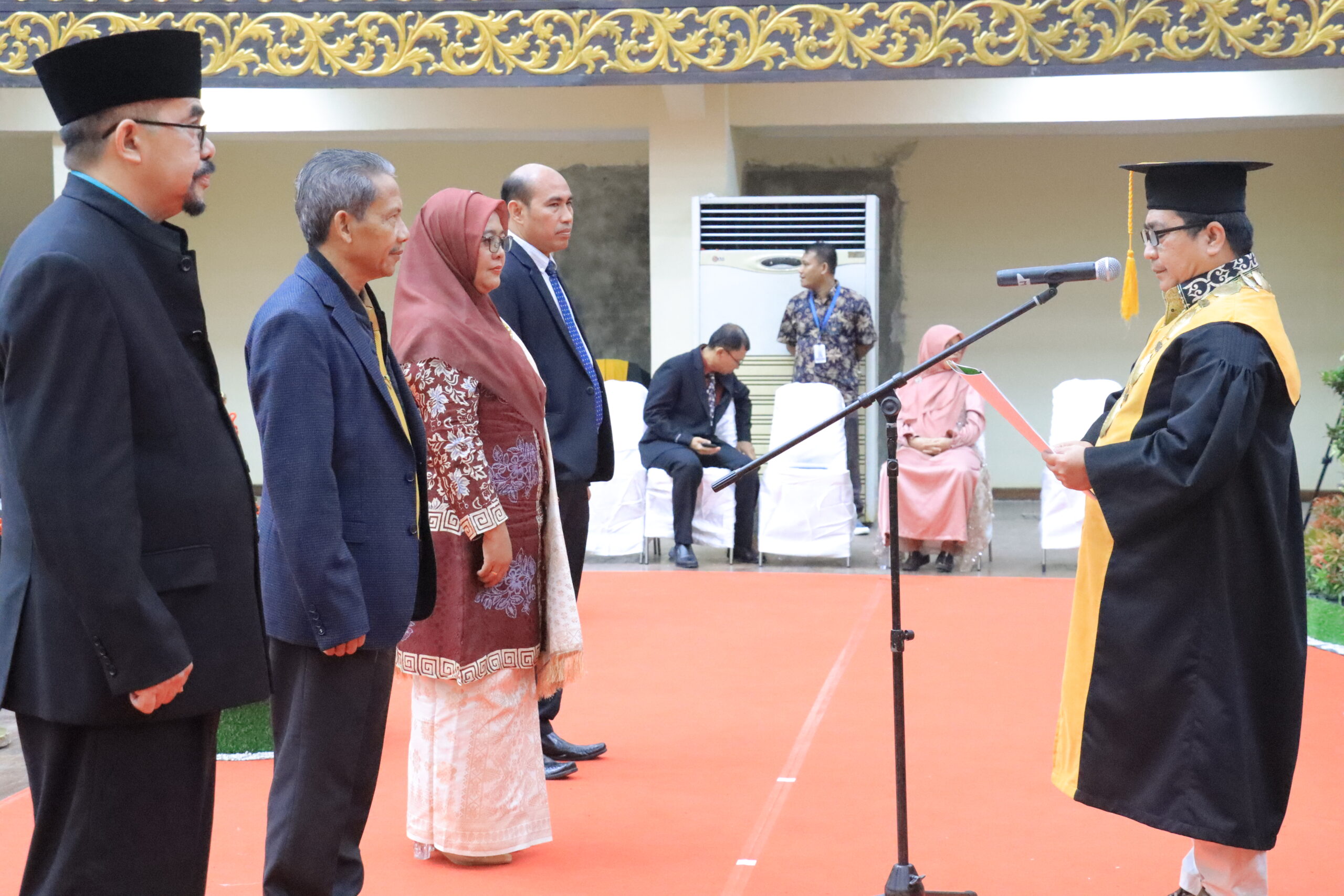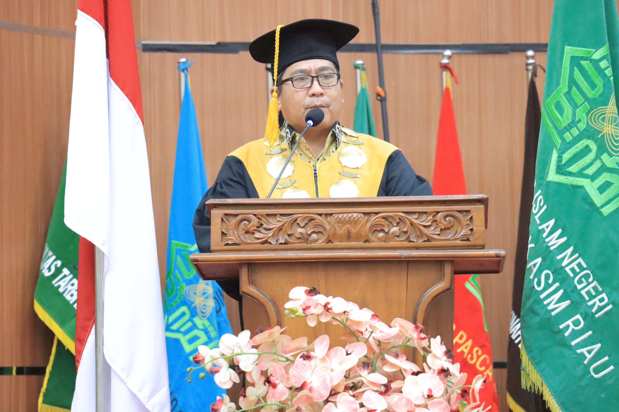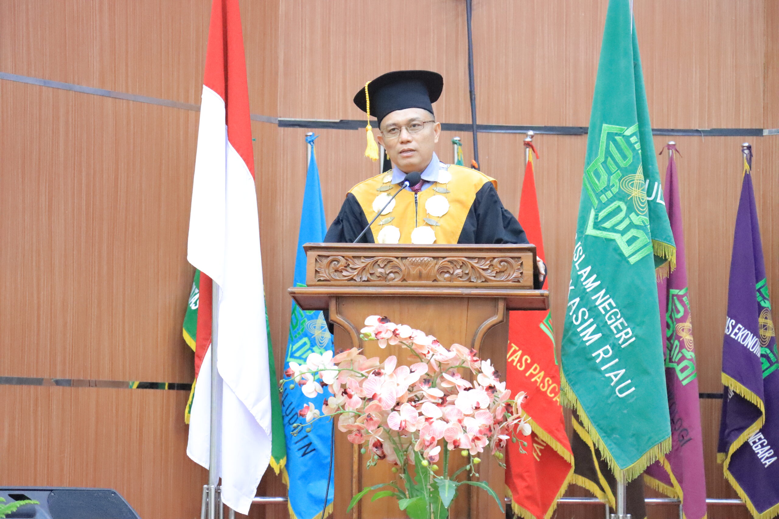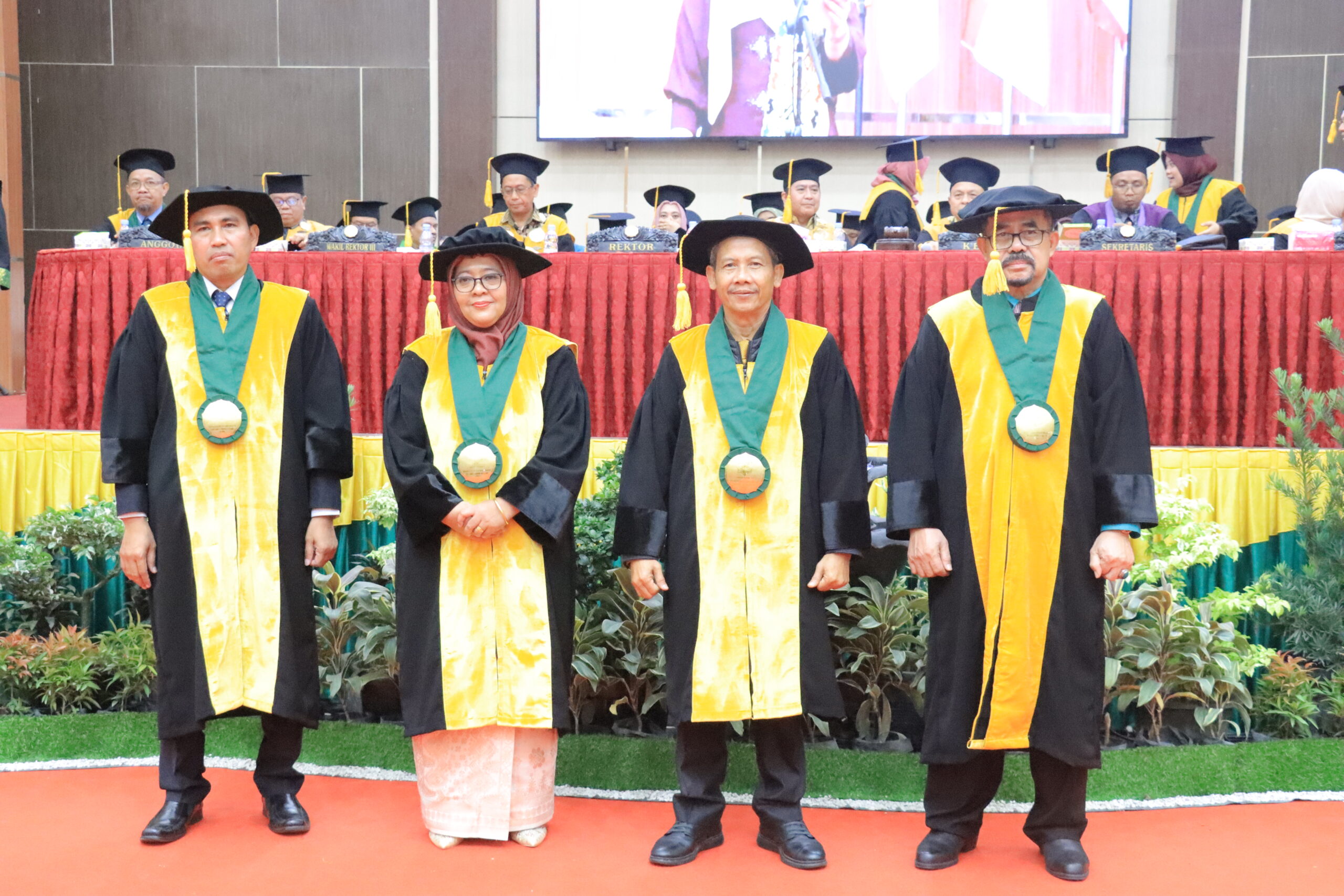 uin-suska.ac.id Universitas Islam Negeri Sultan Syarif Kasim Riau (UIN Suska Riau) kembali melahirkan sekaligus mengukuhkan empat guru besar (profesor) yang merupakan pencapaian akademik luar biasa bagi insan akademik (05/12/2024). Acara pengukuhan ke-4 guru besar ini dilaksanakan secara hikmat dan sakral di Gedung Pusat Kegiatan Mahasiswa (PKM). Capaian jabatan tertinggi akademik ini membuktikan bahwa para guru besar telah berhasil melalui berbagai tahapan ujian kompetensi, seleksi administrasi yang ketat dan berjenjang. Jabatan Guru Besar juga menjadi indikator utama prestasi gemilang khususnya di lingkungan Perguruan Tinggi Keagamaan Islam Negeri (PTKIN) di tahun 2024.