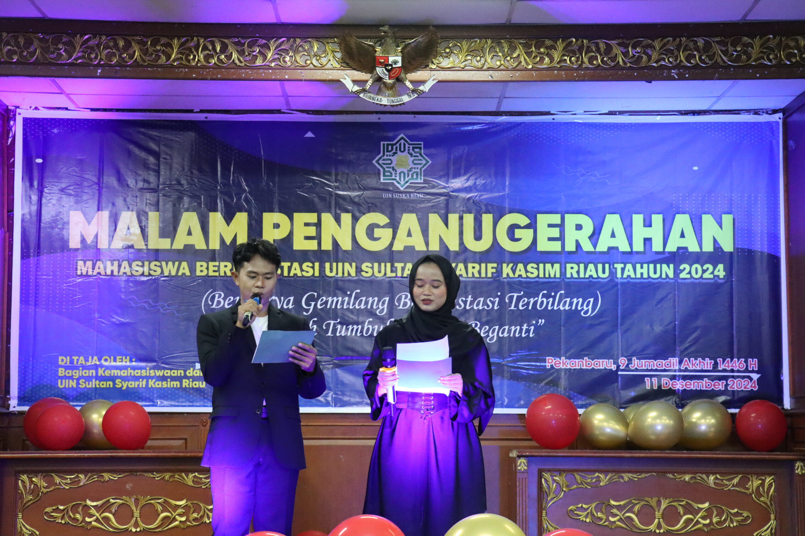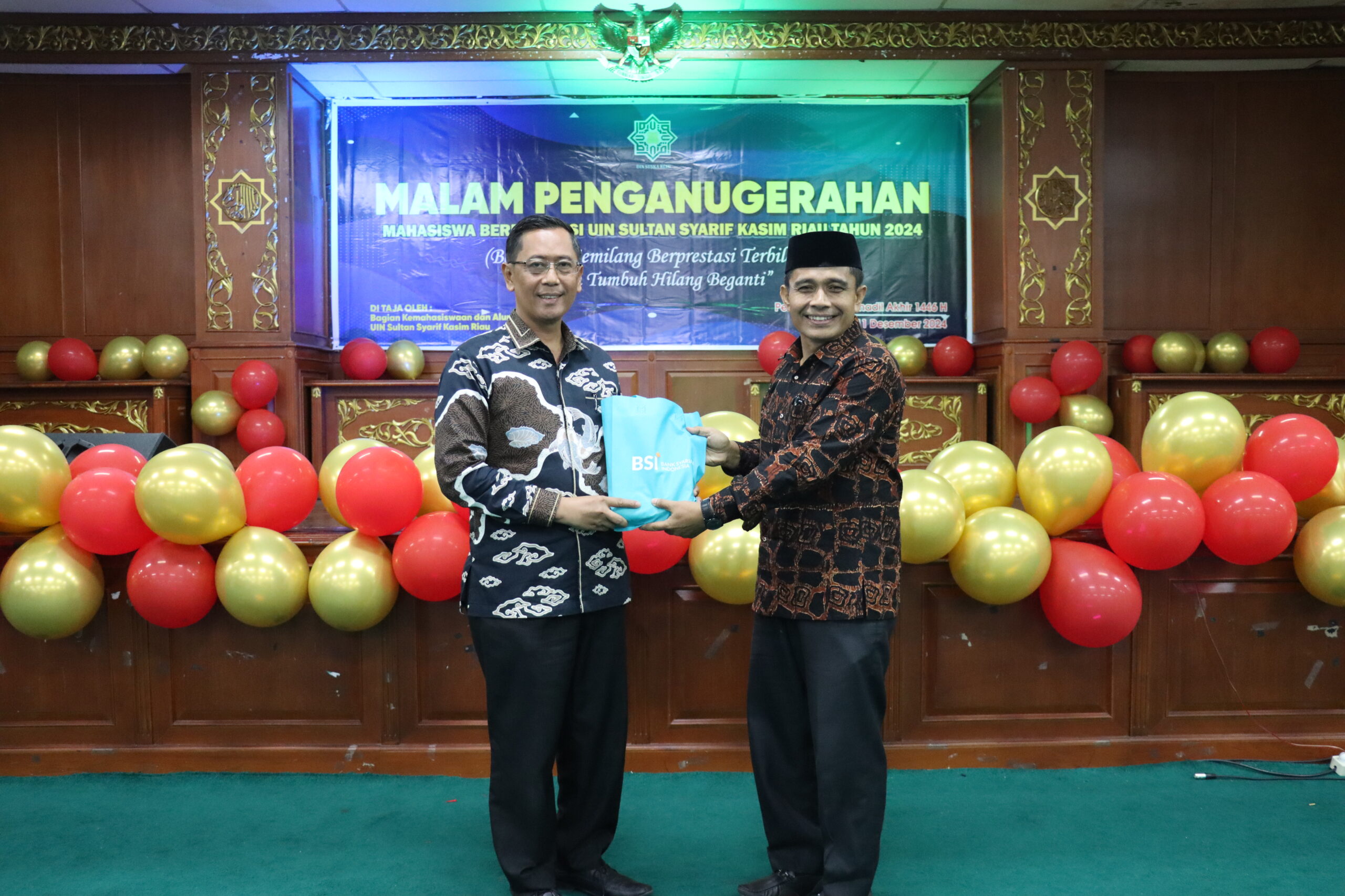 uin-suska.ac.id Sebagai bukti keseriusan sekaligus pemberian penghargaan kepada mahasiswa berprestasi, untuk pertama kalinya Universitas Islam Negeri Sultan Syarif Kasim Riau laksanakan kegiatan malam penganugerahan mahasiswa berprestasi pada Rabu, 11 Desember 2024, bertempat di Auditorium Lantai V. Kegiatan yang dilakanakan oleh Bagian Kemahasiswaan dan Alumni ini dibuka langsung oleh Rektor Prof. Dr. H. Khairunnas Rajab, M.Ag dan tampak hadir oleh Wakil Rektor III, para Dekan dan Wakil Dekan III, Kabiro AAKK, perwakilan dari Bank Syariah Indonesia (BSI) serta para mahasiswa berprestasi yang telah menorehkan prestasi gemilang pada tahun 2024.