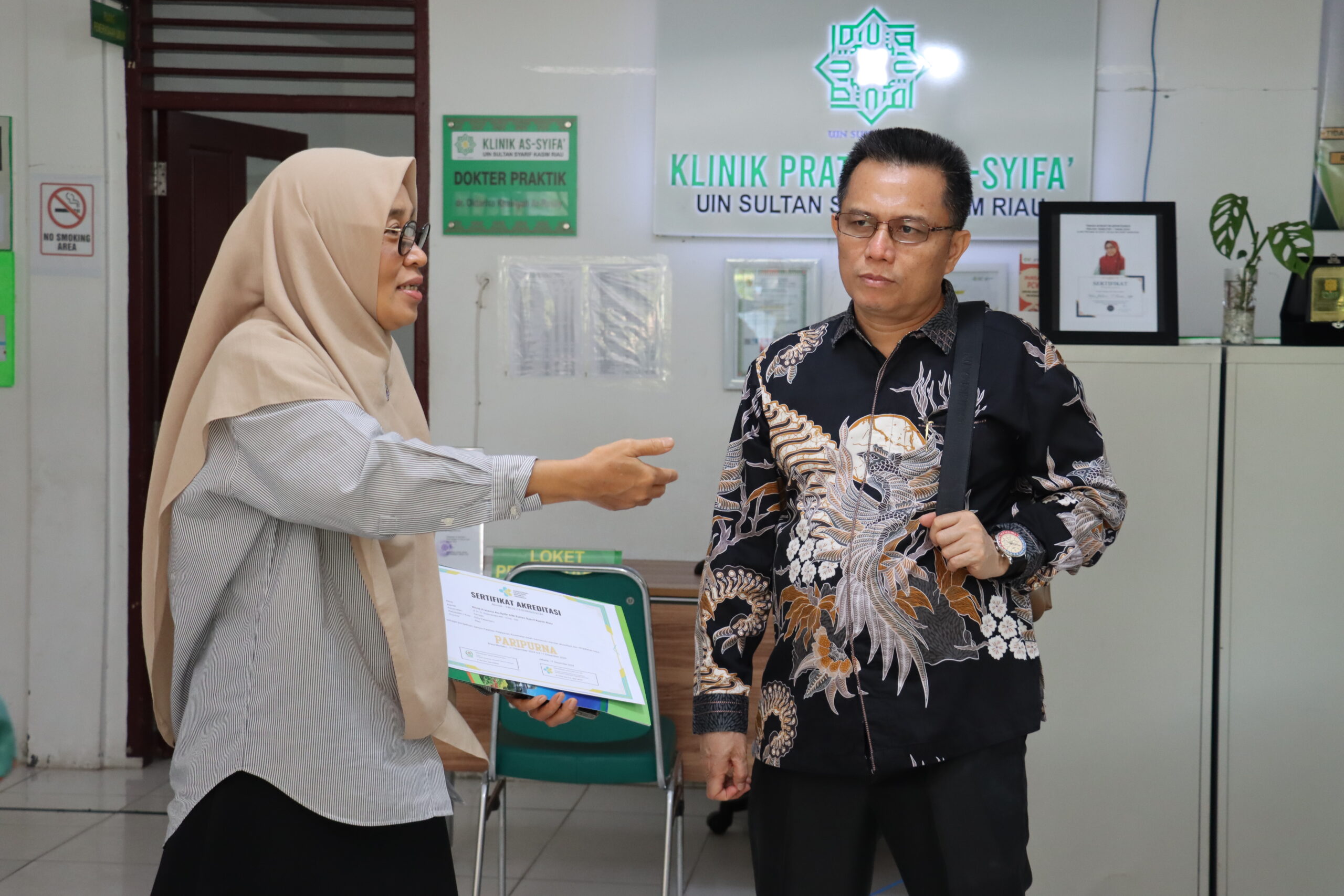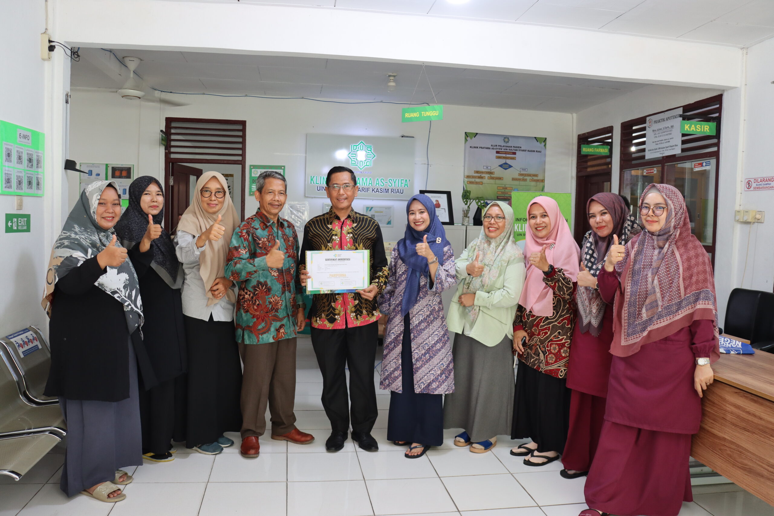 uin-suska.ac.id Setelah melalui proses persiapan yang matang untuk dilakukan Asesmen Lapangan atau evaluasi terhadap berbagai aspek, baik manajemen, pelayanan dan infrastruktur akhirnya Klinik As-Syifa’ Universitas Islam Negeri Sultan Syarif Kasim Riau meraih peringkat Akreditasi “Paripurna” dari Kementerian Kesehatan Republik Indonesia sesuai dengan sertifikat yang terima dengan Nomor : YM.02.01/D/46920/2024, tertanggal 17 Desember 2024.