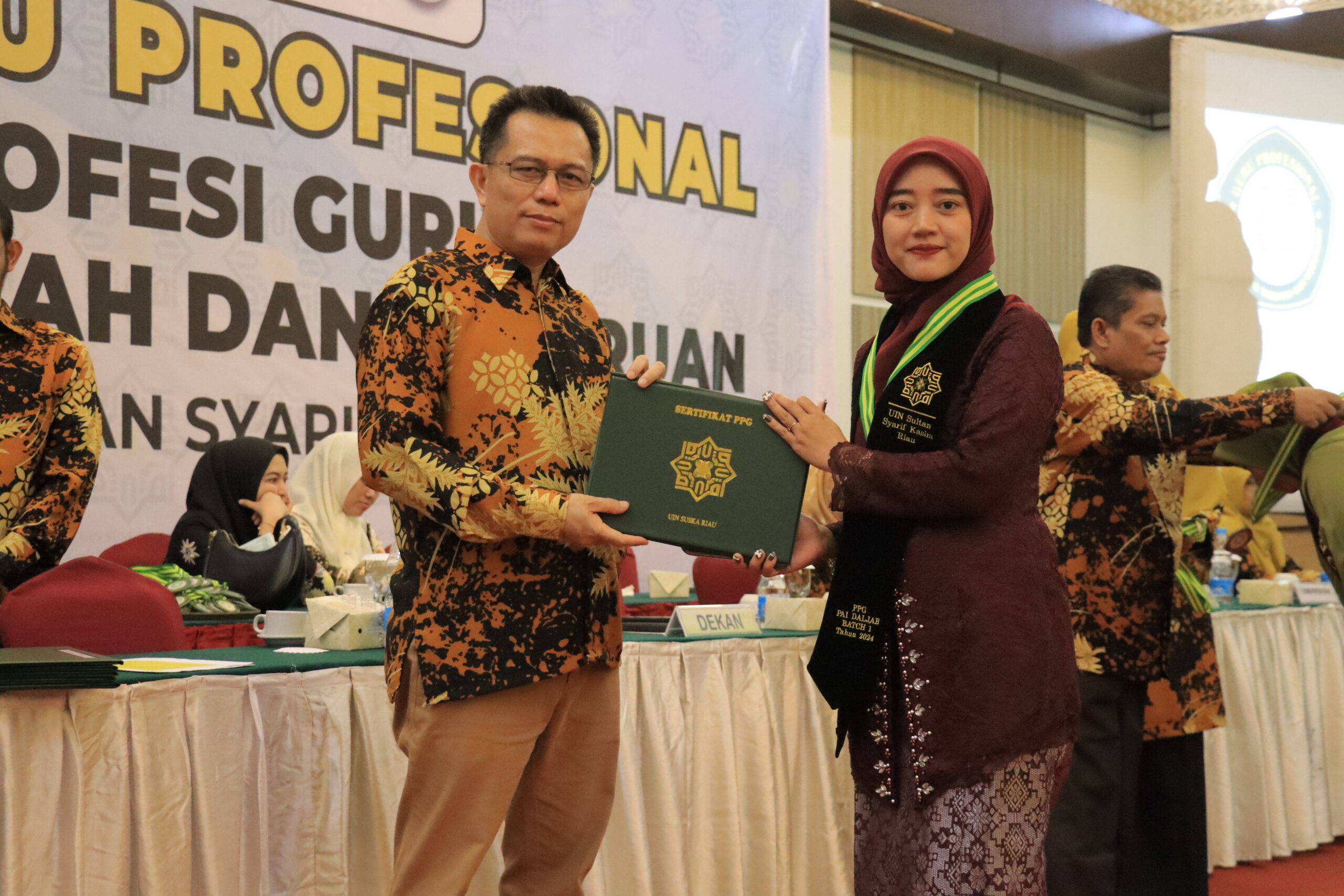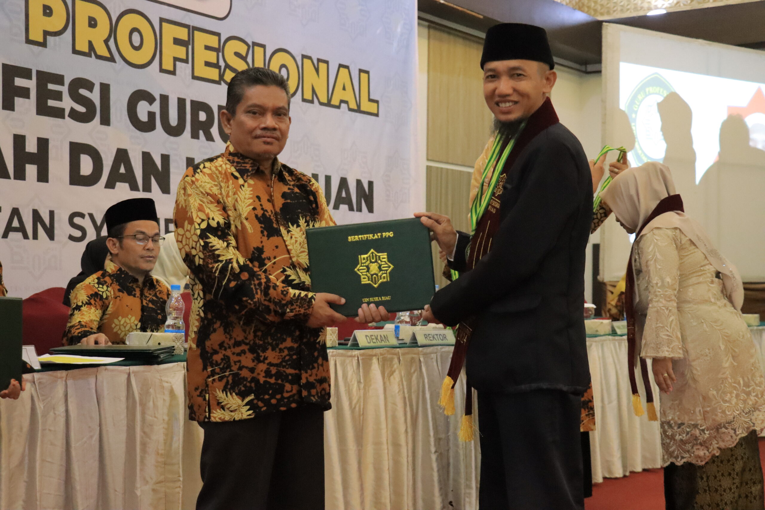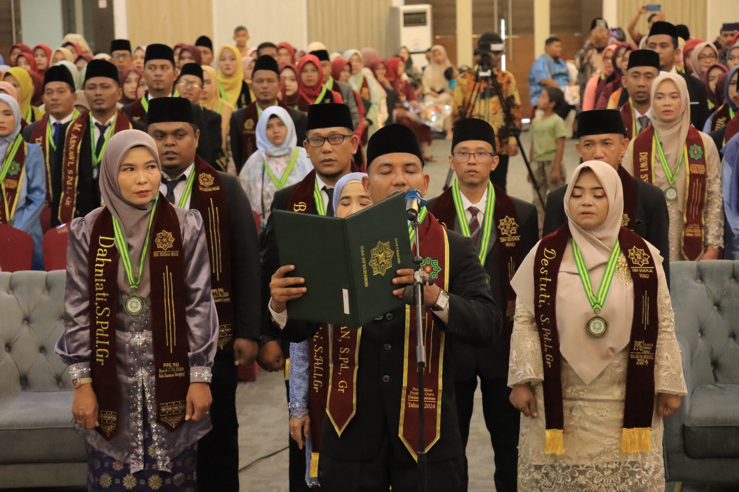 uin-suska.ac.id Universitas Islam Negeri Sultan Syarif Kasim Riau melalui Lembaga Pendidikan dan Tenaga Kependidikan (LPTK) Fakultas Tarbiyah dan Keguruan kembali kukuhkan guru profesional sebanyak 384 orang. Kegiatan pengukuhan yang dilaksanakan pada Sabtu, 21 Desember 2024 bertempat di Ballroom Hotel Grand Suka, dan dihadiri oleh Wakil Rektor I, Dekan FTK, Wakil Dekan I, II dan III, Ketua Prodi dan Sekretaris Prodi Pendidikan Profesi Guru (PPG), Dosen dan berbagai pihak turut hadir, antara lain Ridwan, S.HI, MH, Pengembang Teknologi Pembelajaran Ahli Muda Kanwil Kemenag Riau, Nofitrizal Sekretaris BKPSMD Siak, Marlis Kasi Pembinaan SD Disdikpora Kuansing, Eka Nofrianti BKPSDMD Siak. Para peserta pengukuhan ini akan segera kembali dan fokus dalam tugas utamanya serta akan menjadi tenaga pendidik yang profesional sesuai yang diharapkan pemerintah.