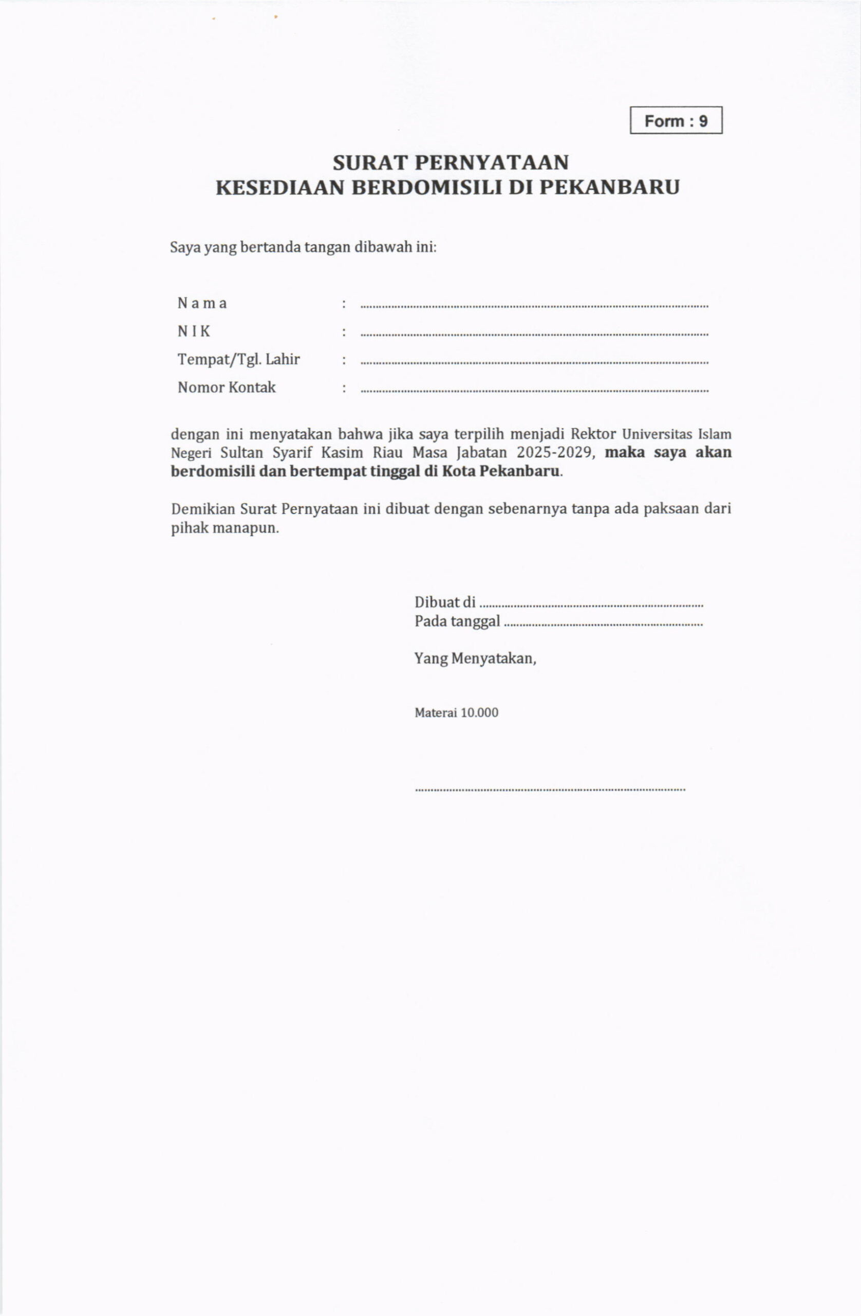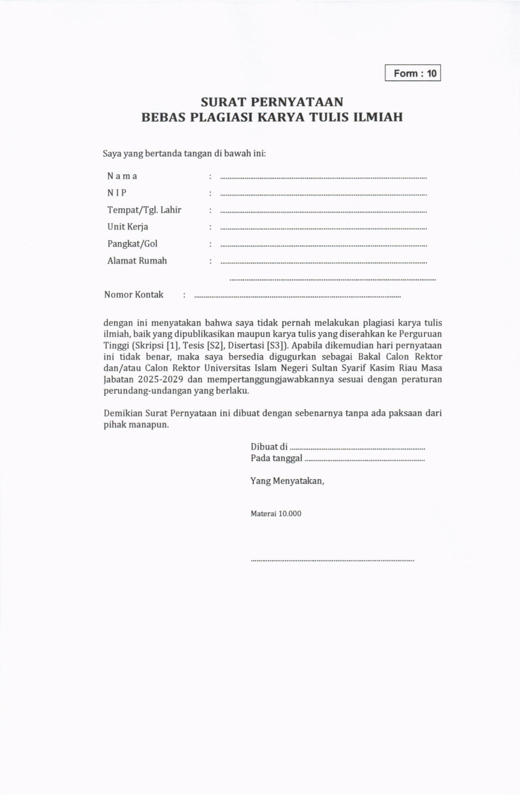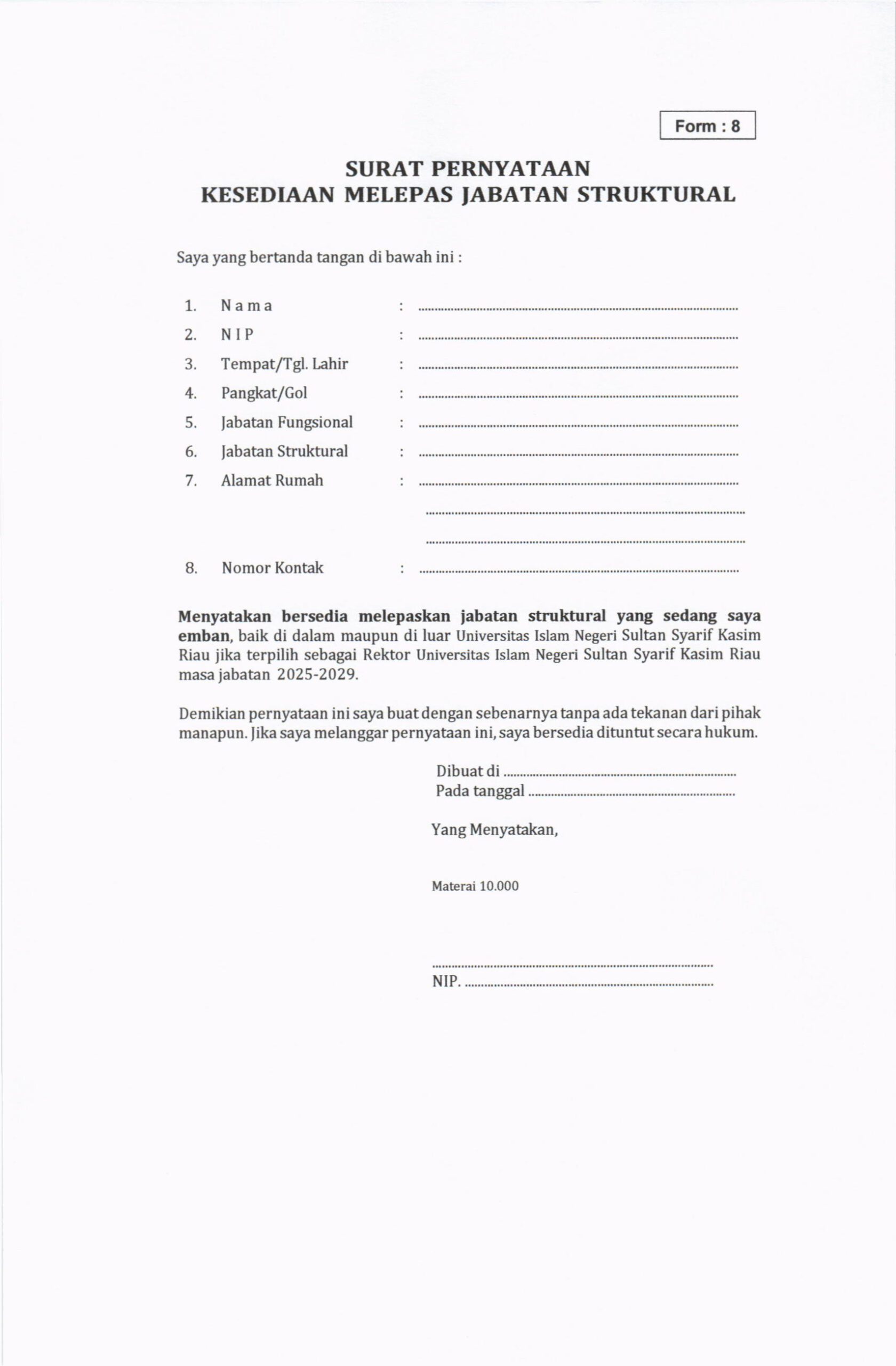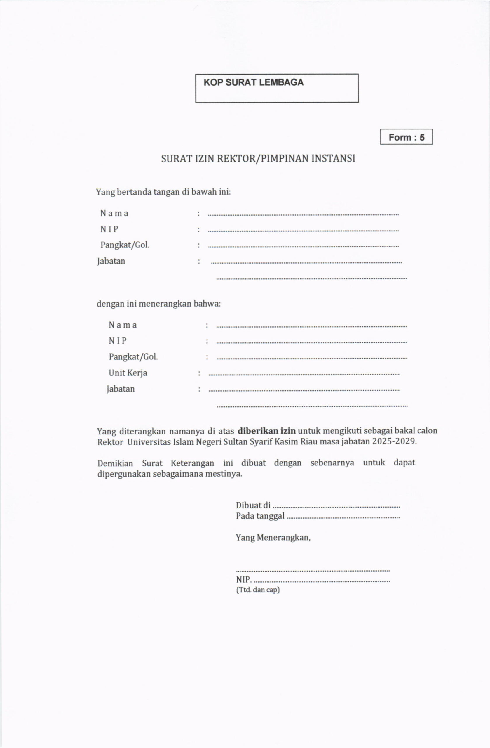 Pengumuman Penjaringan Bakal Calon Rektor UIN Suska Riau Masa Jabatan 2025-2029