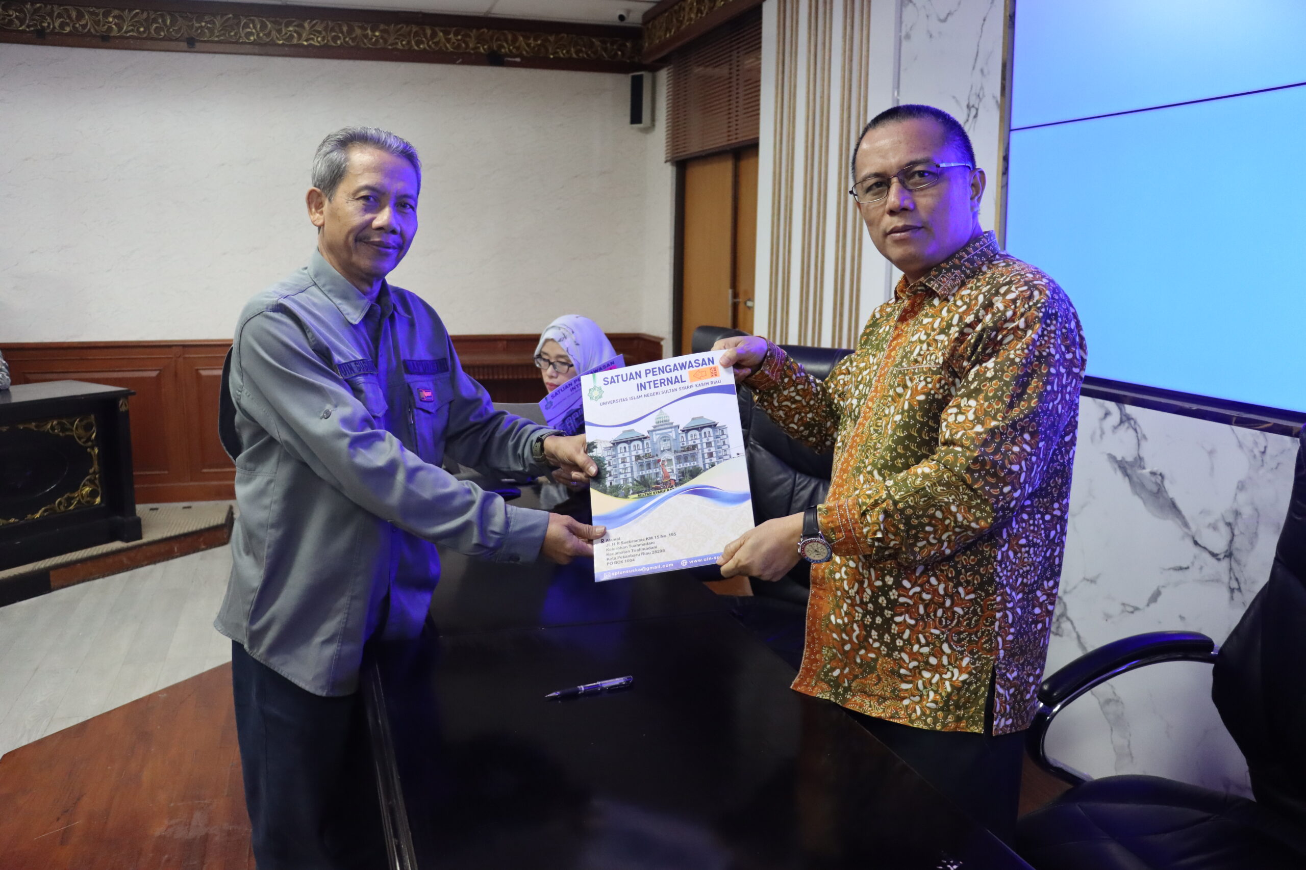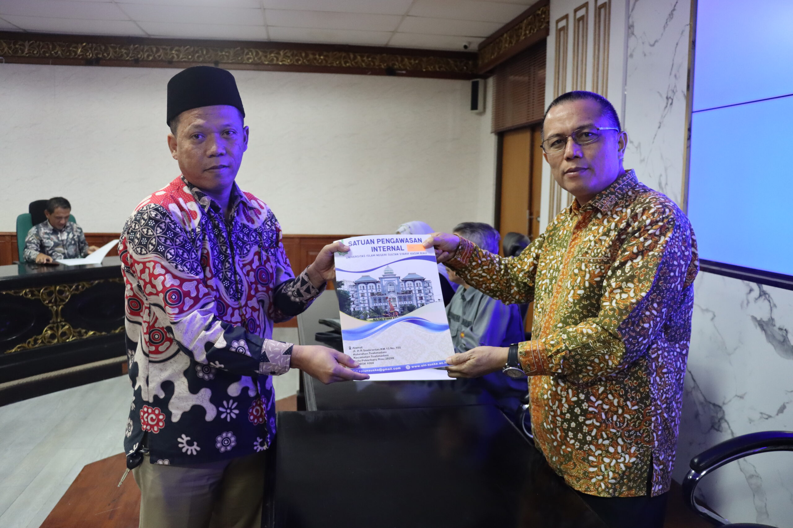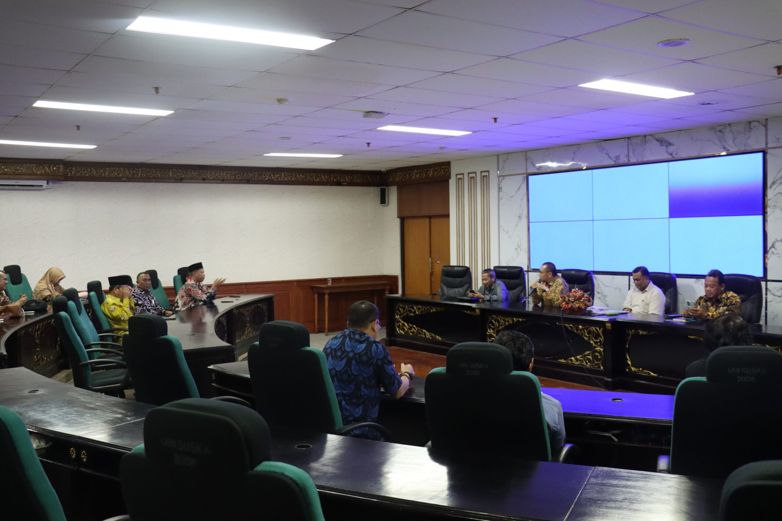 uin-suska.ac.id Universitas Islam Negeri Sultan Syarif Kasim (UIN Suska) Riau menggelar acara Penandatanganan Perjanjian Kinerja (Perkin) Tahun 2025 yang berlangsung di Ruang Rapat Senat Lantai V Gedung Rektorat. Acara ini dihadiri oleh Rektor UIN Suska Riau, Wakil Rektor I, Wakil Rektor II, Kepala Biro Administrasi Umum, Perencanaan, dan Keuangan (AUPK), para dekan fakultas, Wakil Direktur Pascasarjana, Ketua Lembaga Penelitian dan Pengabdian kepada Masyarakat (LPPM), Ketua UPT/Satuan Pengawas Internal (SPI), serta Tim Perumus Indikator Kinerja Utama (IKU) Kamis, 27/02/2025.