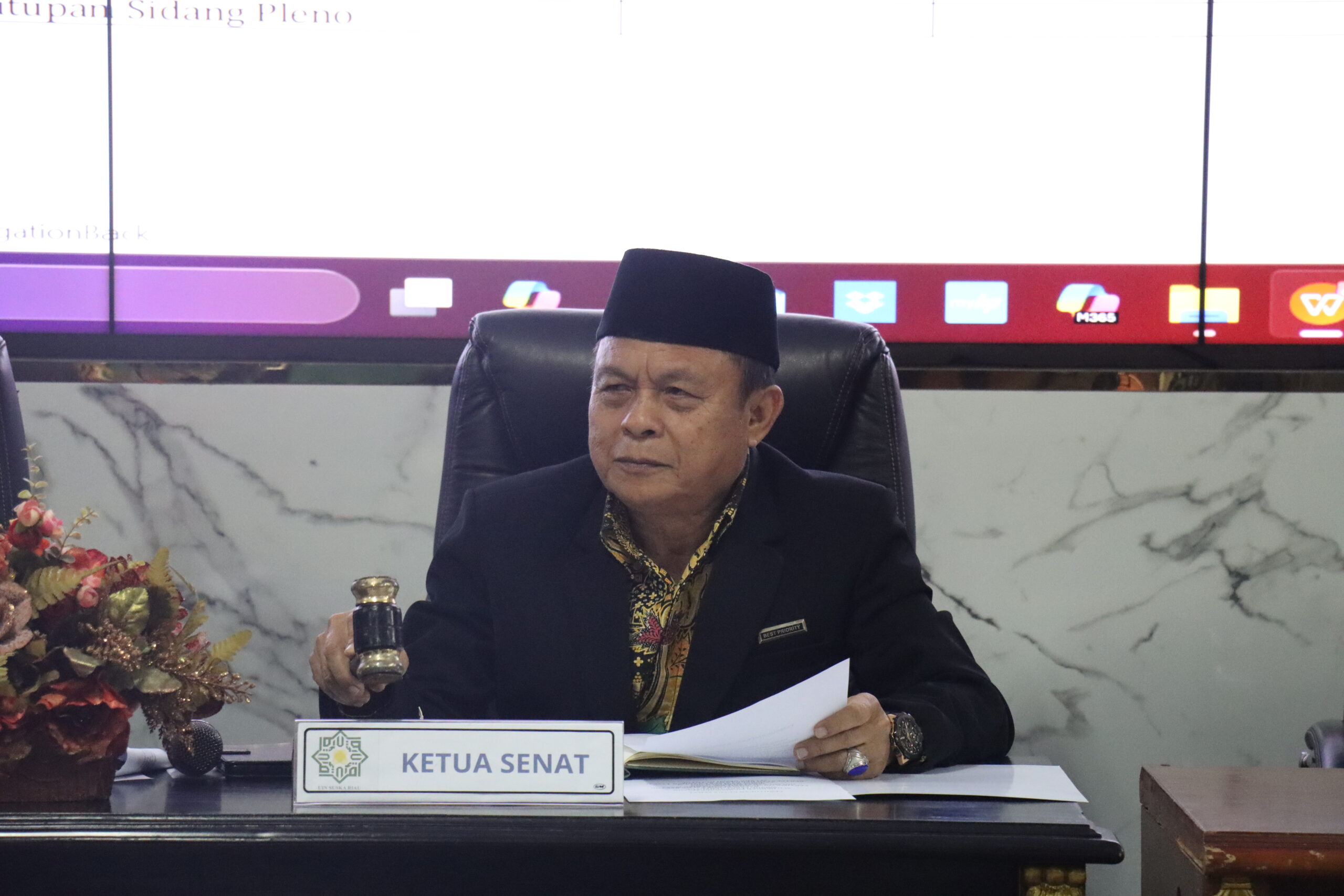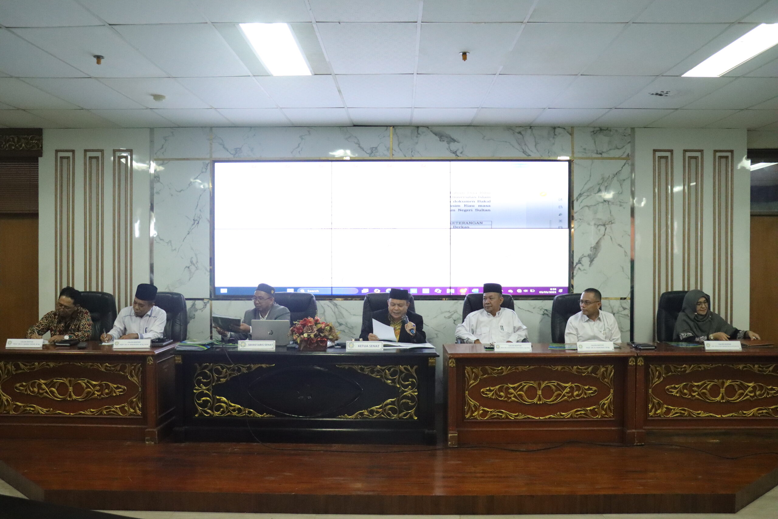 uin-suska.ac.id Universitas Islam Negeri Sultan Syarif Kasim (UIN Suska) Riau menggelar Rapat Sidang Senat Tertutup pada Senin, 3 Maret 2025, di Ruang Rapat Senat, Lantai 5 Gedung Rektorat UIN Suska Riau. Sidang ini dihadiri oleh Ketua Senat, Sekretaris Senat, serta seluruh anggota senat dan kelima calon rektor yang akan memimpin UIN Suska Riau untuk periode 2025-2029. Acara ini diselenggarakan untuk menyampaikan visi dan misi para calon rektor, yang nantinya akan mempengaruhi arah dan perkembangan universitas dalam beberapa tahun mendatang.