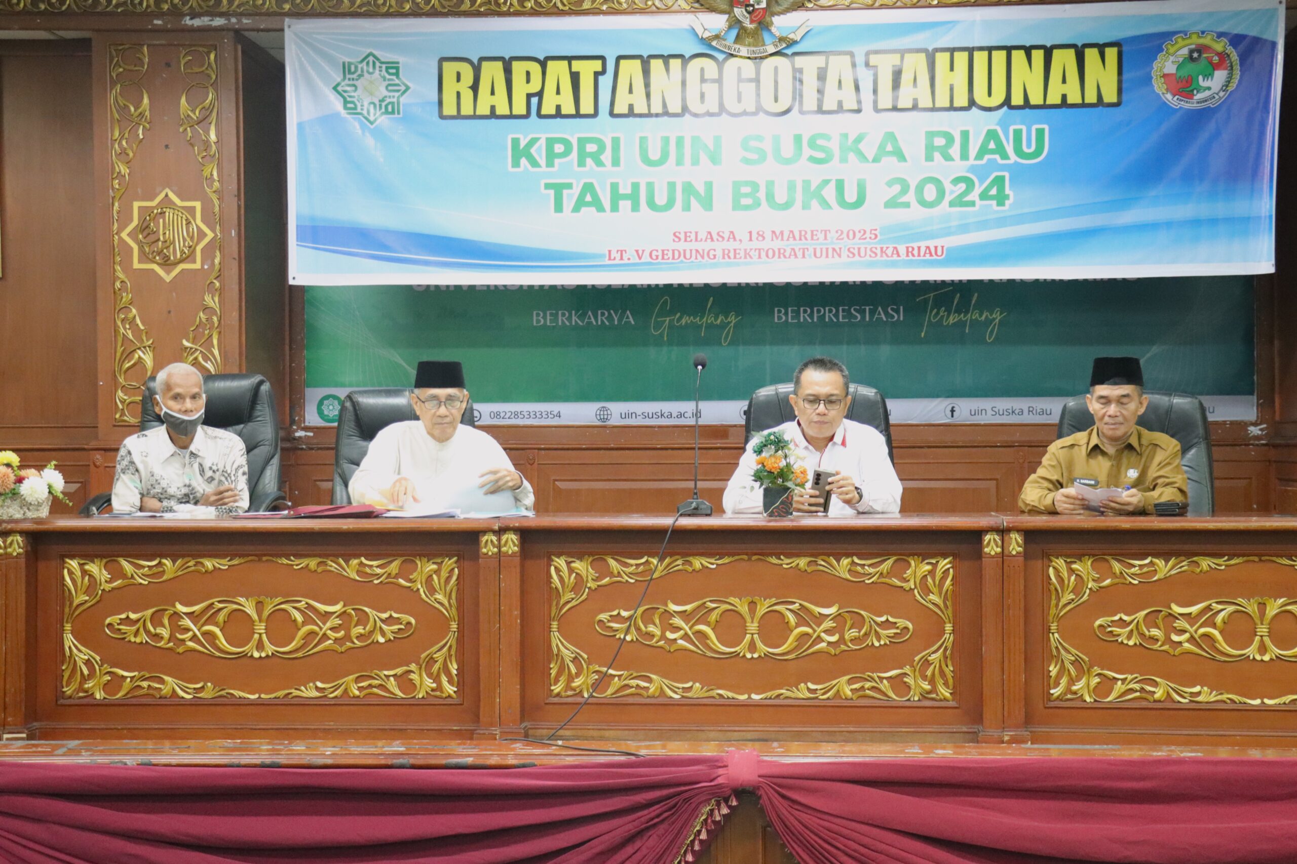 uin-suska.ac.id Koperasi Pegawai Republik Indonesia (KPRI) Universitas Islam Negeri Sultan Syarif Kasim (UIN Suska) Riau menggelar Rapat Anggota Tahunan (RAT) untuk tahun buku 2024 di Ruang Auditorium Lantai 5 Gedung Rektorat Selasa (18/03/2025). Kegiatan ini merupakan agenda wajib yang dilaksanakan setiap tahun oleh KPRI UIN Suska Riau, yang bertujuan untuk memberikan laporan dan evaluasi kegiatan koperasi serta merencanakan kegiatan-kegiatan berikutnya.