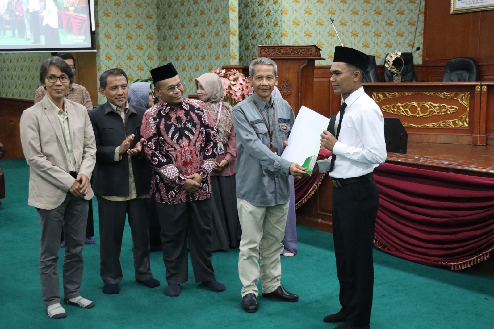Acara berlangsung dengan khidmat dan ditutup dengan sesi foto bersama sebagai bentuk kebersamaan dan dokumentasi resmi penyerahan SK tersebut.