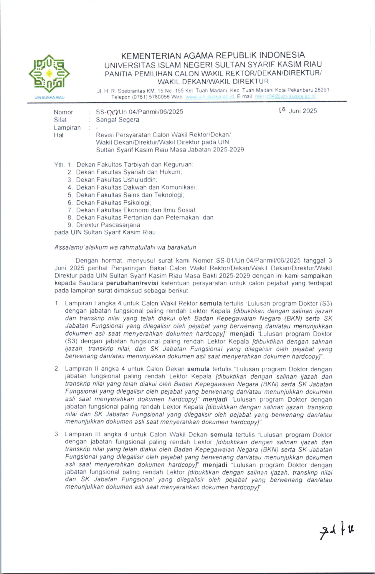 Surat Penjaringan Calon Ketua Lembaga dan UPT