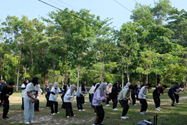 Selain kegiatan akademik, salah satu aktifitas paling seru dalam rangkaian Joint Mobility Program 2025 adalah outbound training yang dilaksanakan di area terbuka kampus UIN Suska Riau. Kegiatan yang dipimpin “marshal” Yelfi Vitriani, S.Kom., M.M.S.I. dan instruktur utama Novriyanto, ST., M.Sc. berlangsung dalam suasana penuh tawa, semangat, dan antusiasme tinggi dari para peserta. Dua permainan utama yang disuguhkan adalah “Ladang Ranjau” dan “Game Lini Produksi”.