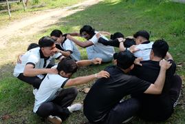 Dalam permainan Ladang Ranjau, peserta dibagi dalam dua kelompok di mana peserta ditutup matanya dengan kain sementara satu orang memberi instruksi lisan untuk melewati lintasan berisi rintangan hingga ke garis finish. Permainan ini melatih kepercayaan, komunikasi efektif, serta kepemimpinan di bawah tekanan. Tak jarang terdengar gelak tawa ketika peserta tersandung “ranjau” sebuah momen yang menyenangkan namun sarat pembelajaran.