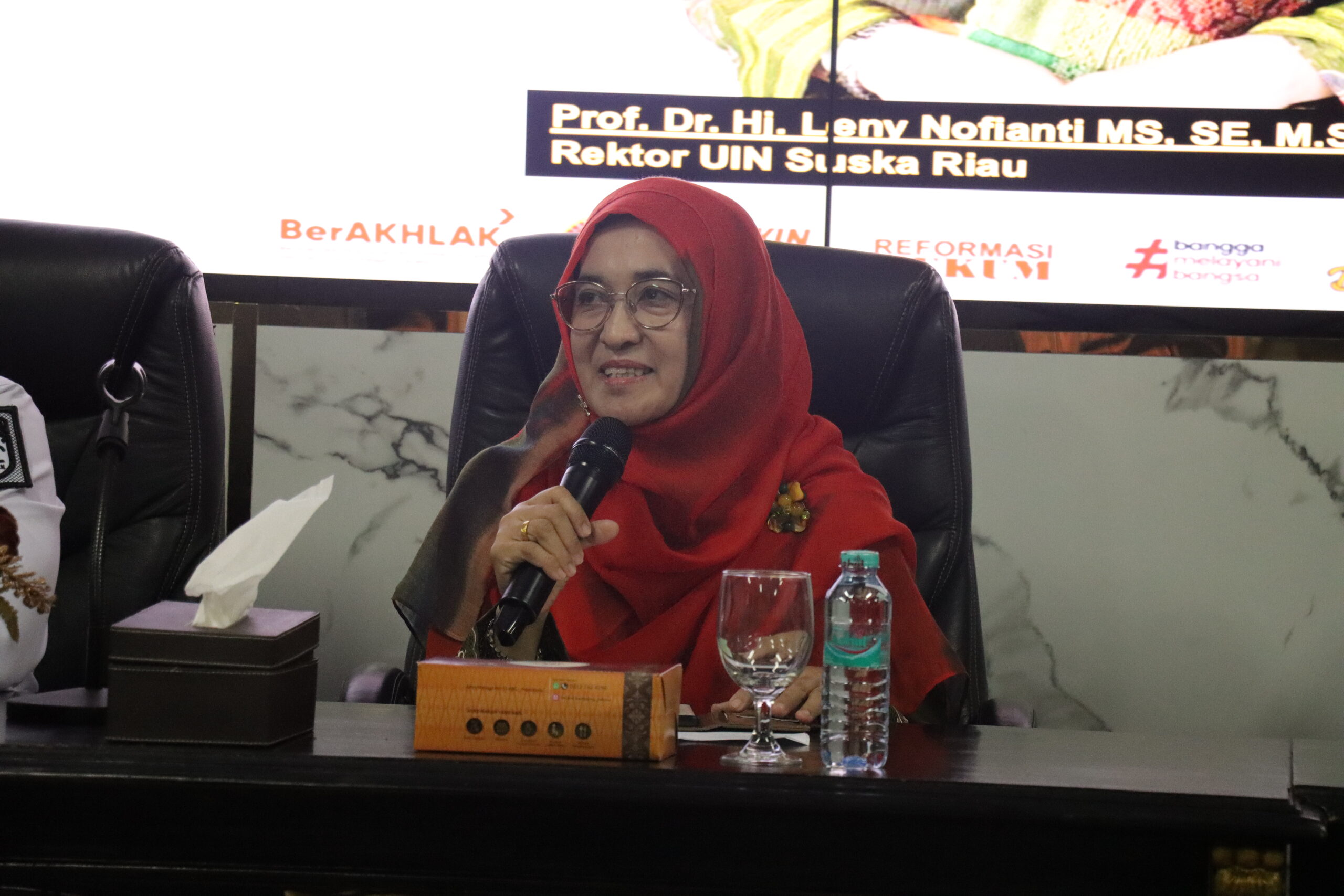 Dalam Sambutannya, Rektor UIN Suska Riau Prof. Dr. Hj. Leny Nofianti, MS., SE., M. Si, Ak., CA, menyambut baik dan kegiatan ini merupakan tindak lanjut dari Kerjasama antara Lembaga Penelitian dan Pengabdian Masyarakat (LP2M) UIN Suska Riau dengan Kanwil Kemenkumham Riau yang telah berjalan sejak tahun 2023.