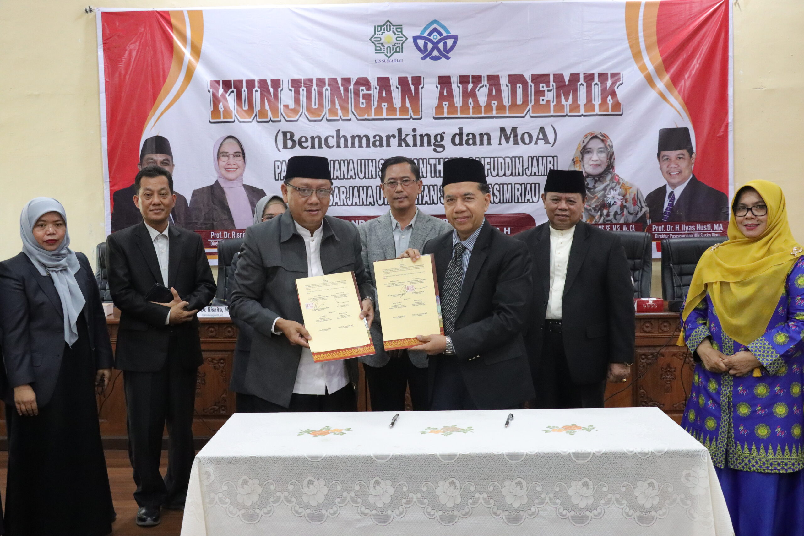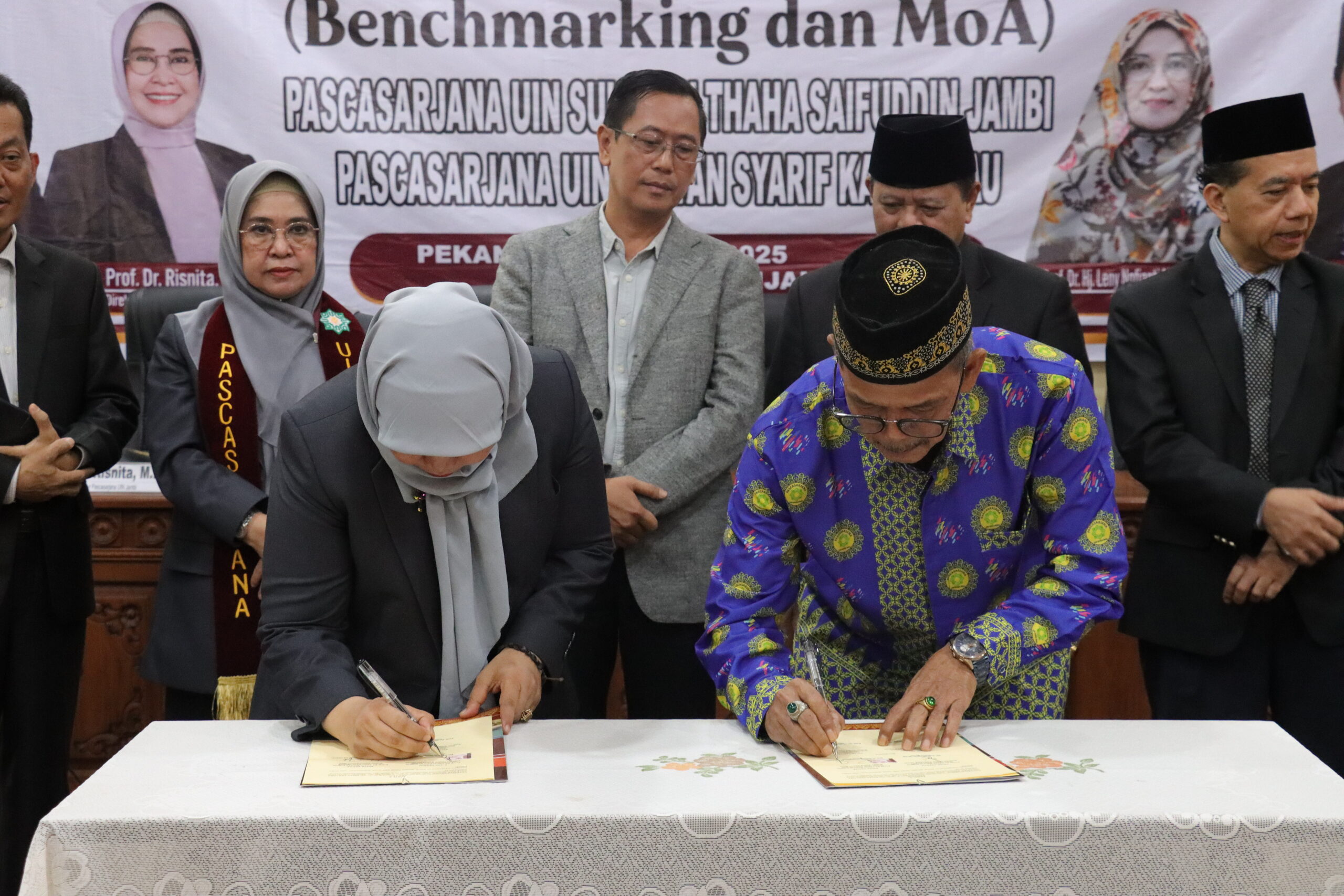 uin-suska.ac.id Program Pascasarjana Universitas Islam Negeri Sultan Syarif Kasim (UIN Suska) Riau dan Program Pascasarjana UIN Sulthan Thaha Saifuddin Jambi resmi menjalin Kerja Sama Akademik. Penandatanganan Memorandum of Agreement (MoA) ini dilaksanakan pada Jumat, 20 Juni 2025, bertempat di Aula Pascasarjana UIN Suska Riau.