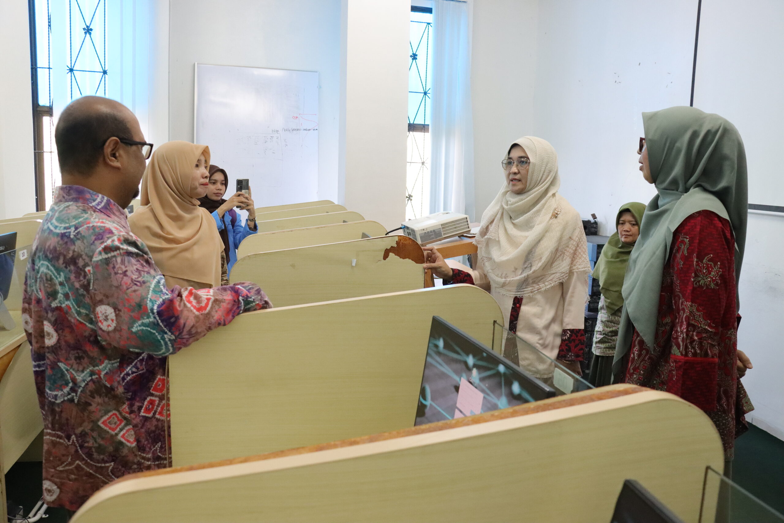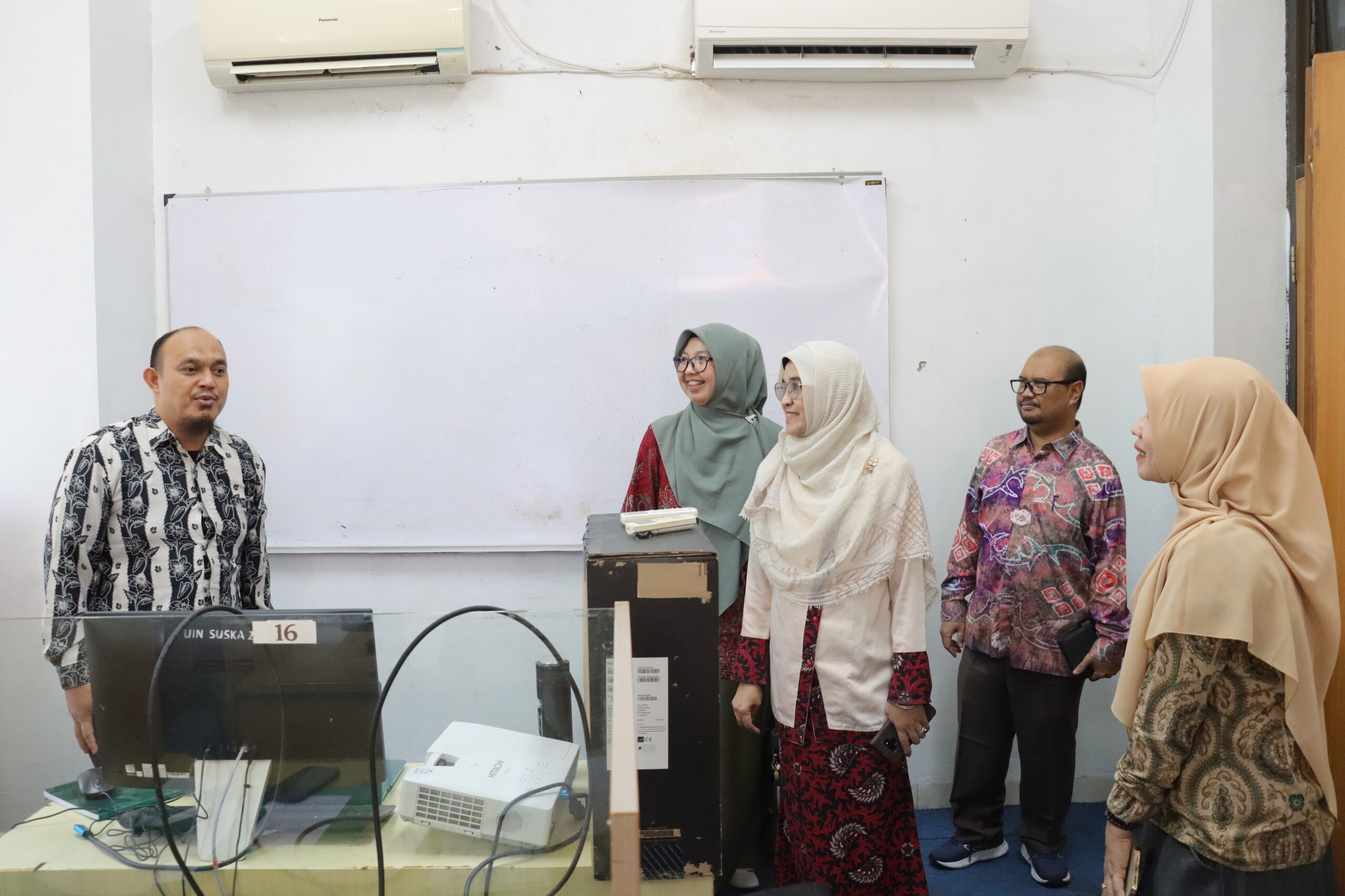 Rektor UIN Suska Riau, Prof. Dr. Hj. Leny Nofianti MS, SE, M.Si, Ak, didampingi Wakil Rektor Bidang Akademik dan Pengembangan Lembaga, Prof. Raihani, M.Ed., Ph.D., meninjau langsung pelaksanaan ujian. Dalam kesempatan tersebut, Rektor menyampaikan apresiasinya atas kelancaran proses ujian.