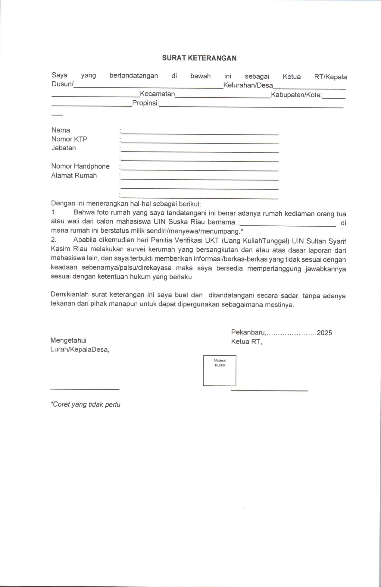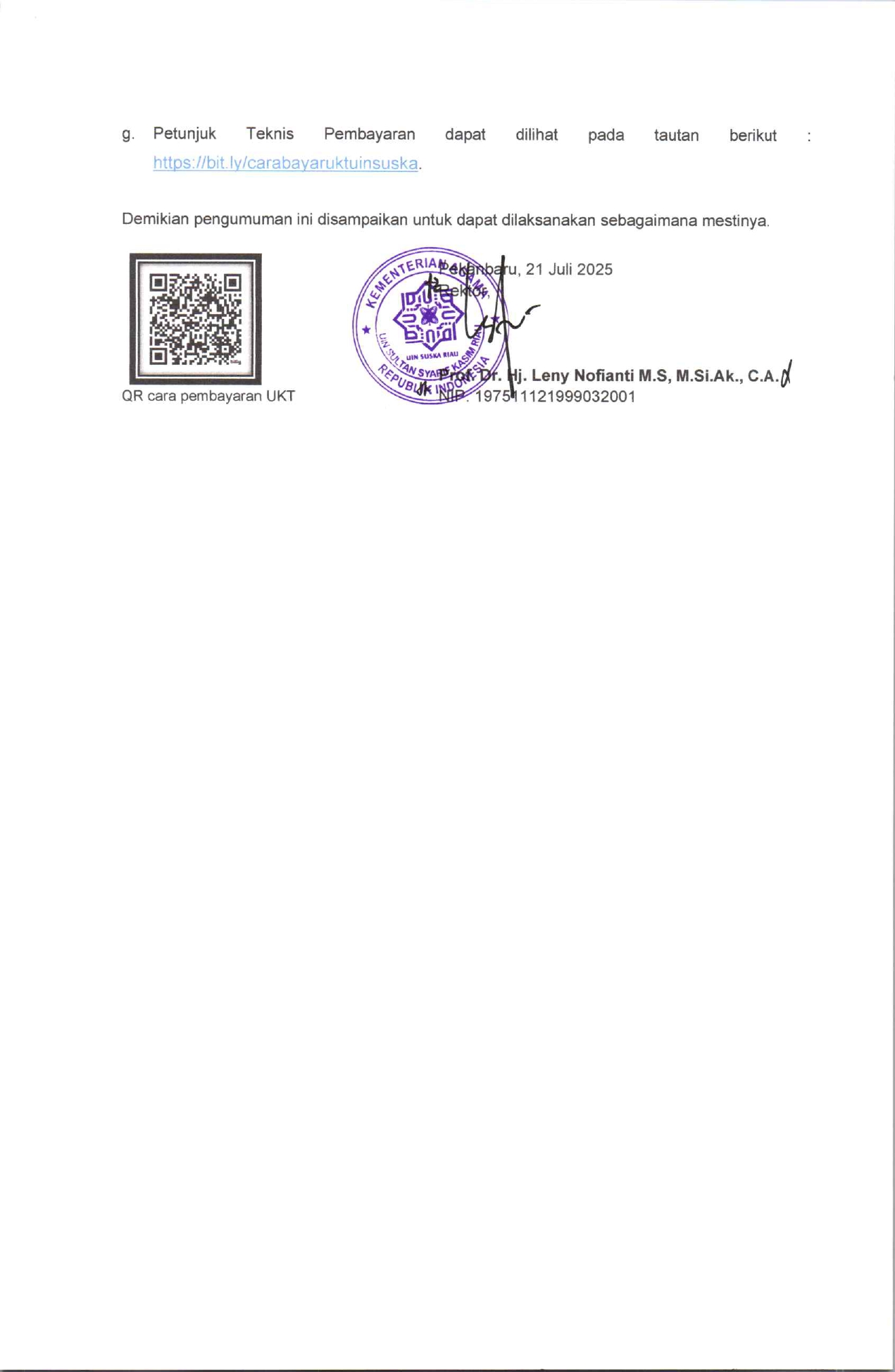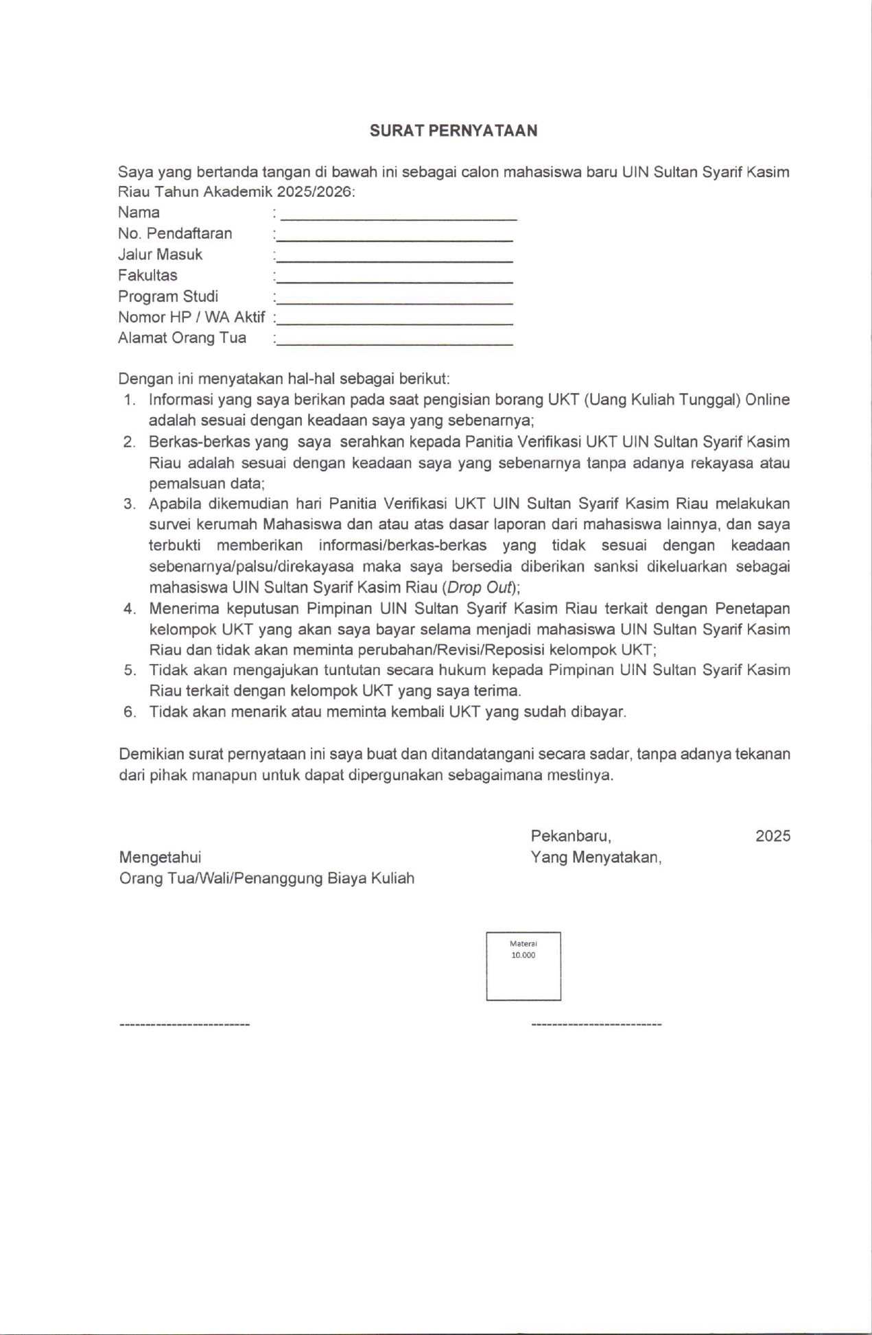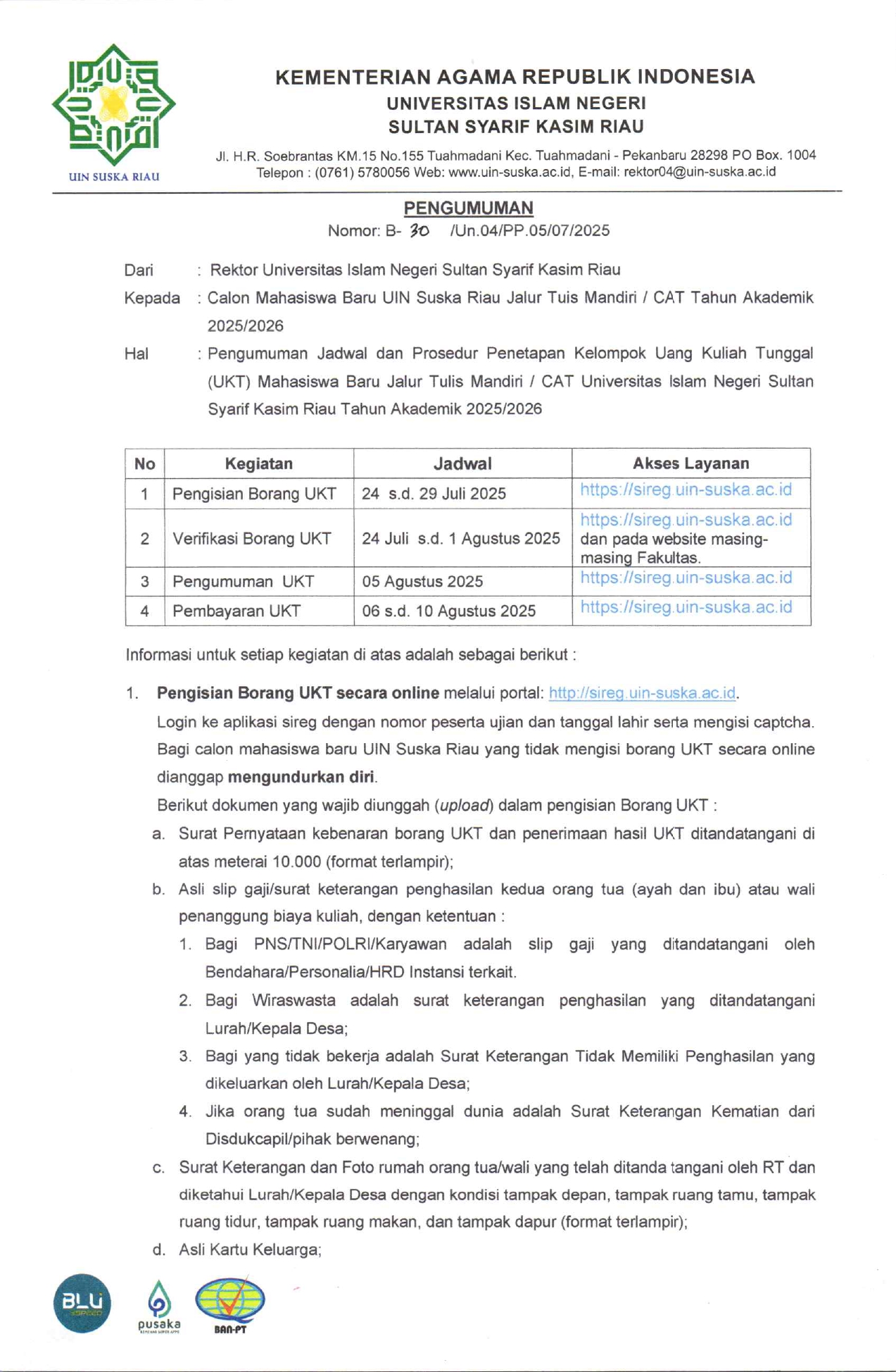 Pengumuman Jadwal dan Prosedur Penetapan Kelompok Uang Kuliah Tunggal (UKT) Mahasiswa Baru Jalur Tulis Mandiri / CAT Universitas Islam Negeri Sultan Syarif Kasim Riau Tahun Akademik 2025/2026