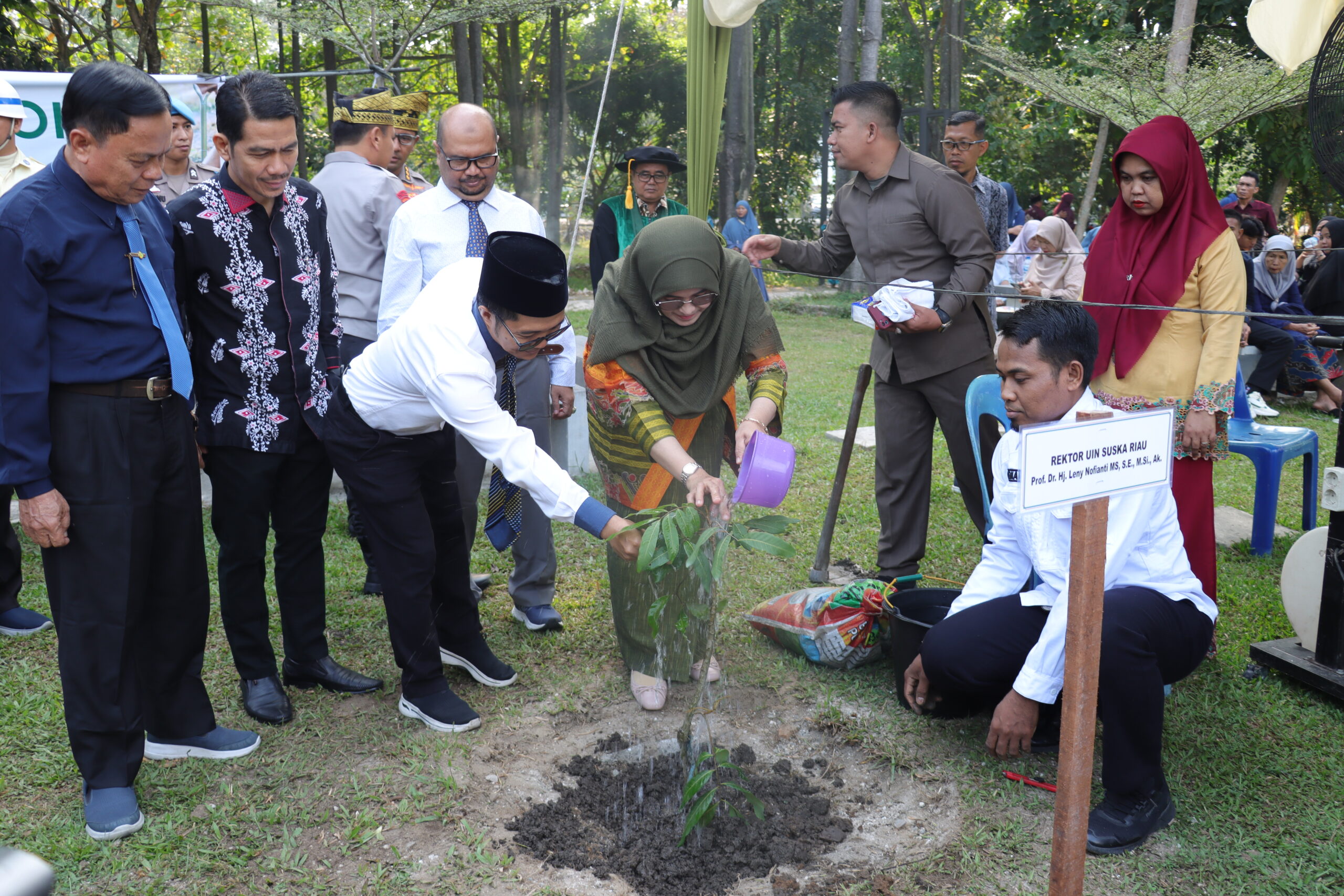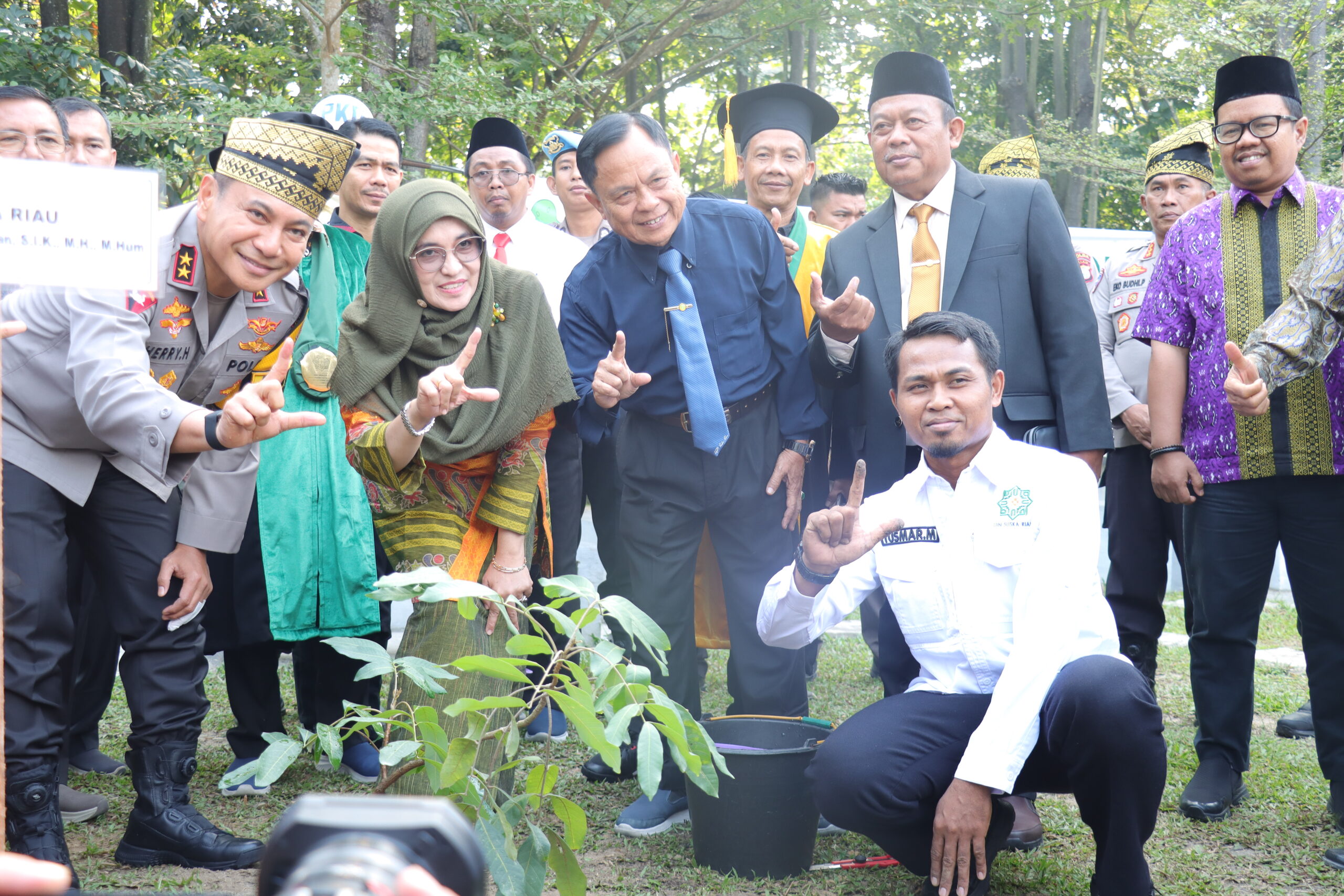 Kegiatan diawali dengan penanaman pohon secara simbolis oleh Kapolda Riau, Irjen. Pol. Dr. Herry Heryawan, S.IK, M.H., bersama Rektor UIN Suska Riau, Prof. Dr. Hj. Leny Nofianti, MS, SE, M.Si, Ak. Aksi ini dilaksanakan di halaman depan Gedung Rektorat sebagai simbol komitmen terhadap pelestarian lingkungan dan keberlanjutan alam di Bumi Melayu Riau.