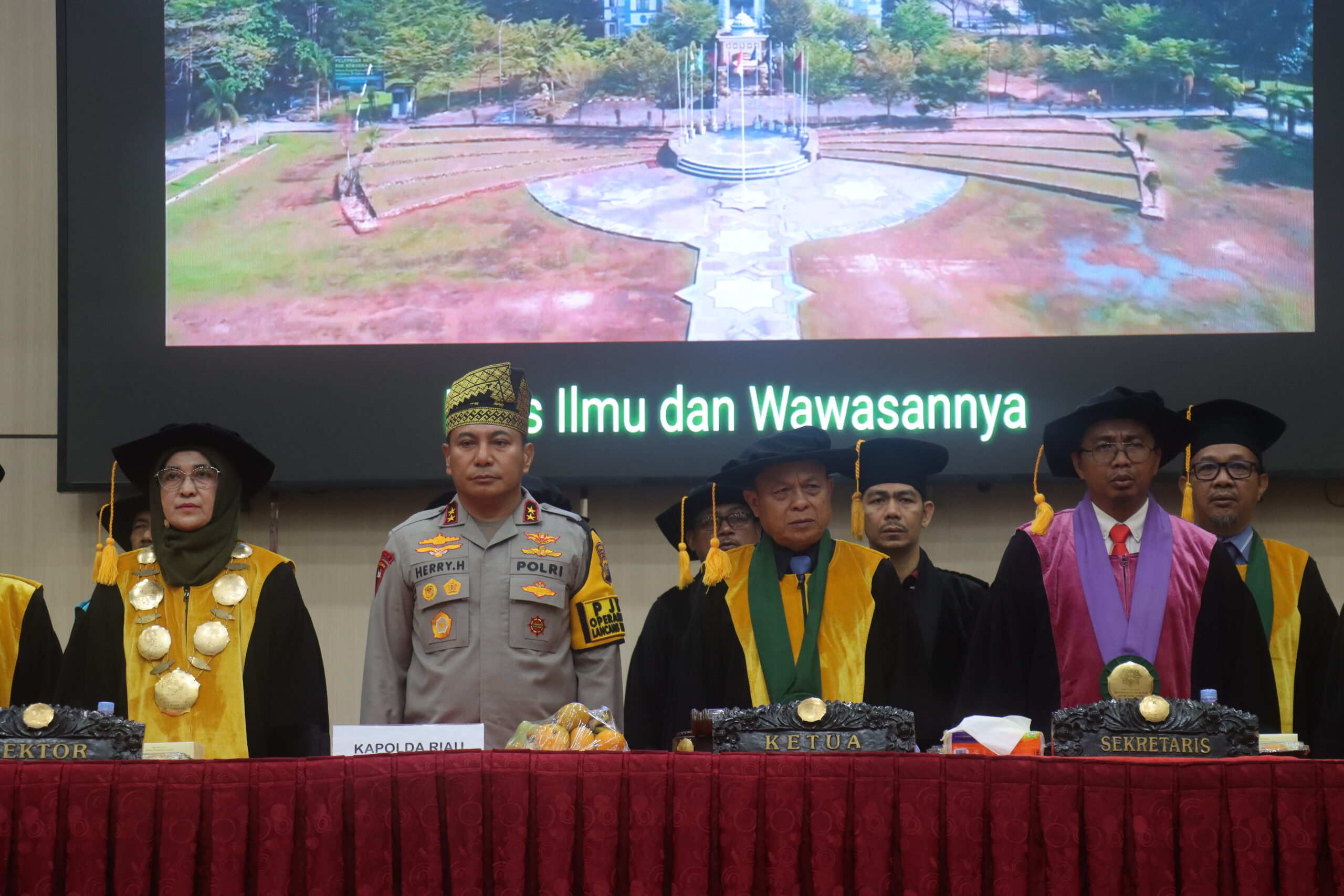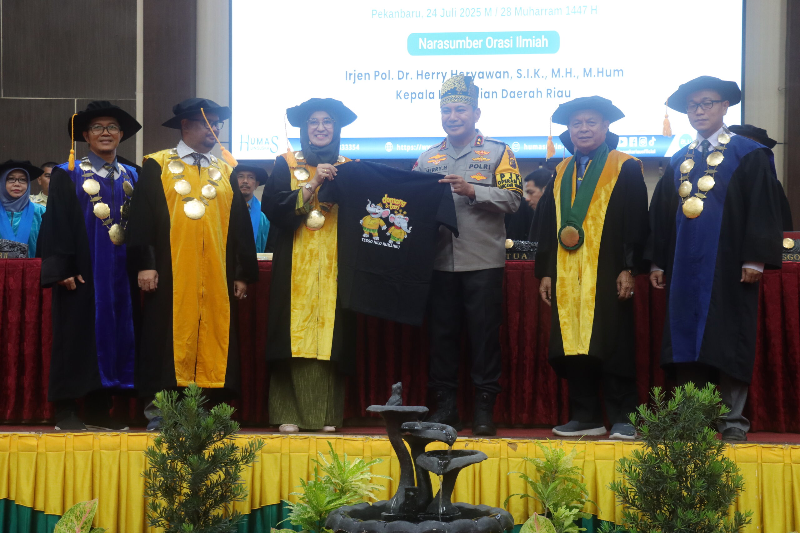 Kegiatan dilanjutkan dengan Orasi Ilmiah oleh Kapolda Riau, Irjen. Pol. Dr. Herry Heryawan, yang mengangkat tema “Etika Lingkungan dan Masa Depan Ekosipasi, Ekopolosi, Hingga Ekonomi.” Dalam orasinya, ia menyampaikan keprihatinan terhadap krisis iklim, ketimpangan ekonomi, dan kerusakan lingkungan yang mengancam masa depan umat manusia.