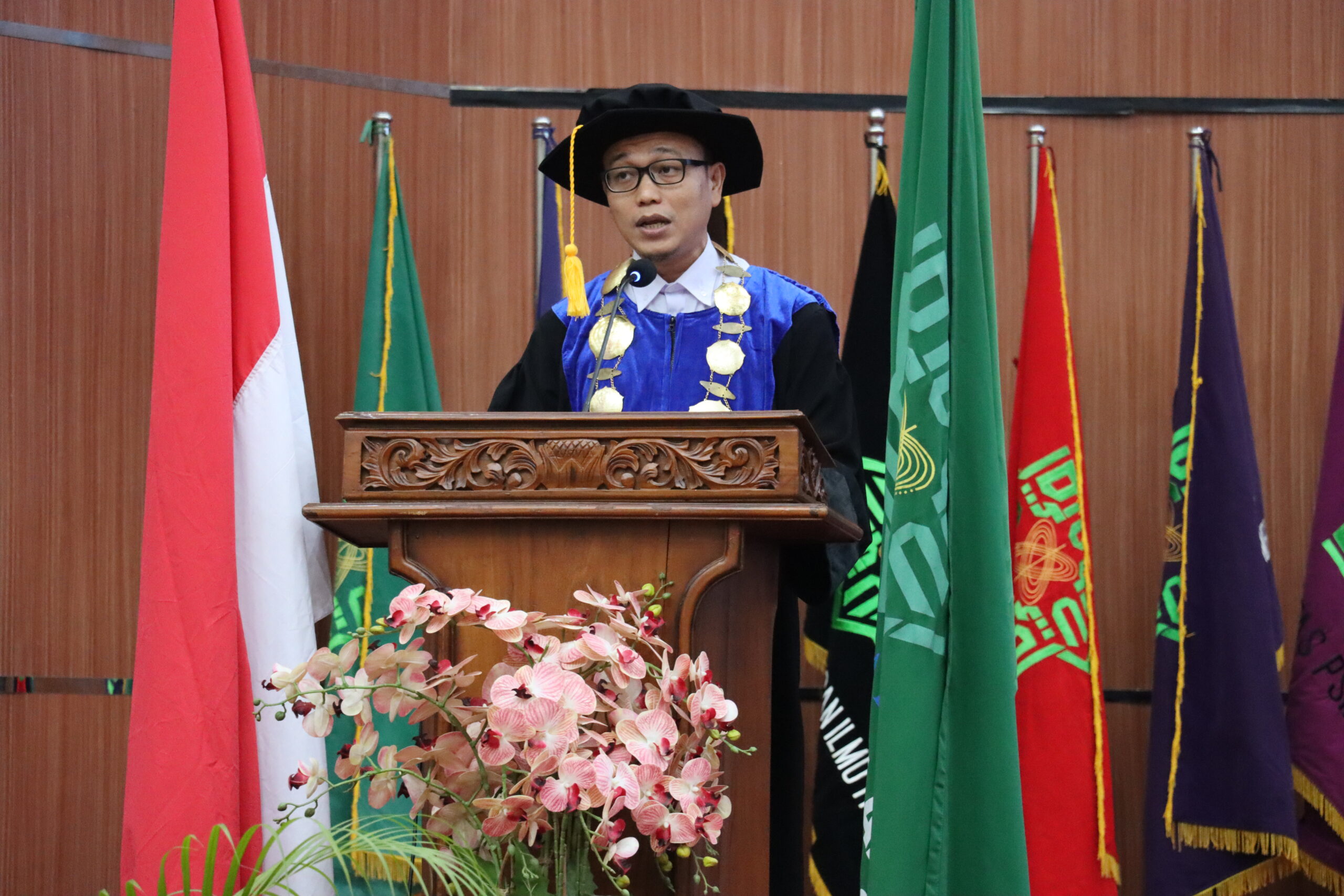 Kegiatan dilanjutkan dengan orasi ilmiah oleh Dr. Harris Simaremare, ST., MT., selaku Wakil Rektor III. Dalam orasinya yang bertajuk “Menjadi Arsitek Masa Depan: Navigasi Disrupsi dan Peran Intelektual Muslim di Era Kecerdasan Buatan (AI),” beliau menekankan pentingnya adaptasi dan inovasi bagi para lulusan di tengah dinamika teknologi yang terus berkembang.