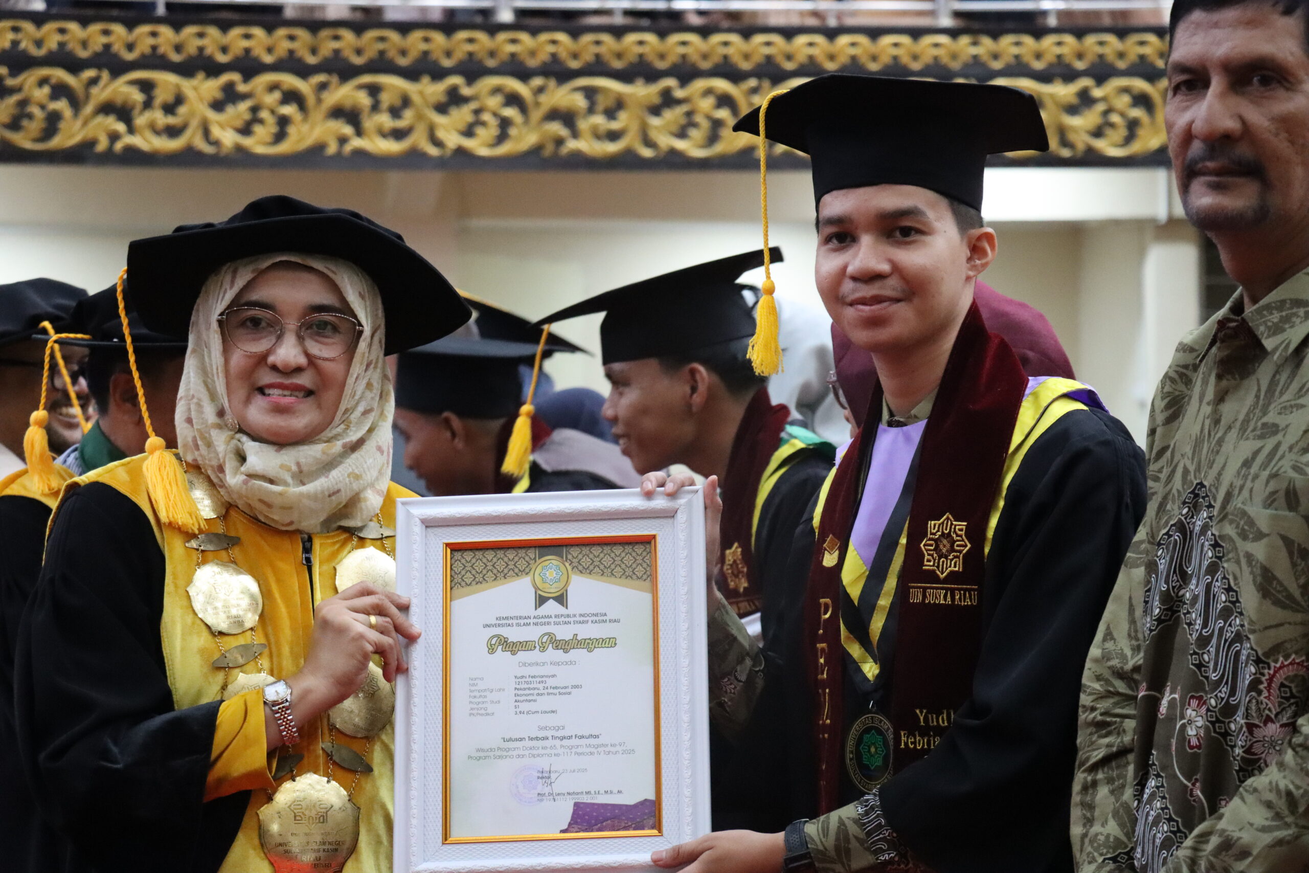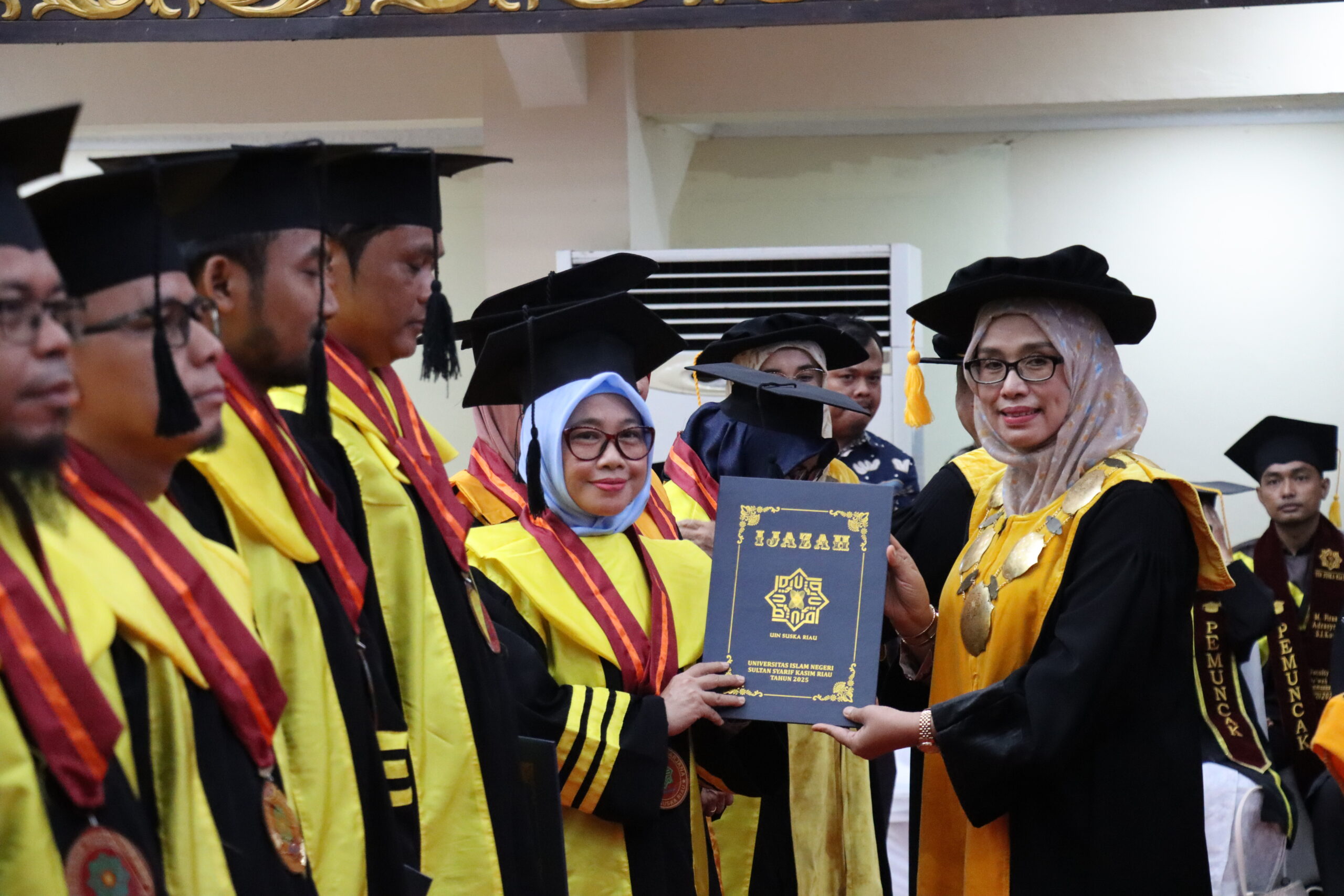 uin-suska.ac.id Bertempat di Gedung PKM (Pusat Kegiatan Mahasiswa), Universitas Islam Negeri Sultan Syarif Kasim (UIN Suska) Riau, kembali menyelenggarakan Sidang Senat Terbuka Universitas dalam rangka Wisuda Program Doktor ke-65, Program Magister ke-97, serta Program Sarjana dan Diploma ke-117. Prosesi wisuda ini berlangsung pada Rabu, 23 Juli 2025, sebagai bagian dari Periode IV Tahun Akademik 2025/2026.