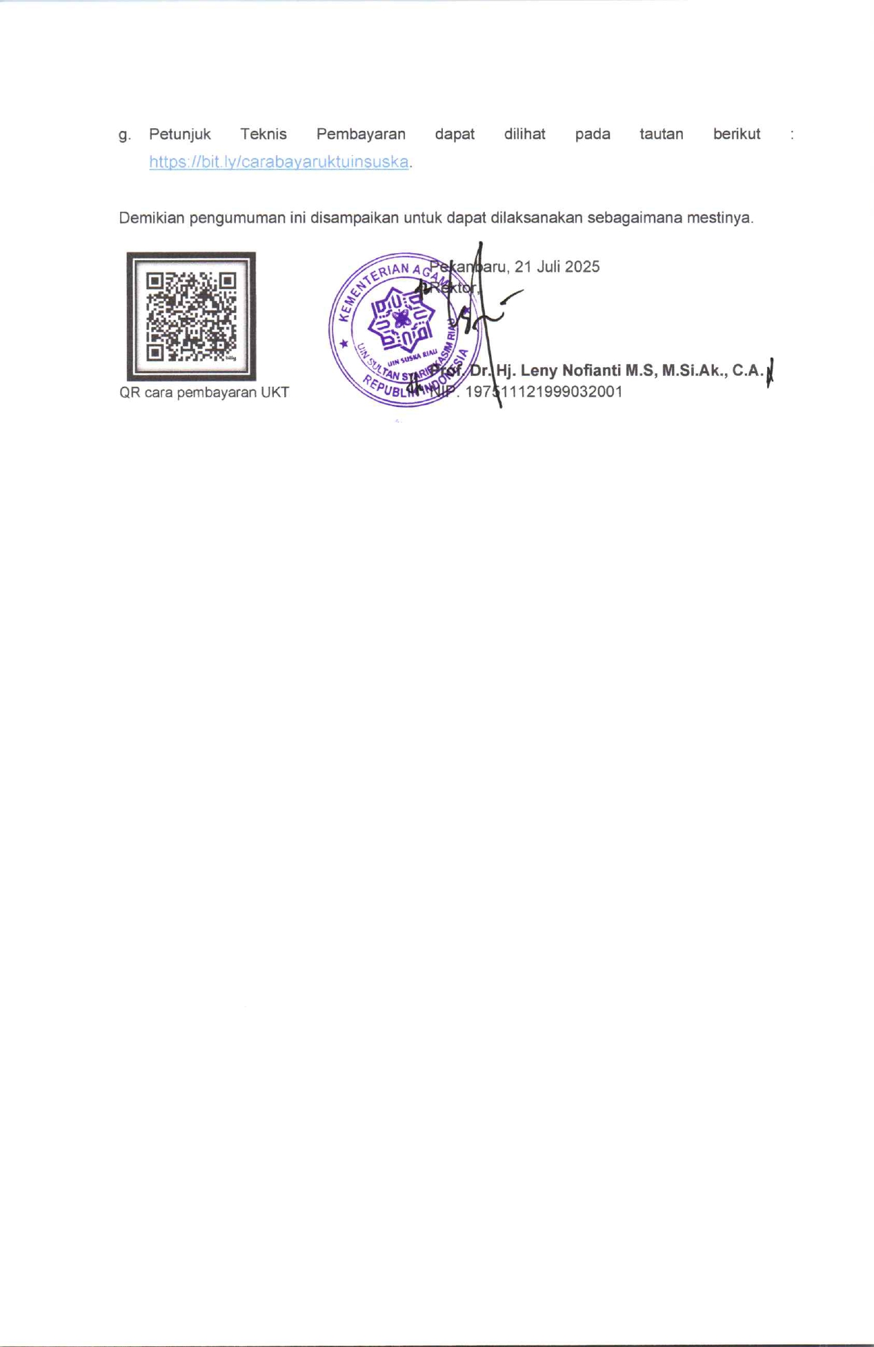 Pengumuman Jadwal dan Prosedur Penetapan Kelompok Uang Kuliah Tunggal (UKT) Mahasiswa Baru Jalur Tulis Mandiri / CAT Tahap II Universitas Islam Negeri Sultan Syarif Kasim Riau Tahun Akademik 2025/2026