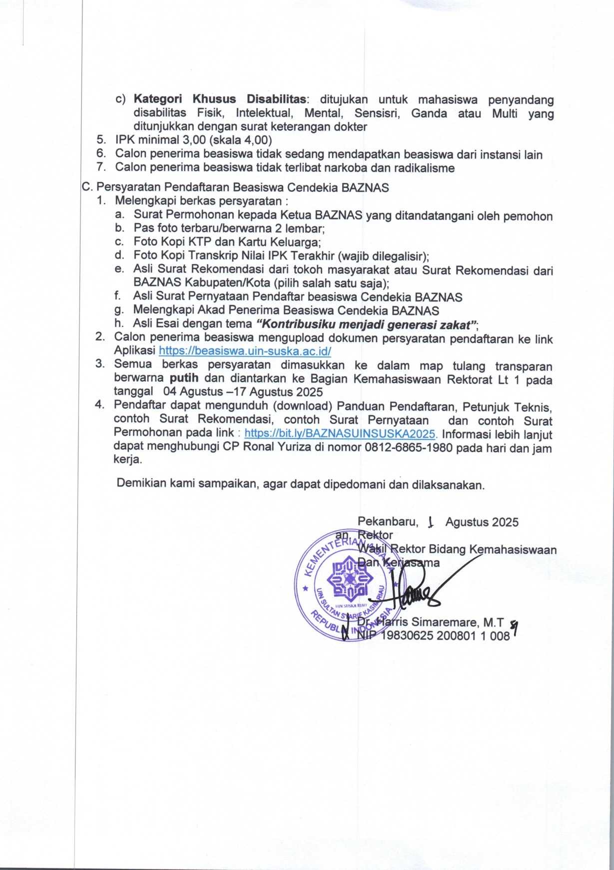 PENGUMUMAN BAZNAS UIN SUSKA 2025