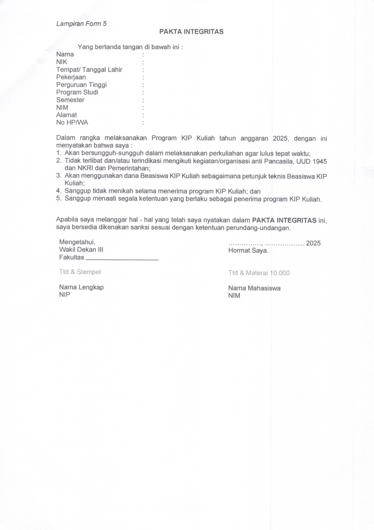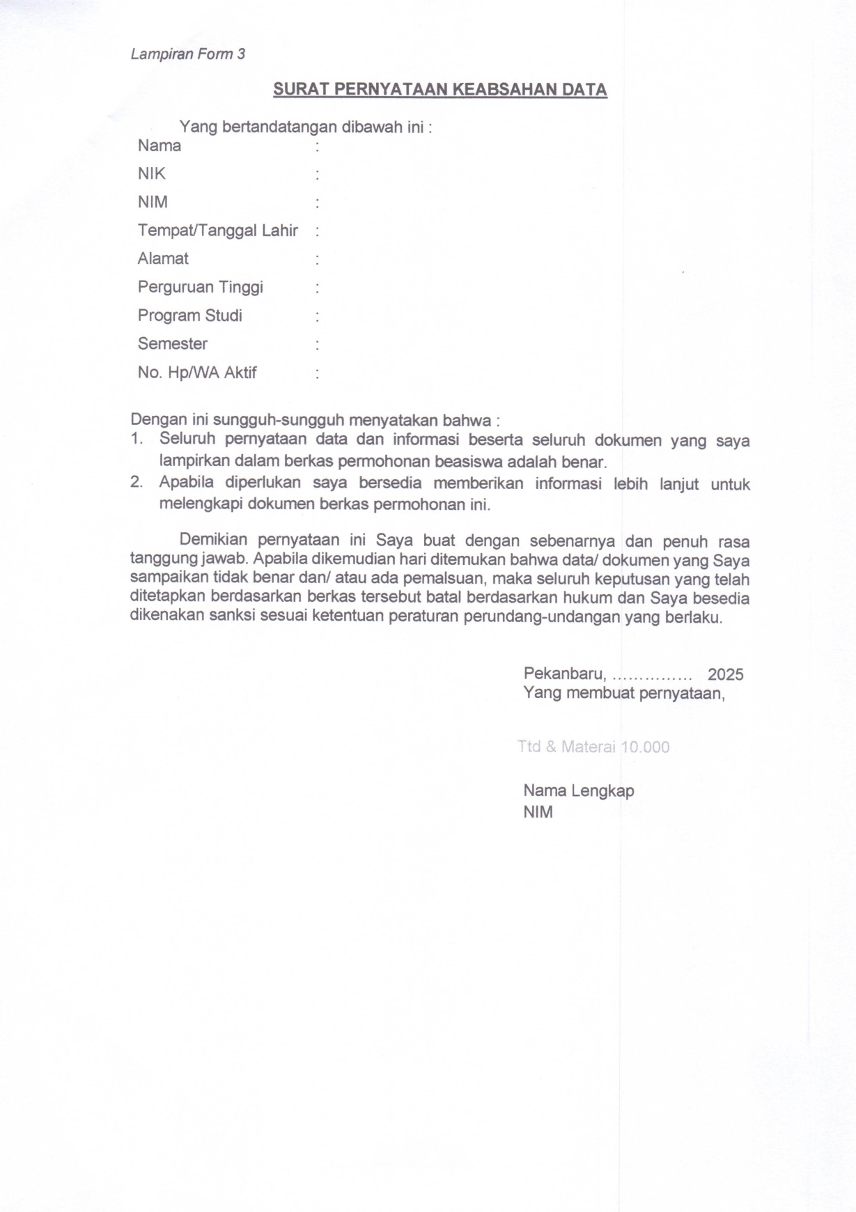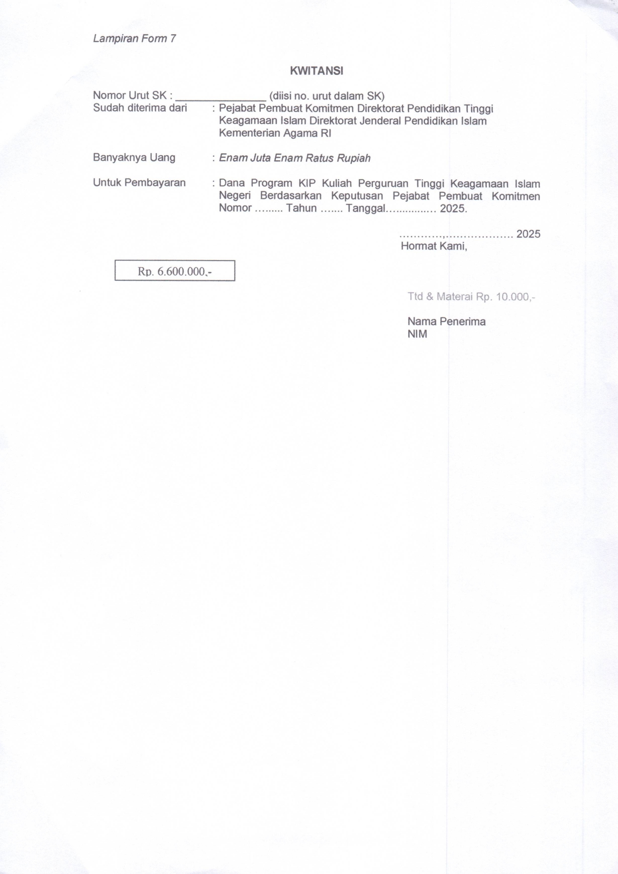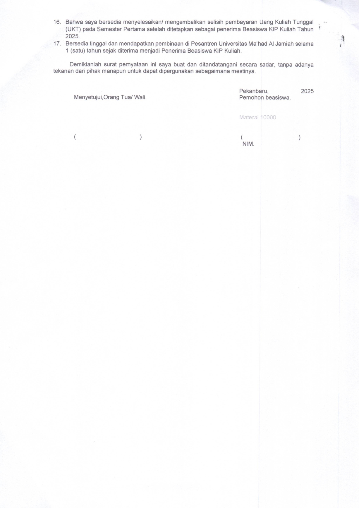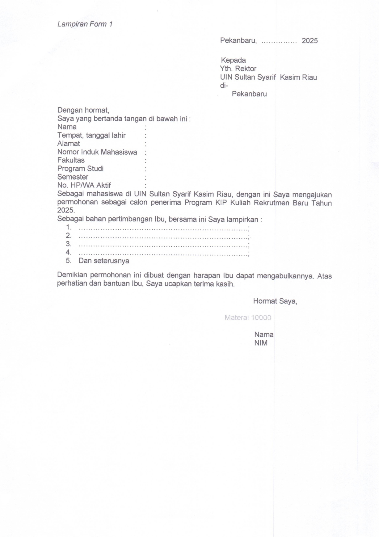 Penyampaian Berkas Program KIP Kuliah Rekrutmen Baru Kementerian Agama RI pada UIN Sultan Syarif Kasim Riau Tahun 2025