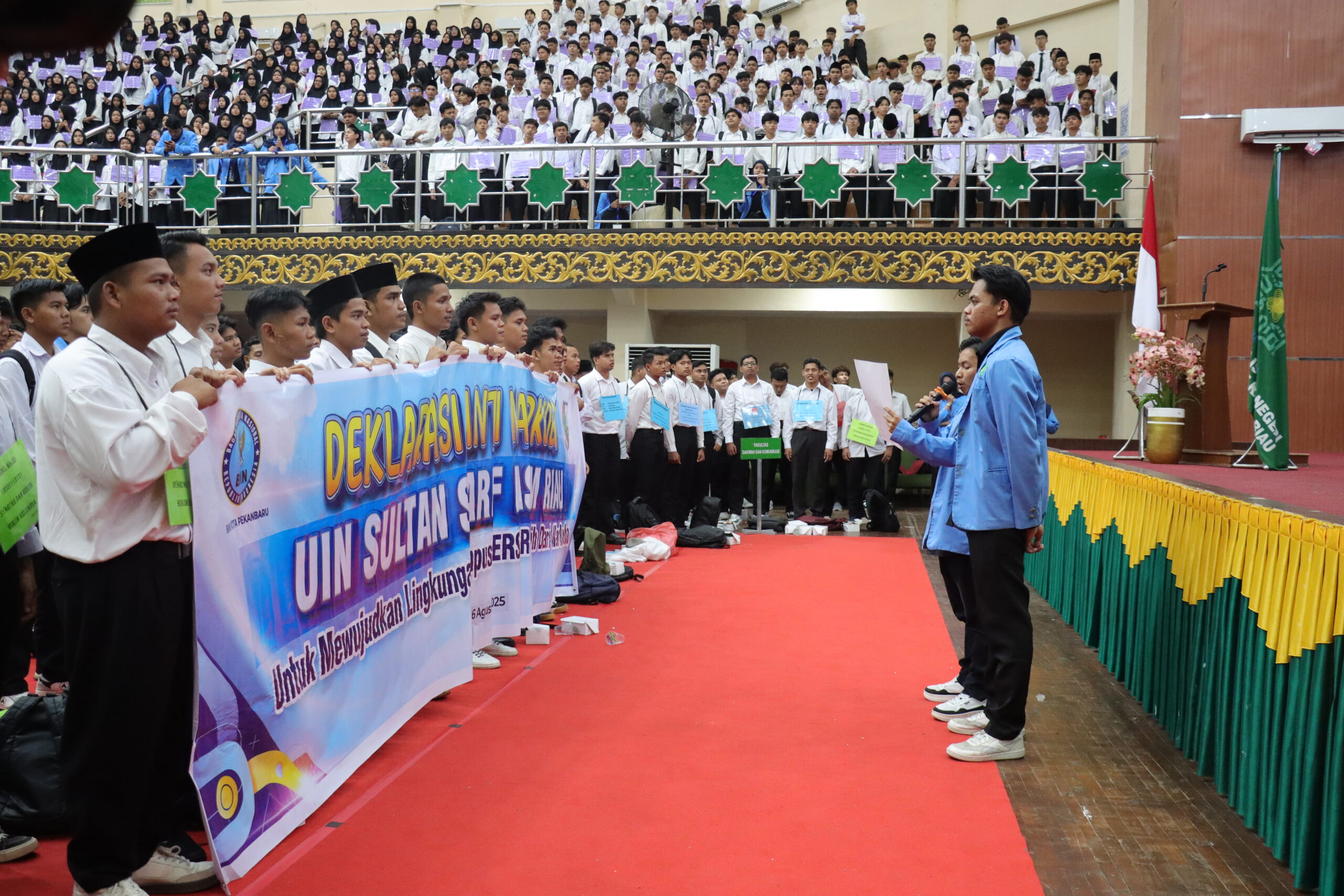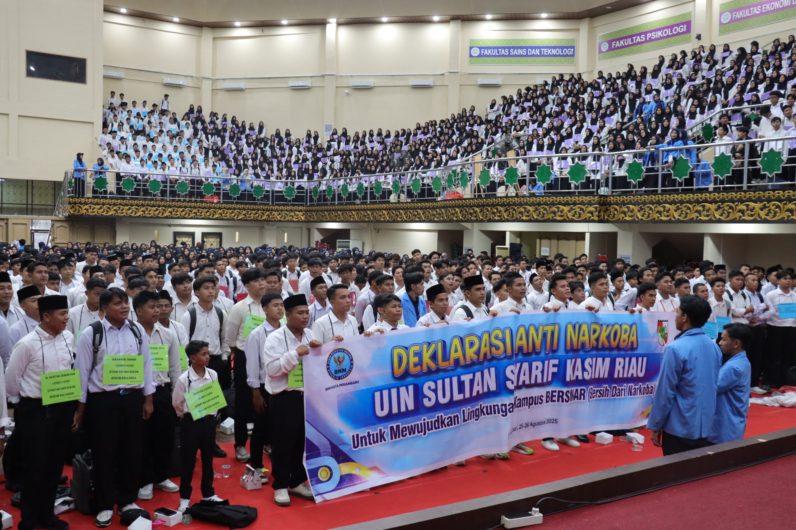 Salah satu momen paling bersejarah dalam PBAK kali ini adalah digelarnya Deklarasi Anti Narkoba, bekerja sama dengan Badan Narkotika Nasional (BNN) Kota Pekanbaru. Sebanyak 5.000 mahasiswa baru turut dalam pembacaan ikrar dan penandatanganan spanduk komitmen untuk menjauhi narkoba dan menciptakan kampus yang bersinar—bersih dari narkoba.