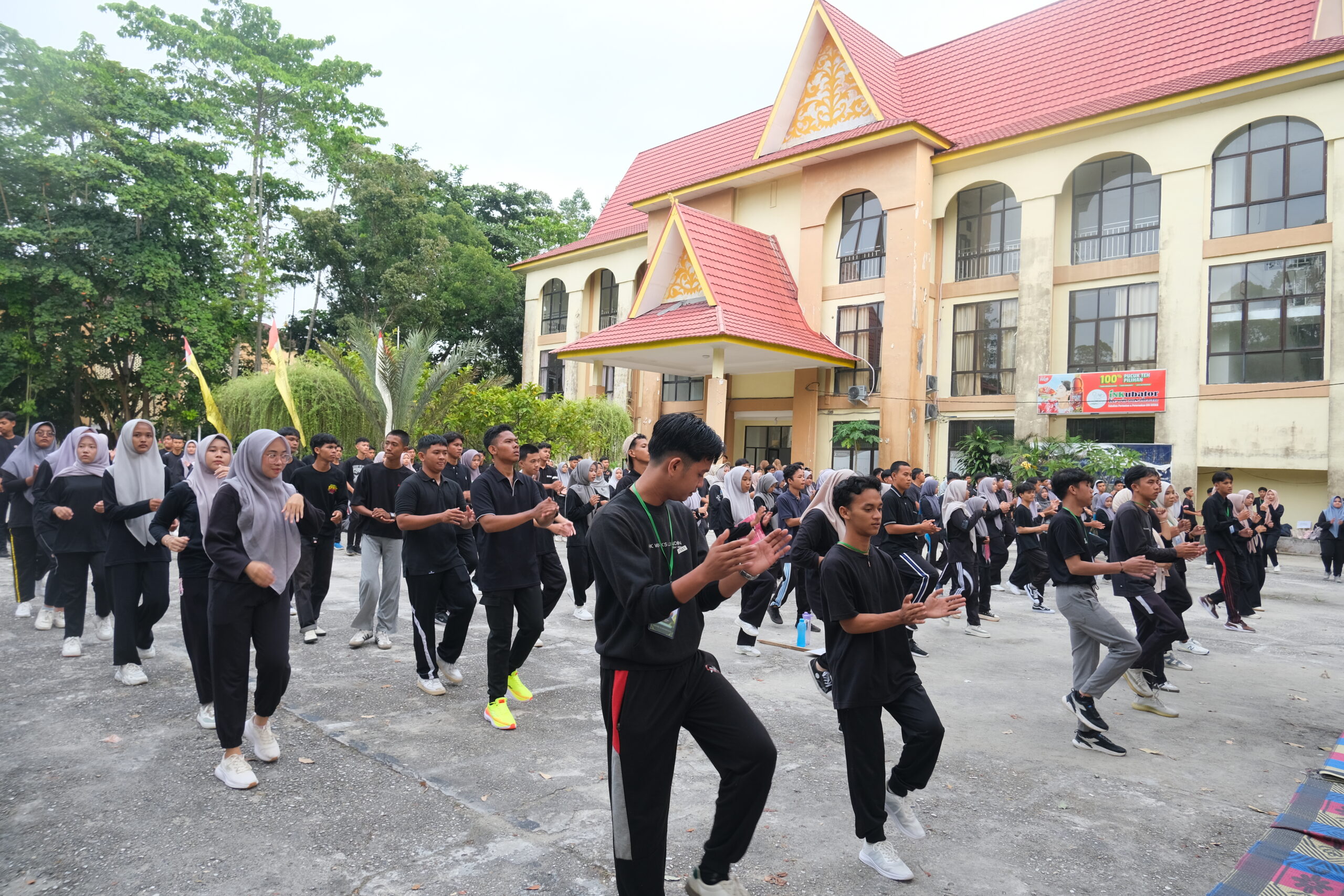 Rangkaian kegiatan dimulai dengan senam bersama, diikuti oleh seluruh mahasiswa baru. Suasana penuh semangat dan antusiasme tampak dari seluruh peserta, yang bersemangat mengikuti gerakan senam sebagai bentuk awal kegiatan yang sehat dan bugar.
