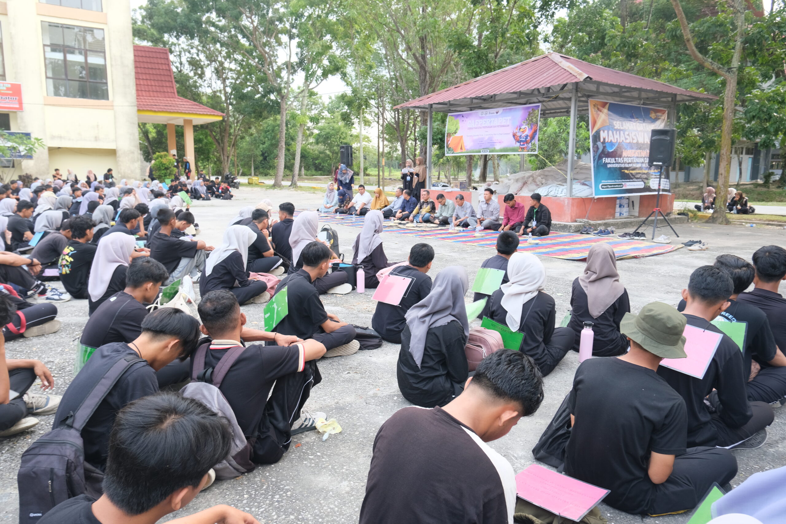 uin-suska.ac.id Fakultas Pertanian dan Peternakan menggelar kegiatan Pengenalan Budaya Akademik dan Kemahasiswaan (PBAK) yang dirangkaikan dengan kegiatan Kampanye Gizi 1000 Butir Telur, bertempat di halaman Gedung Dekanat Fakultas Pertanian dan Peternakan Kamis (28/08/2025).
