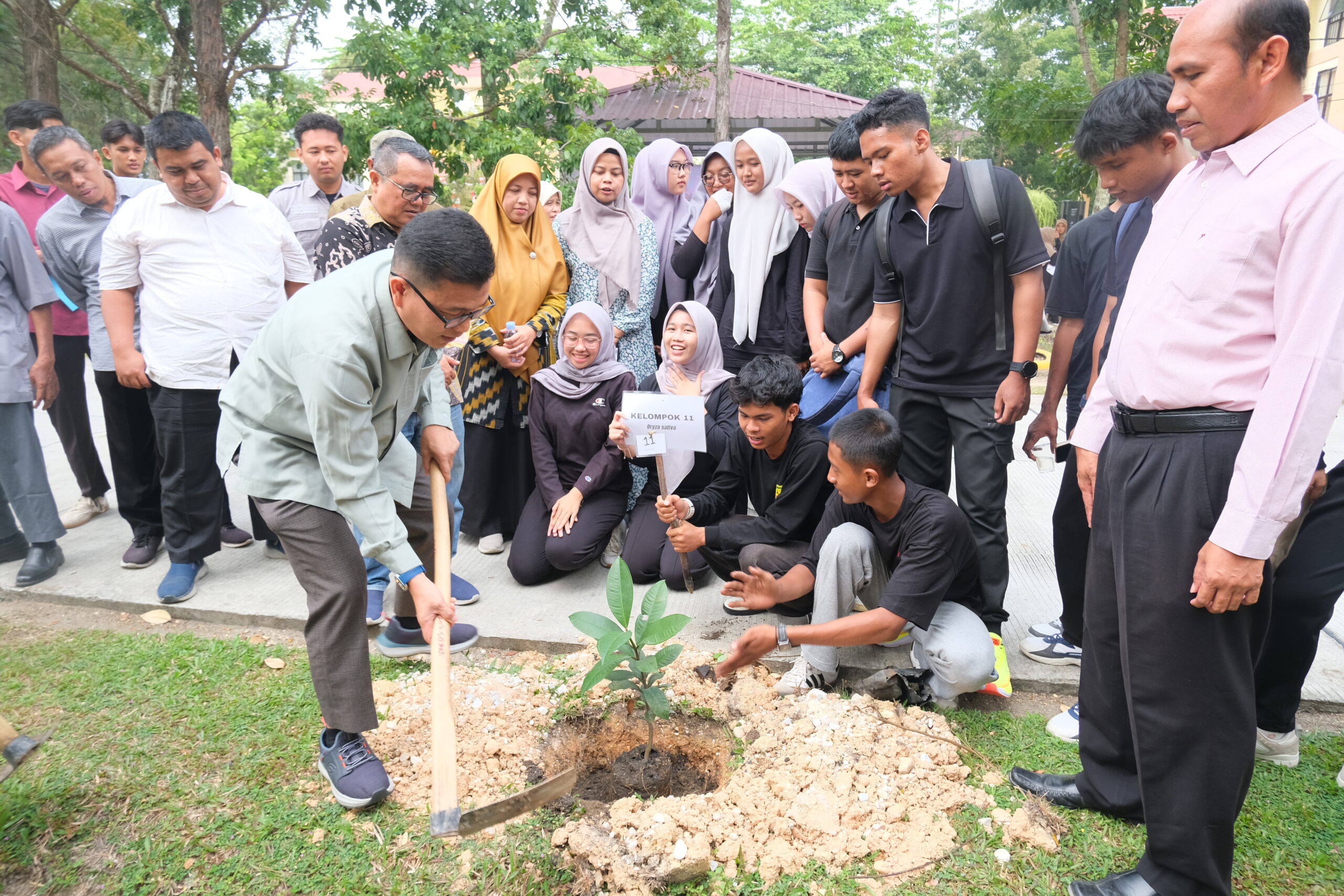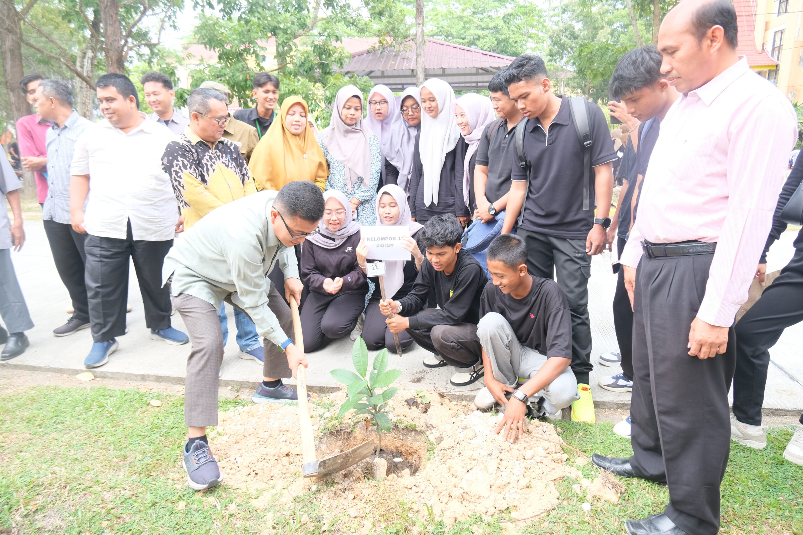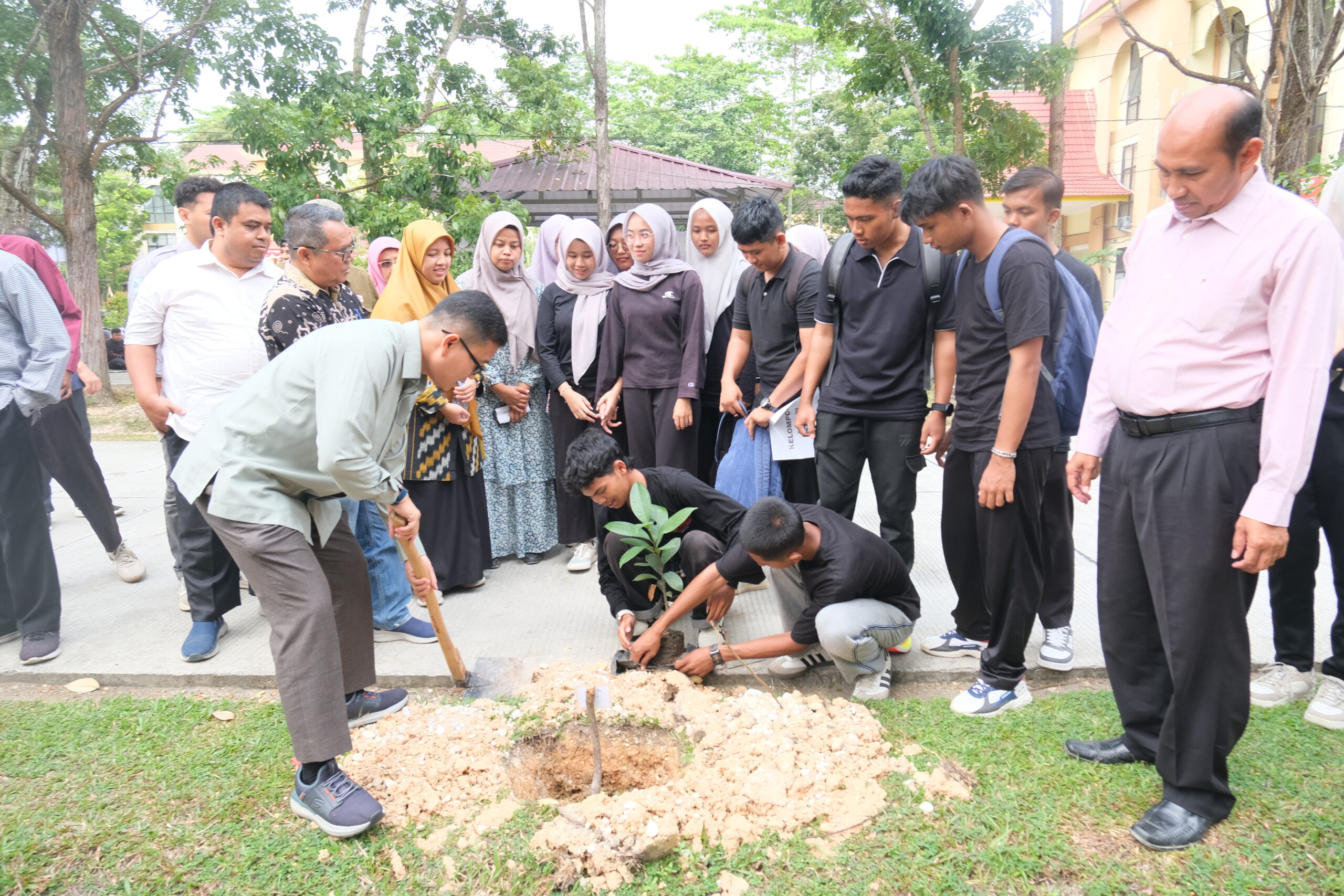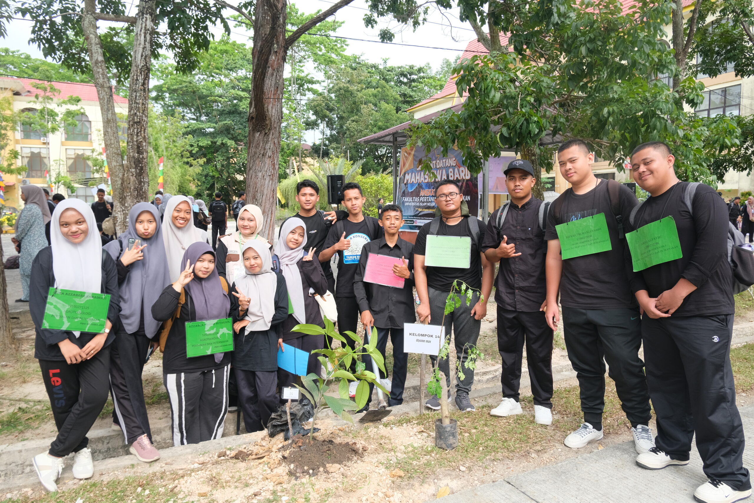 uin-suska.ac.id Fakultas Pertanian dan Peternakan (FPP) UIN Sultan Syarif Kasim Riau perkuat program Ekoteologi Kementerian Agama dalam bentuk penanaman pohon. Kegiatan yang dilaksanakan pada kamis, 28/08/2025 merupakan rentetan kegiatan Pengenalan Budaya Akademik dan Kemahasiswaan (PBAK) dan diikuti sebanyak 399 orang mahasiswa baru FPP UIN Suska Riau. Kehadiran Wakil Rektor III dan para Pimpinan FPP menambah penyemangat dan pelengkap kegiatan PBAK dan penanaman pohon.