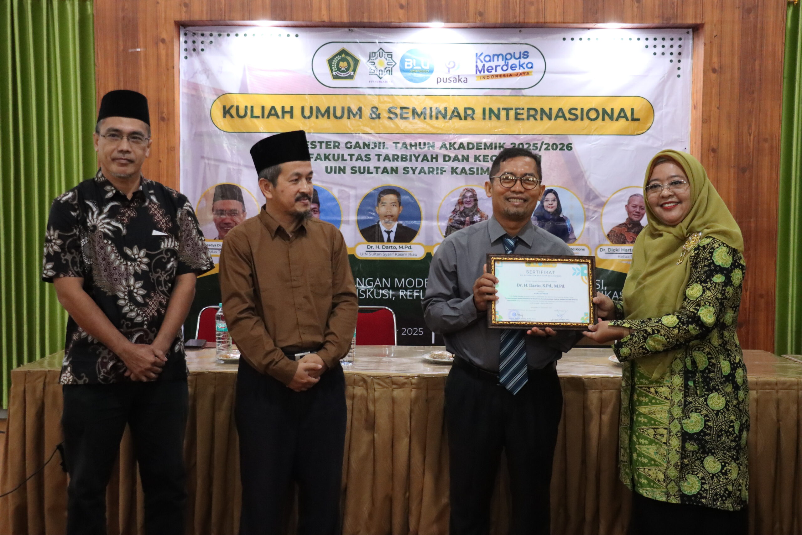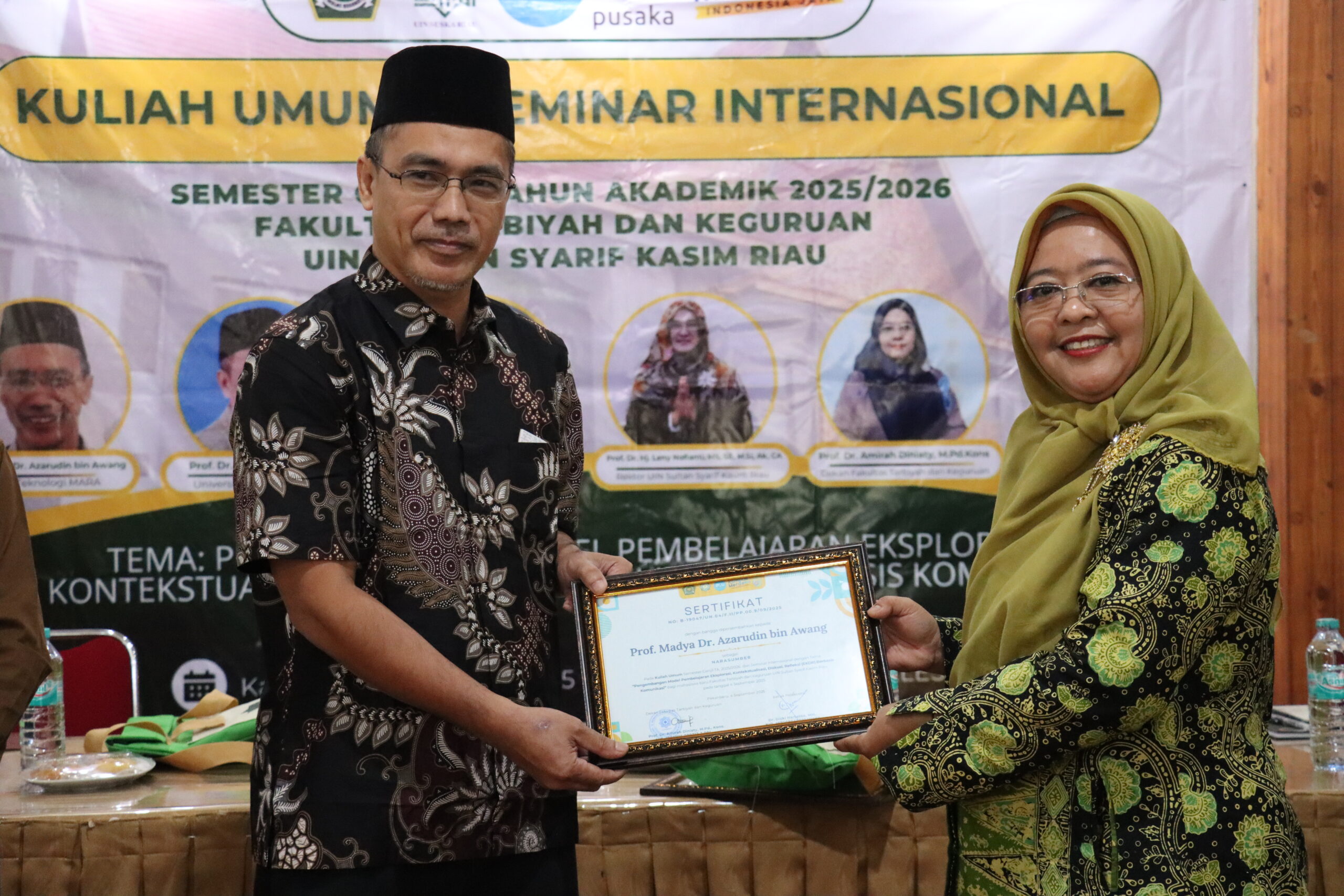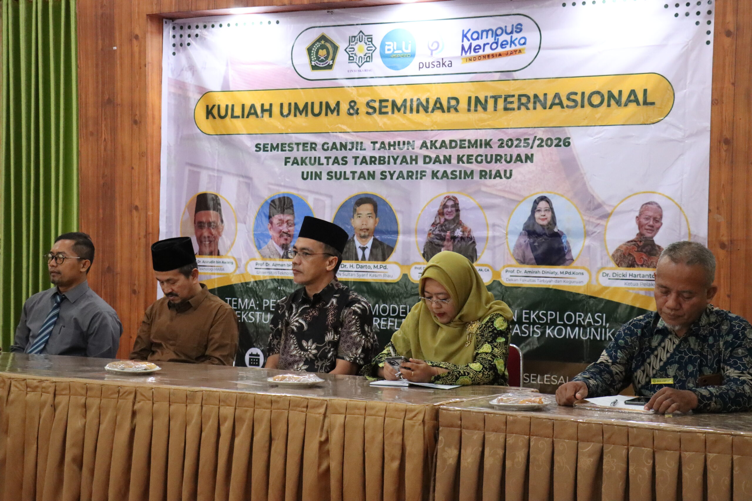 Kuliah Umum dan Seminar Internasional ini mengusung tema:”Pengembangan Model Pembelajaran Eksplorasi, Kontekstualisasi, Diskusi, Refleksi (EKDR) Berbasis Komunikasi.” Kegiatan ini menghadirkan para narasumber berkompeten dari dalam dan luar negeri, antara lain: Dr. Darto, M.Pd. – Dosen dan peneliti UIN Suska Riau, Prof. Azman Bin Che Mat – Profesor dari Universiti Teknologi MARA (UiTM), Malaysia, dan Prof. Madya Dr. Azarudin bin Awang – Akademisi dari Universiti Teknologi MARA (UiTM), Malaysia.