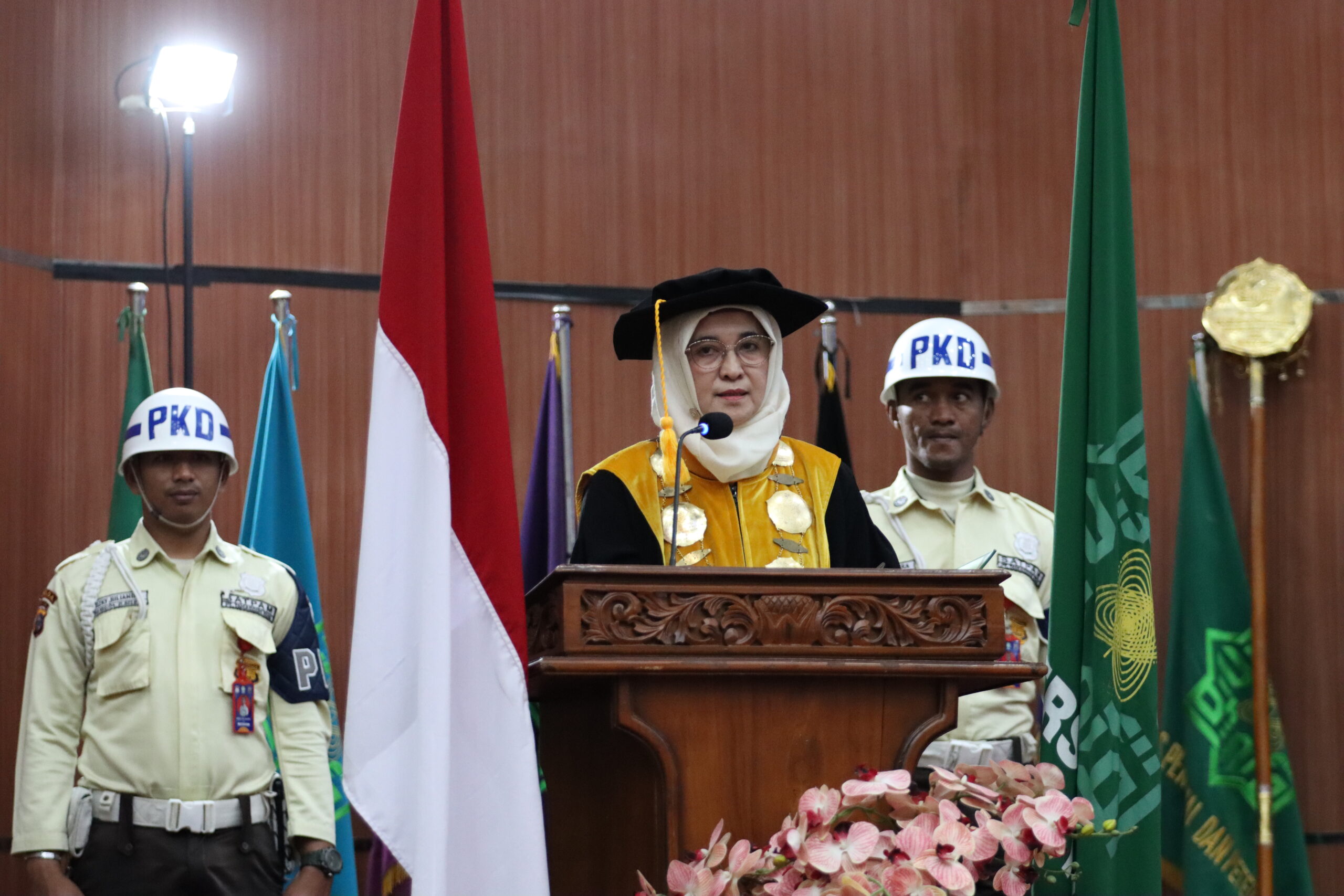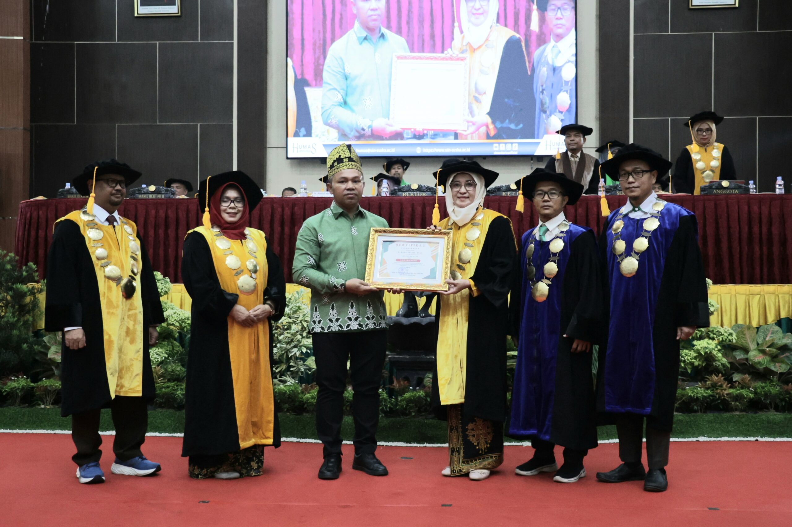“Hari ini adalah momentum yang membanggakan sekaligus menggetarkan hati. Di balik toga yang kalian kenakan, ada puluhan doa, perjuangan, dan pengorbanan yang tidak sedikit,” ungkap Gubernur Wahid.