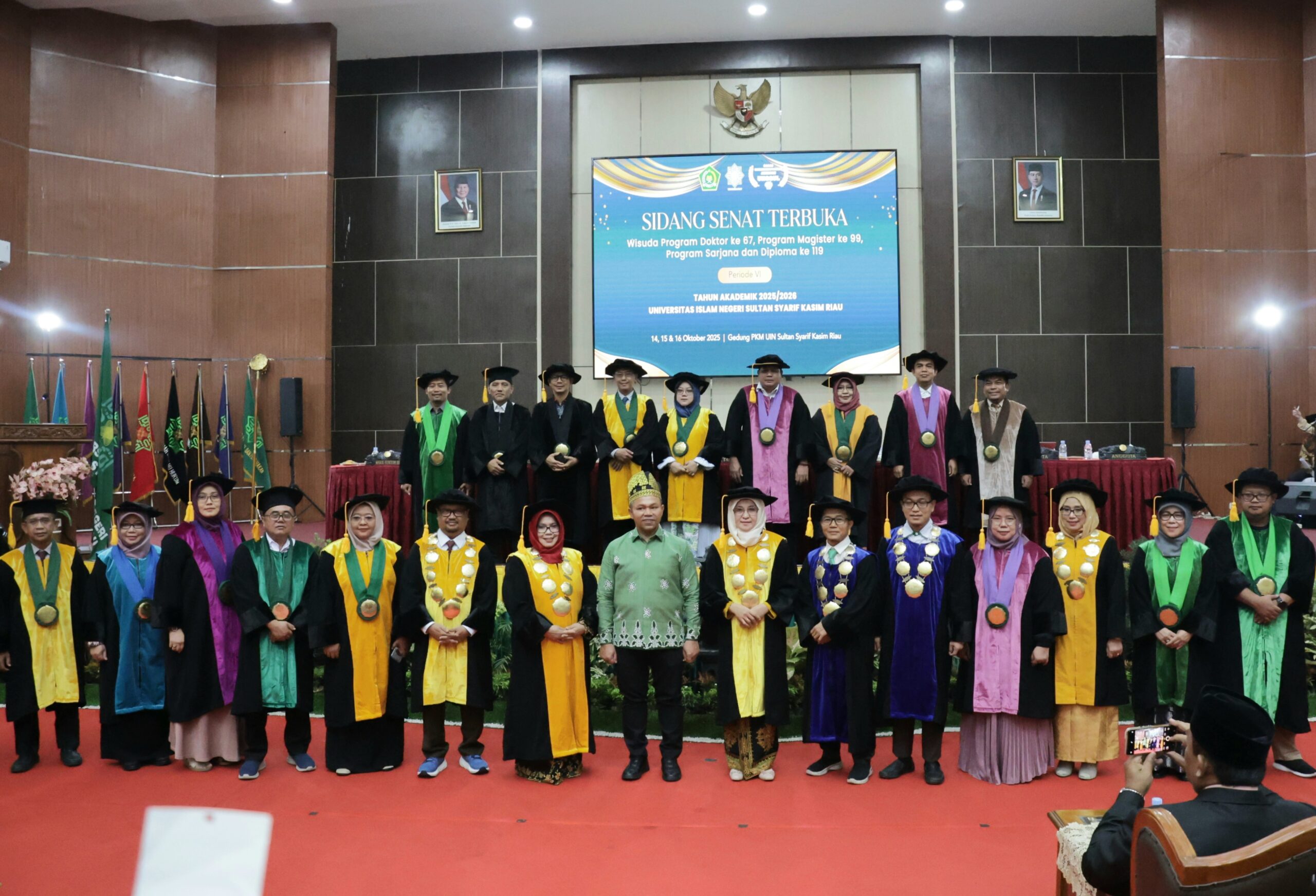 uin-suska.ac.id Universitas Islam Negeri (UIN) Sultan Syarif Kasim Riau menggelar Sidang Senat Terbuka Wisuda Program Doktor ke-67, Program Magister ke-99, serta Program Sarjana dan Diploma ke-119, Selasa (14 Oktober 2025) di Pusat Kegiatan Mahasiswa (PKM) kampus UIN Suska Riau Tahun Akademik 2025/2025.