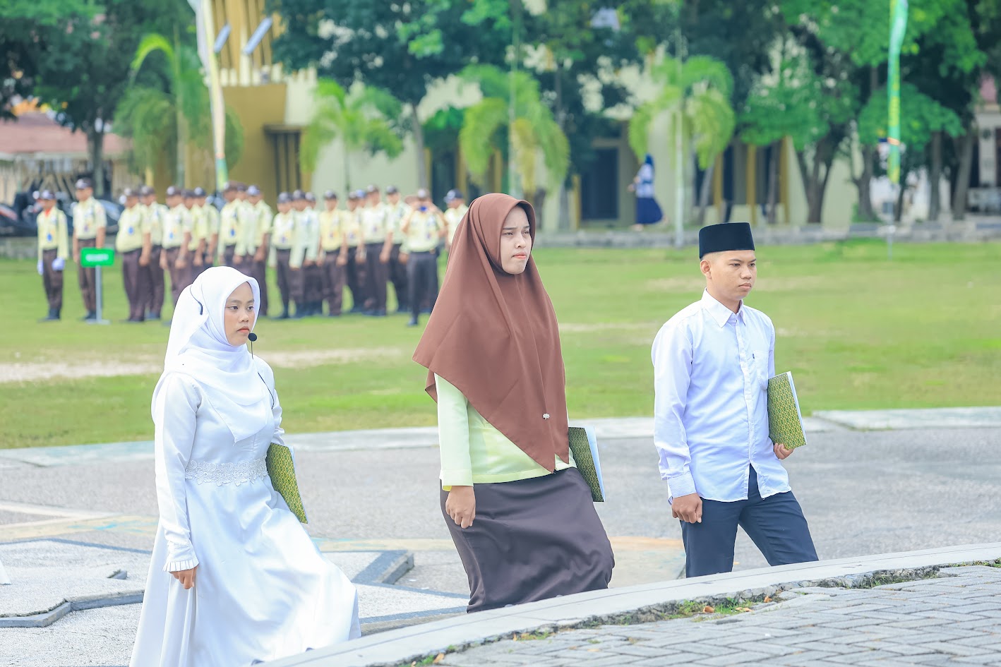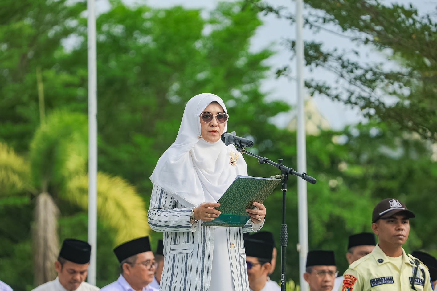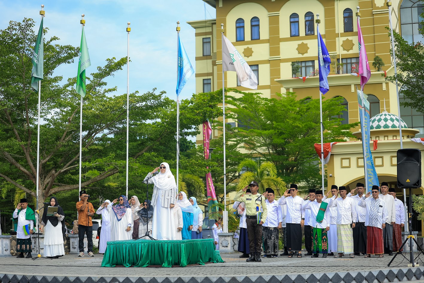 Upacara ini merupakan bagian dari rangkaian peringatan 10 tahun penetapan Hari Santri Nasional sejak 2015, dengan tema “Mengawal Indonesia Merdeka, Menuju Peradaban Dunia.” Sebagai inspektur upacara, Prof. Dr. Hj. Leni Nofianti MS, SE., M.Si, Ak, Rektor UIN Suska Riau, memimpin jalannya upacara dan membacakan amanat Menteri Agama Republik Indonesia, Prof. Dr. KH. Nasaruddin Umar, MA.