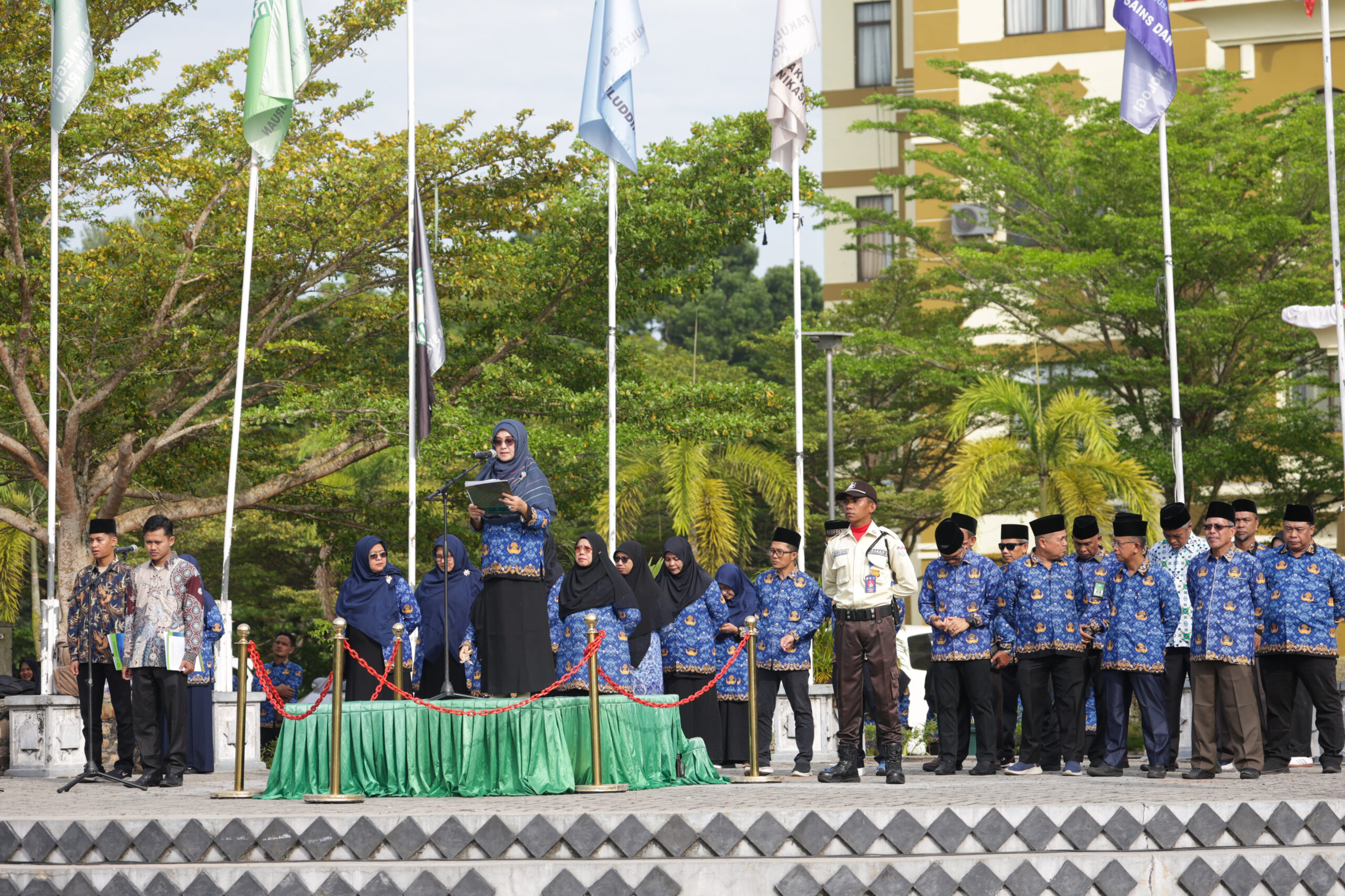 uin-suska.ac.id Universitas Islam Negeri Sultan Syarif Kasim (UIN Suska) Riau menggelar upacara peringatan Hari Sumpah Pemuda ke-97 di halaman Gedung Rektorat pada Selasa (28/10/2025). Kegiatan ini diikuti oleh seluruh pimpinan universitas, dosen, tenaga kependidikan, serta mahasiswa dari berbagai fakultas.