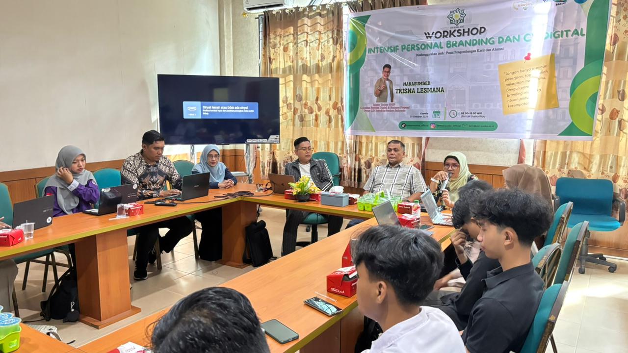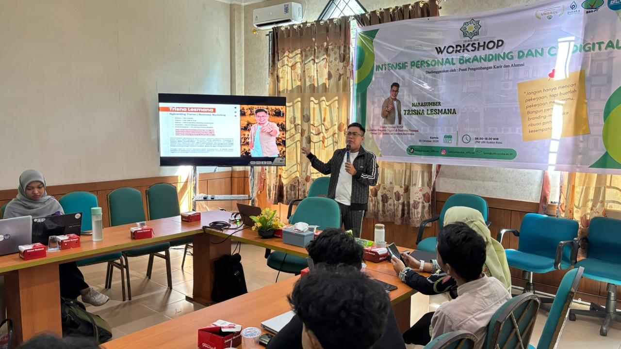 uin-suska.ac.id Pusat Pengembangan Karir dan Alumni Universitas Islam Negeri Sultan Syarif Kasim Riau menyelenggarakan Workshop Intensif Personal Branding dan CV Digital pada Kamis, 30 Oktober 2025, bertempat di Gedung Lembaga Pengabdian kepada Masyarakat (LPM) UIN Suska Riau. Kegiatan ini diikuti oleh sebanyak 55 mahasiswa dari berbagai fakultas di lingkungan UIN Suska Riau.