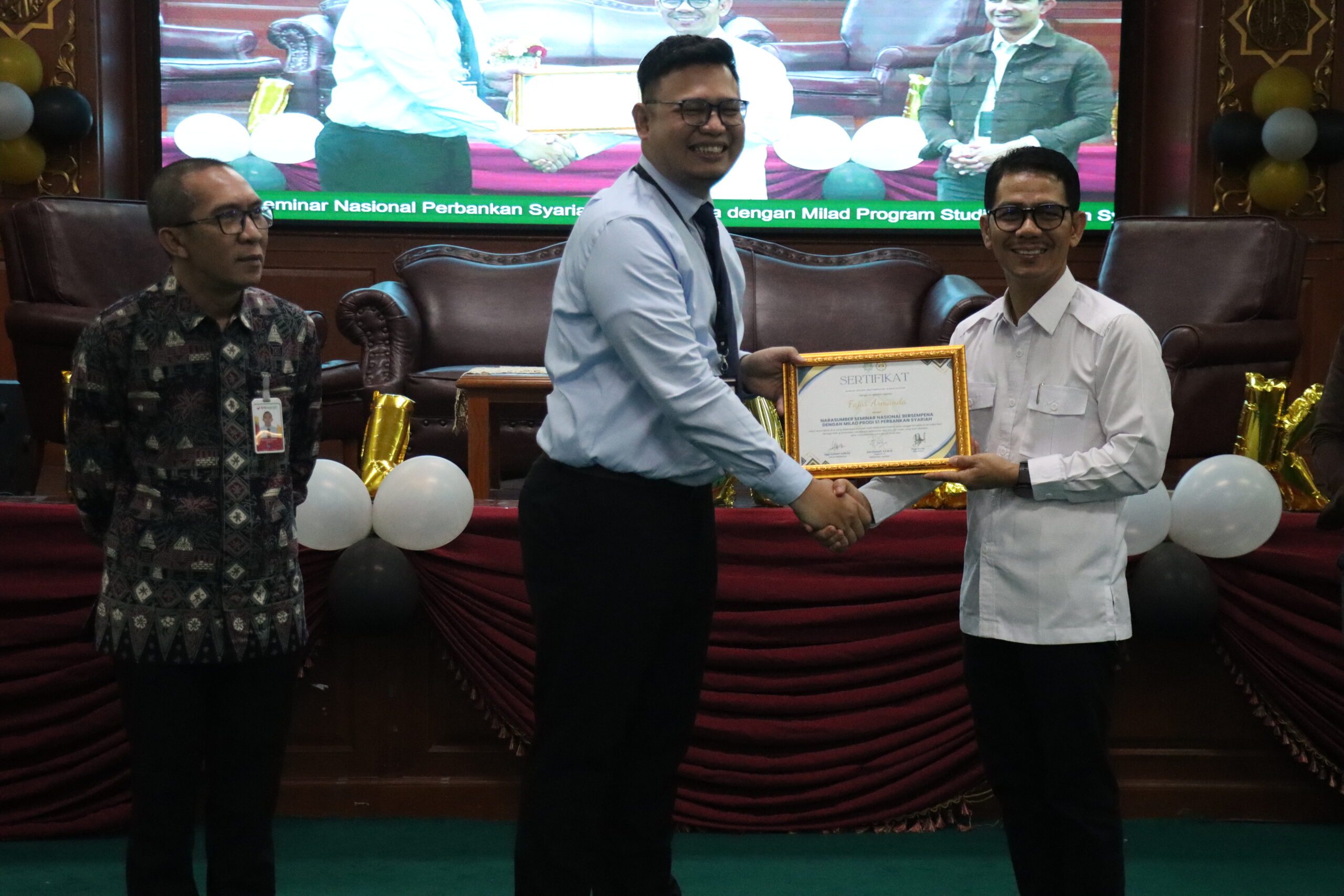 Sementara itu, Ketua Jurusan Perbankan Syariah, Darnila Wati, S.E., M.Si., menyampaikan bahwa seminar nasional ini merupakan bagian dari komitmen jurusan dalam memperluas wawasan mahasiswa serta memperkuat hubungan antara dunia akademik dan industri perbankan.