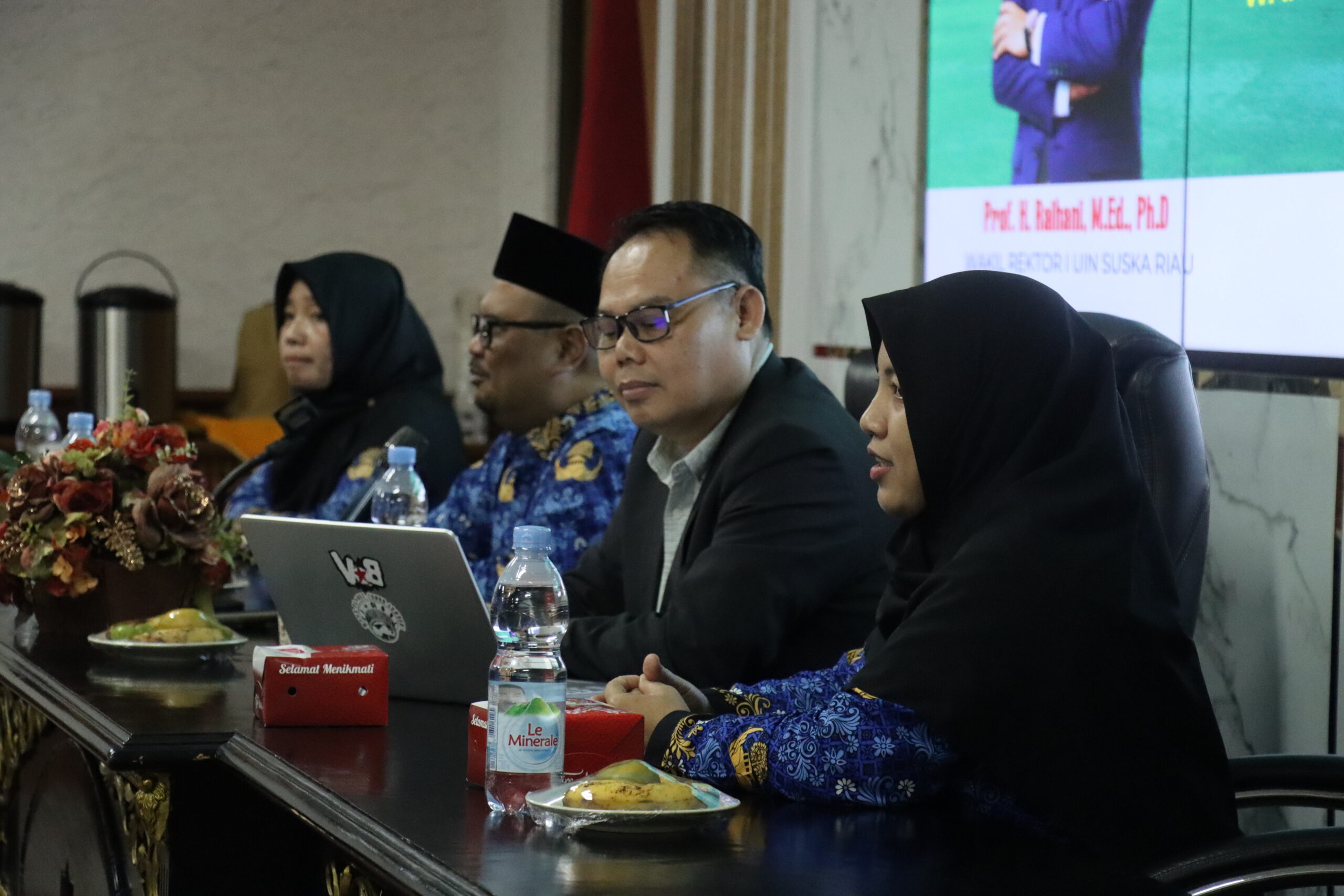 uin-suska.ac.id Universitas Islam Negeri Sultan Syarif Kasim (UIN Suska) Riau kembali menunjukkan komitmennya dalam mengembangkan integrasi keilmuan Islam dan sains melalui kegiatan Seminar Insersi Ekoteologi dalam Kurikulum di UIN Suska Riau, Senin (10/11/2025). Kegiatan ini berlangsung di Ruang Rapat Senat, Lt.5, dengan menghadirkan narasumber, Asep Muhamad Iqbal, MA., Ph.D., dari Fakultas Ilmu Sosial dan Ilmu Politik UIN Sunan Gunung Djati Bandung. Seminar ini dihadiri oleh para Dekan, Wakil Dekan Bidang Akademik dan Pengembangan Lembaga, ketua program studi, serta dosen.