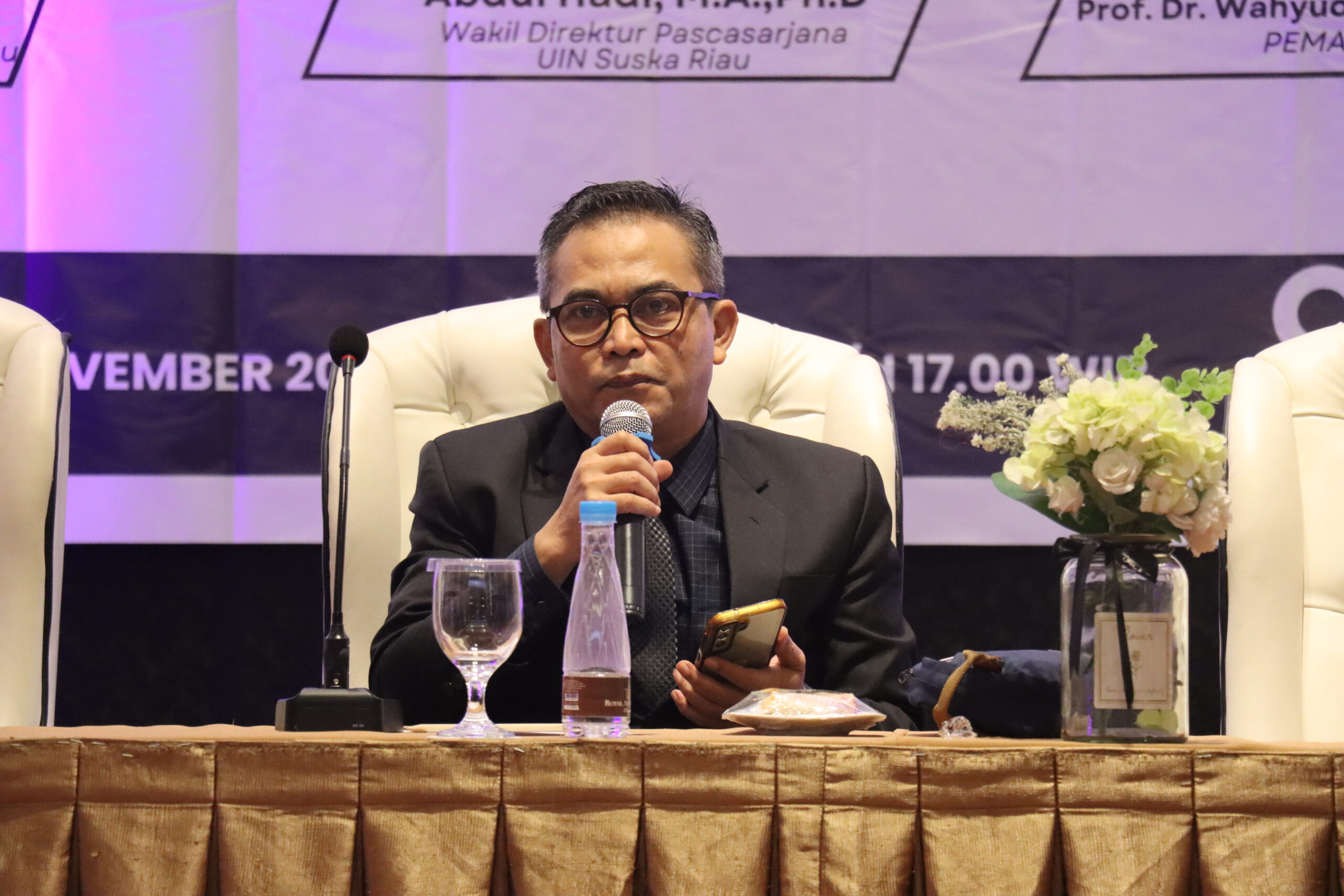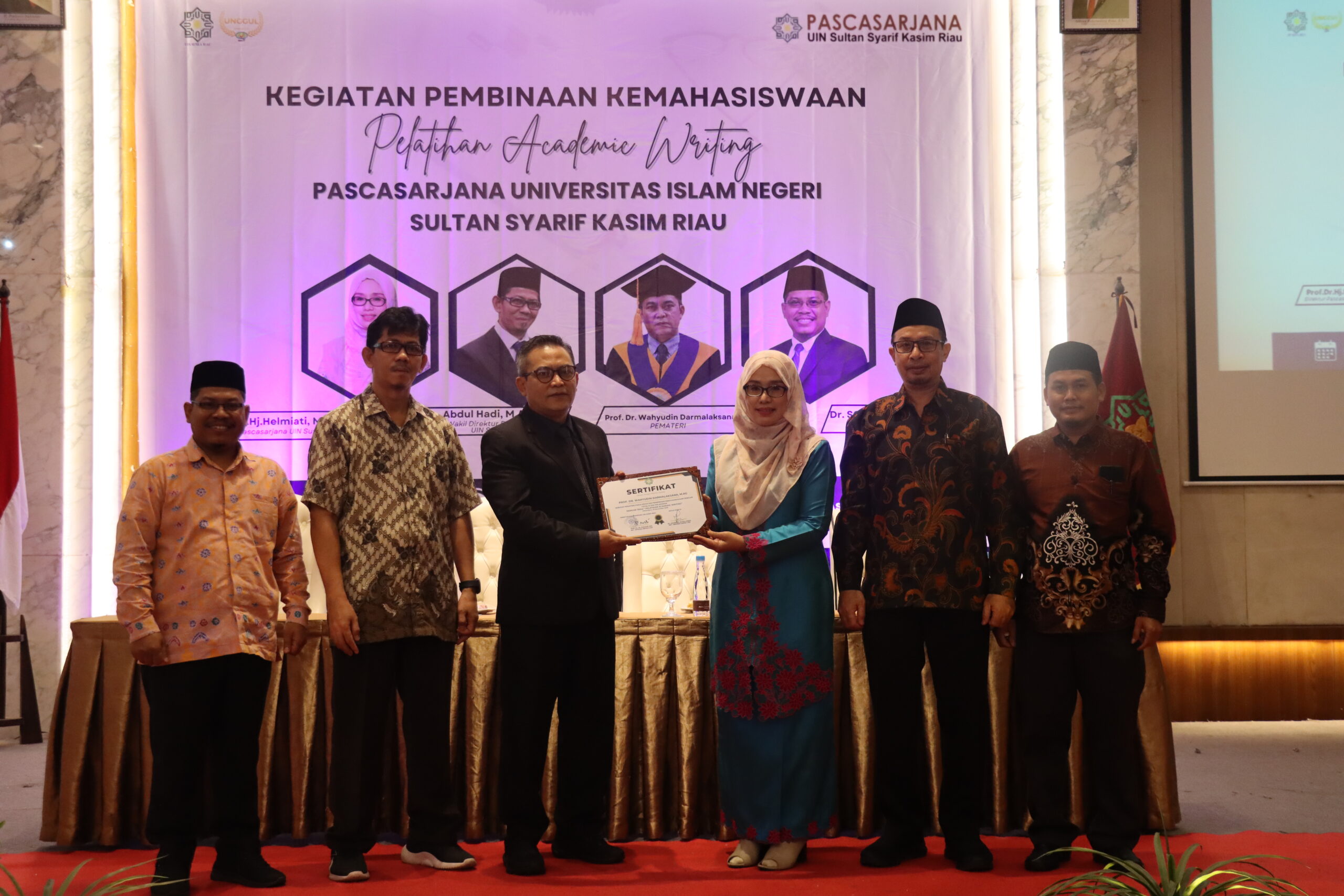 Hadir dalam acara tersebut adalah Direktur Pascasarjana UIN Suska Riau, Prof. Dr. Hj. Helmiati, M.Ag, serta Wakil Direktur, Abdul Hadi, MA., Ph.D. Pelatihan ini menghadirkan narasumber utama, Prof. Dr. Wahyudin Darmalaksana, M.Ag, Guru Besar UIN Sunan Gunung Djati Bandung, yang dikenal luas sebagai pakar penulisan akademik dan publikasi ilmiah.