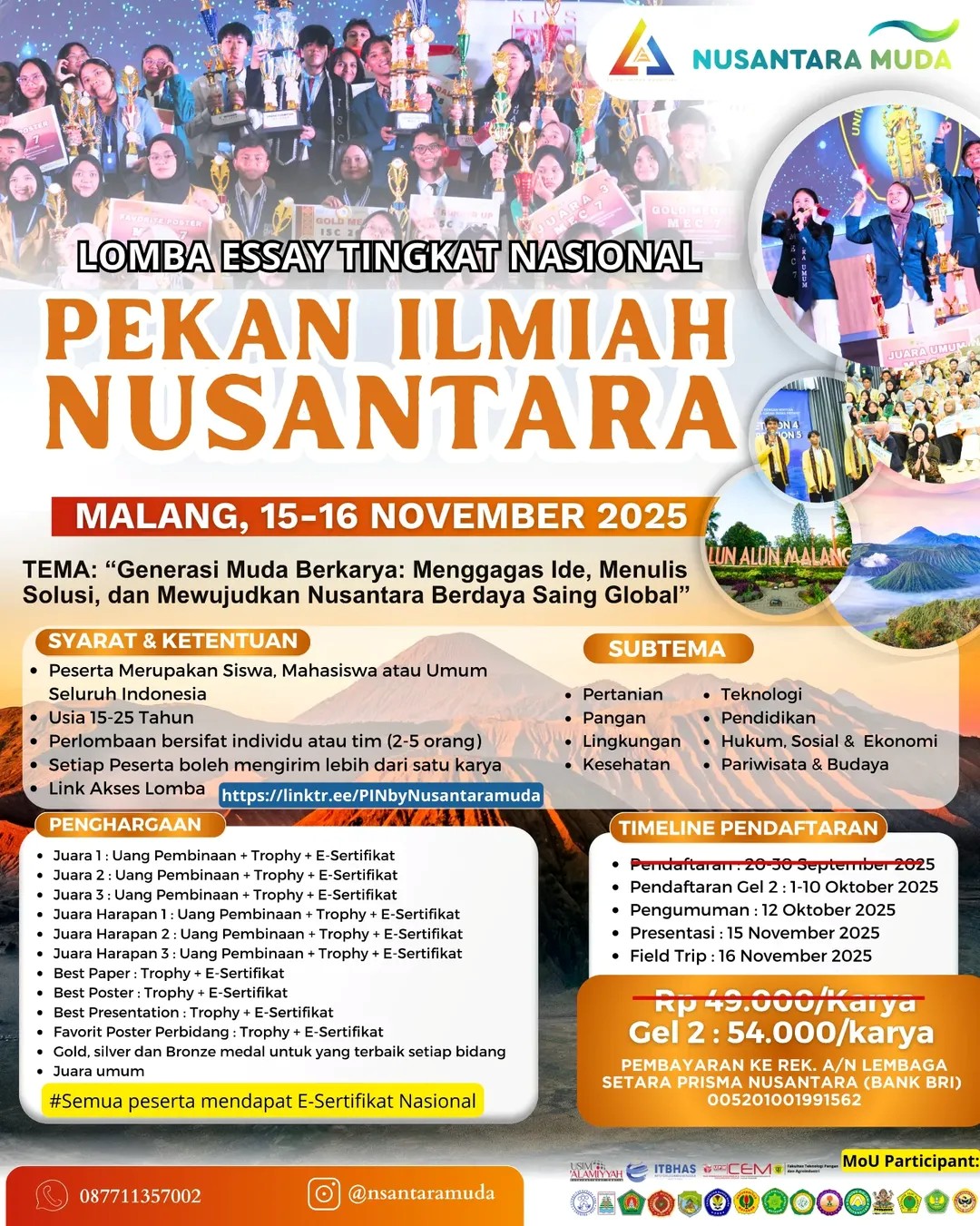 uin-suska.ac.id Mahasiswa Fakultas Pertanian dan Peternakan UIN Sultan Syarif Kasim Riau kembali meraih prestasi membanggakan di tingkat nasional. Rian Efendi, mahasiswa Program Studi Peternakan, bersama timnya berhasil meraih 1 Silver Medal dan 2 Bronze Medal pada ajang Lomba Essay Tingkat Nasional “Pekan Ilmiah Nusantara 2025” yang diselenggarakan oleh Nusantara Muda di Kota Malang, pada 15-16 November 2025.