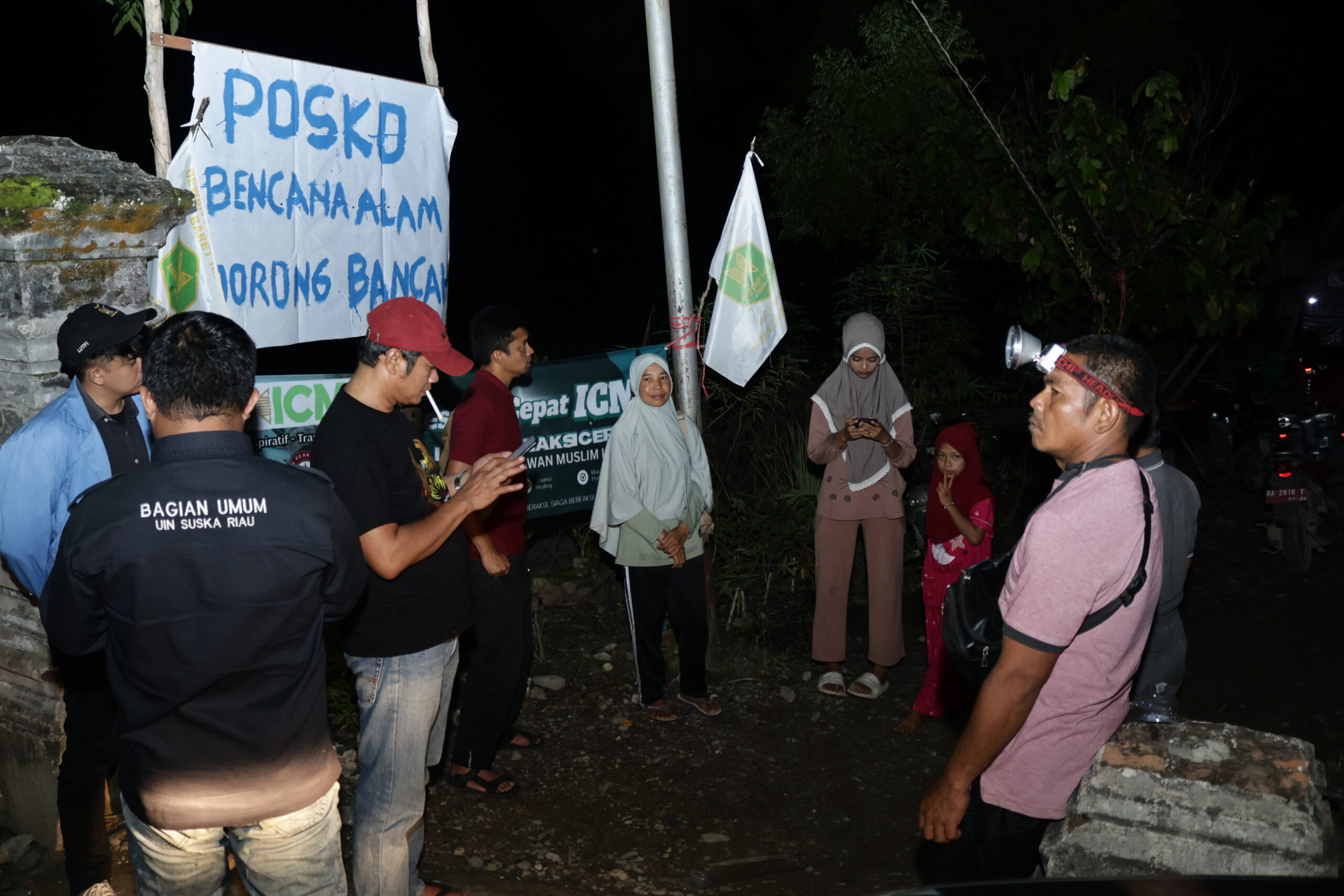 Perjalanan menuju lokasi dimulai Jumat (19/12/2025) pagi pukul 07.00 WIB dari depan Rektorat UIN Suska Riau menggunakan enam armada kendaraan dengan supir berpengalaman. Rombongan sempat mengalami kendala akibat jalur Silaiang yang memberlakukan sistem buka-tutup dan kondisi jalan yang rawan longsor, sehingga harus memutar melalui jalur Pariaman–Tiku–Lubuk Basung. Tim tiba di Jorong Bancah, Tepi Danau Maninjau, sekitar pukul 22.00 WIB.