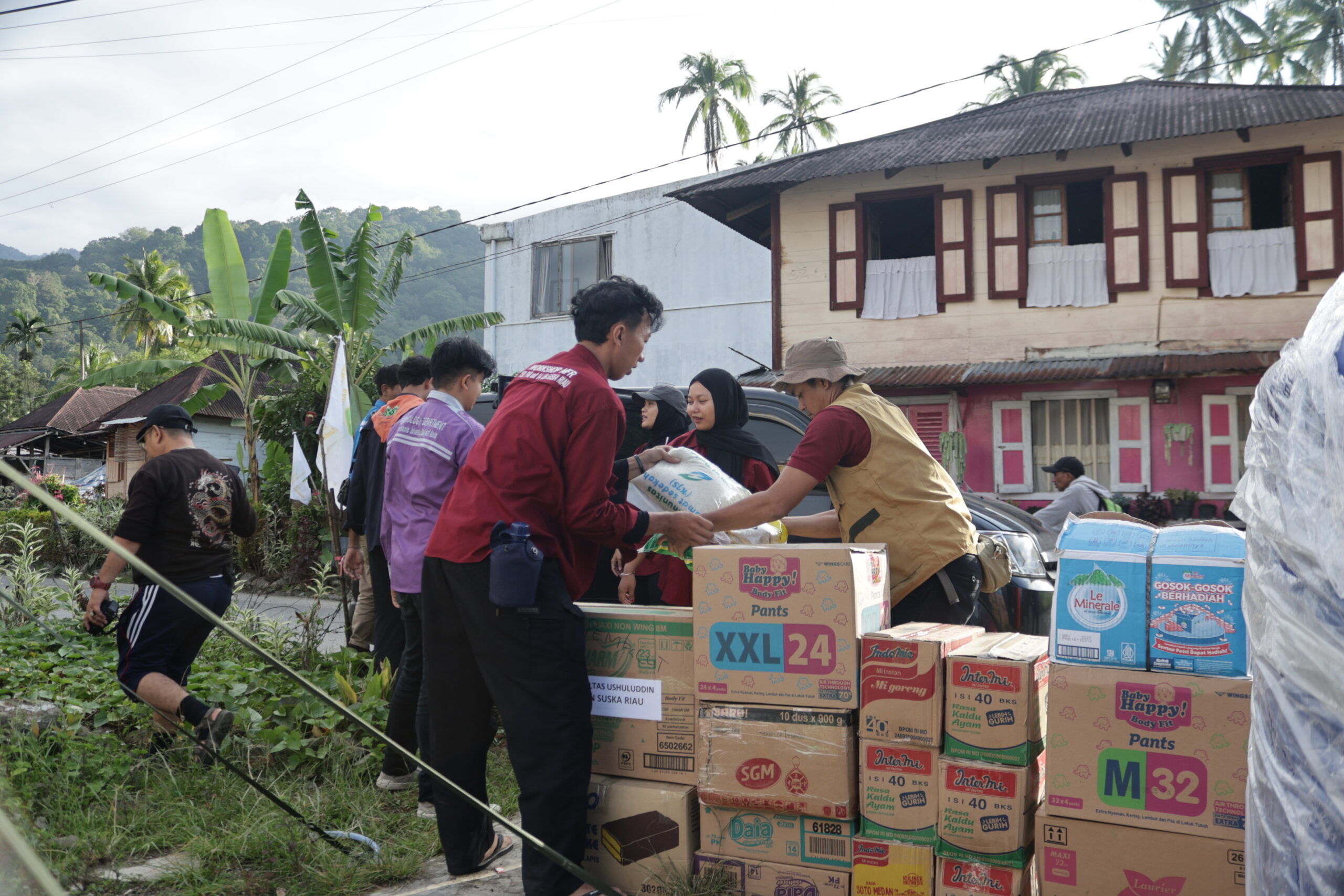 Selain itu, bantuan logistik juga disalurkan ke dua titik lain, yaitu Desa Ujuang Nagari Kukuban yang menampung sekitar 200 pengungsi sebagian di tenda BNPB, dan Posko Jorong Labuah, wilayah yang paling parah terdampak akibat banjir bandang.