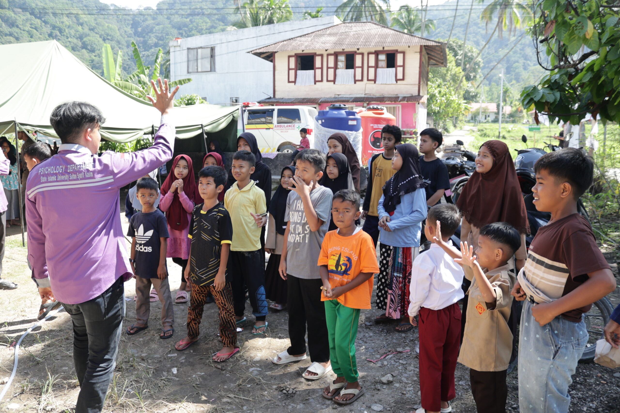 Keesokan harinya, kegiatan dilanjutkan dengan aksi bersih-bersih posko dan rumah warga, pelayanan dapur umum, serta pendampingan psikososial melalui kegiatan trauma healing yang dilakukan oleh Tim Psikologi. Trauma healing diberikan kepada anak-anak dan orang dewasa, terutama perempuan, untuk membantu mengurangi ketakutan dan trauma pascabanjir bandang. Berdasarkan pengamatan dan pendampingan, kondisi cuaca, terutama saat hujan, sering membangkitkan kembali ingatan akan kejadian bencana, sehingga sebagian korban memilih bertahan dan menginap di pengungsian karena masih merasa takut untuk kembali ke rumah