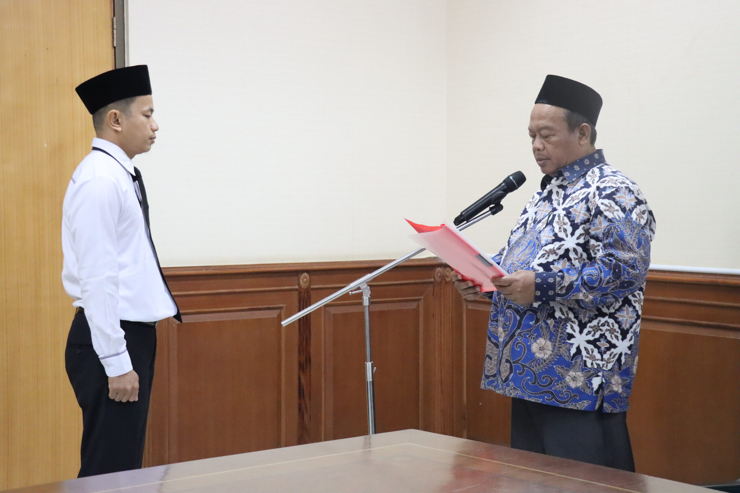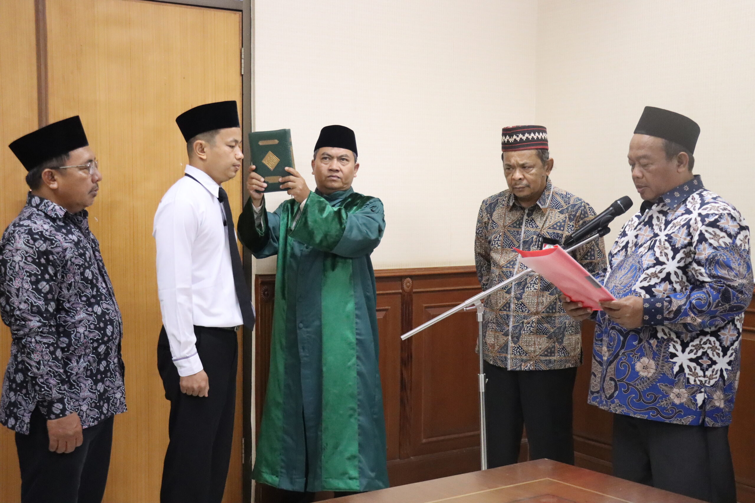Pelantikan berlangsung di Ruang Rapat Kepala Biro, Lantai 2 Gedung Rektorat UIN Suska Riau, yang dipimpin oleh Kepala Biro Administrasi Umum, Perencanaan dan Keuangan, Dr. H. A. Munir, M.A.