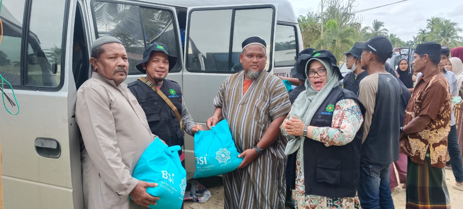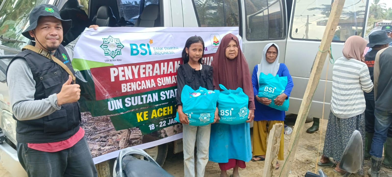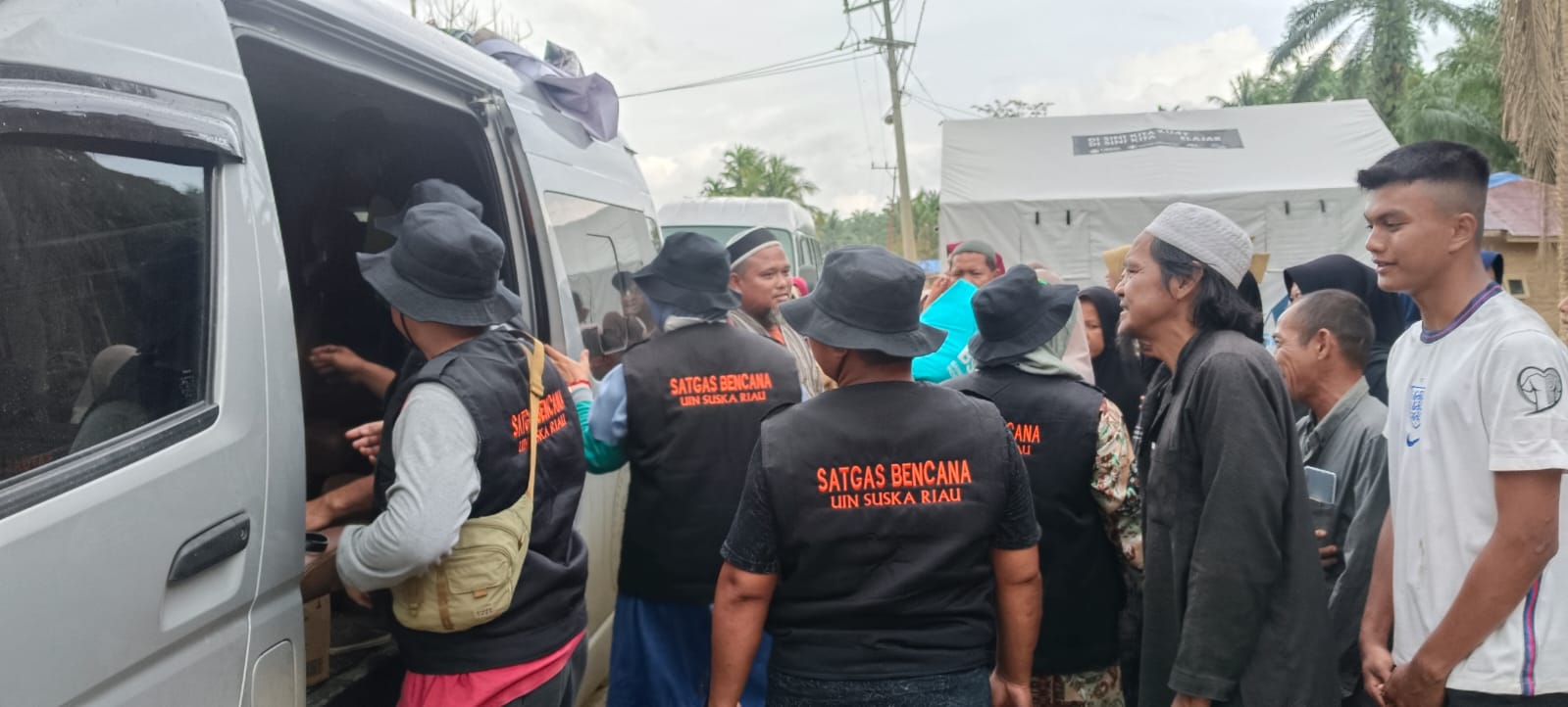 Dalam aksi kemanusiaan kali ini, Dr. Deni Fitra, S.Pt., M.P Koordinator Lapangan Tim Satgas Bencana UIN Suska Riau menyatakan bahwa mereka membawa bantuan, yang terhimpun dari donasi BSI KCP Pekanbaru UIN Suska Riau, Toko Buku Zanafa, Pusat Busana Muslim Pekanbaru Salsanafa, serta para donatur lainnya. Paket kebutuhan dasar yang dibagikan terdiri dari beras, minyak goreng, mukena, dan kebutuhan bayi. Selain itu, bantuan juga disalurkan dalam bentuk pakaian layak pakai dari sumbangan banyak pihak termasuk dari masyarakat Kota Garo, Kampar.