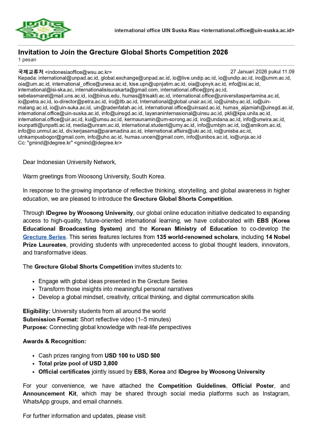 Invitation to Join the Grecture Global Shorts Competition 2026