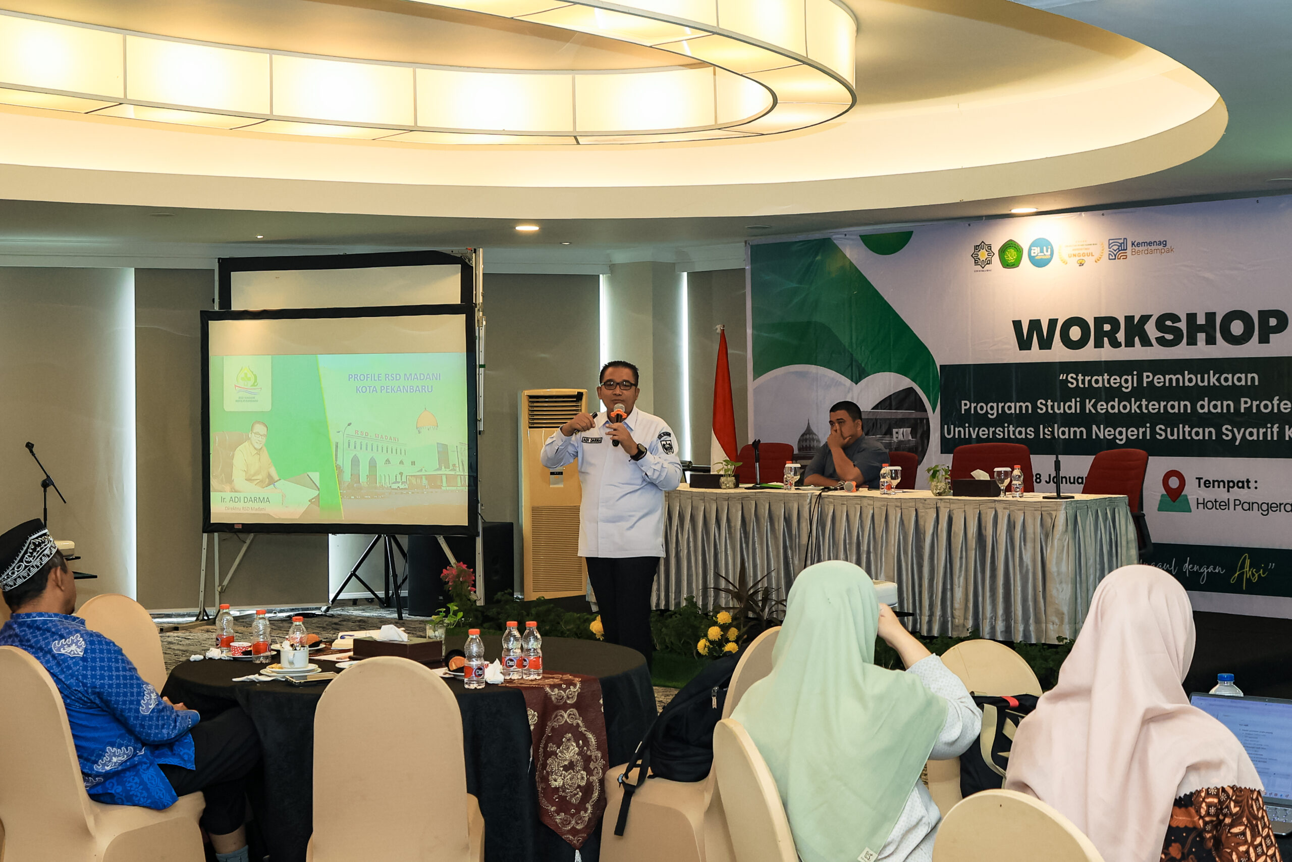 uin-suska.ac.id Rumah Sakit Daerah (RSD) Madani Pekanbaru menyatakan kesiapan dan komitmen penuhnya untuk bertransformasi menjadi Rumah Sakit Pendidikan Utama. Komitmen ini disampaikan dalam pertemuan strategis bersama Tim Akselerasi Pembentukan Program Studi Kedokteran dan Profesi Dokter UIN Sultan Syarif Kasim (Suska) Riau, yang berlangsung tanggal 28 Januari 2026 pada hari ketiga Workshop Strategi Pembentukan Prodi Kedokteran Dan Profesi Dokter pada Universitas Islam Negeri Sultan Syarif Kasim Riau.