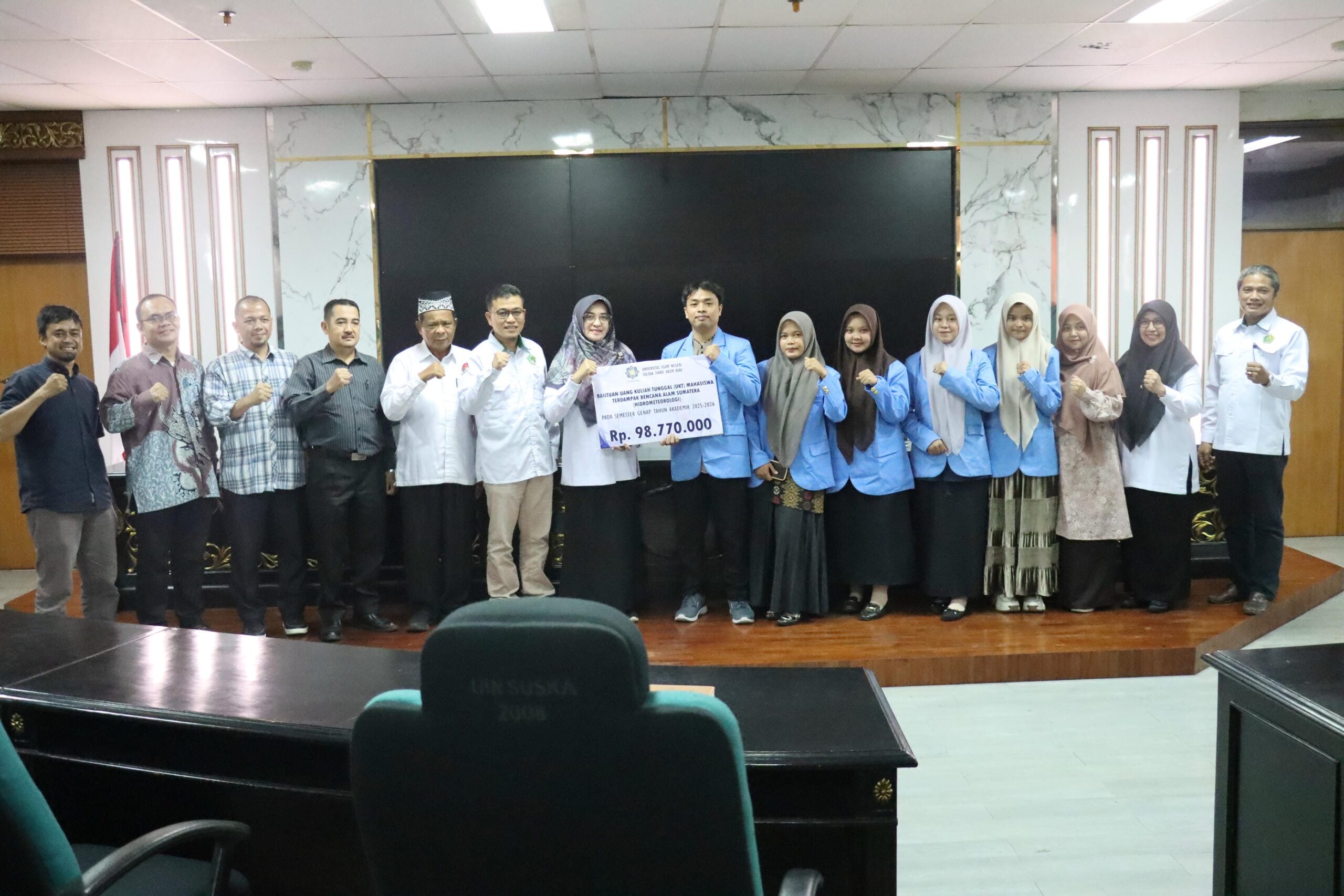 uin-suska.ac.id Universitas Islam Negeri Sultan Syarif Kasim Riau kembali membuktikan komitmen kemanusiaannya. Sebagai respons cepat atas bencana alam yang melanda sejumlah wilayah di Sumatera, pihak universitas secara resmi menyalurkan bantuan Uang Kuliah Tunggal (UKT) kepada mahasiswa yang menjadi korban bencana. Penyerahan bantuan secara simbolis ini digelar di Ruang Senat Lantai 5 Gedung Rektorat UIN Suska Riau, pada Selasa (3/2/2026).